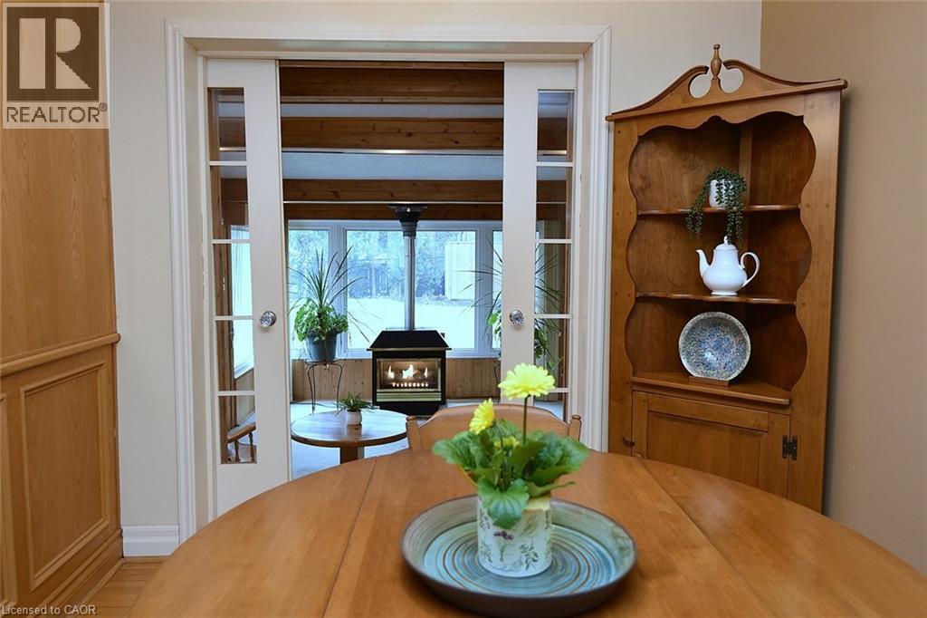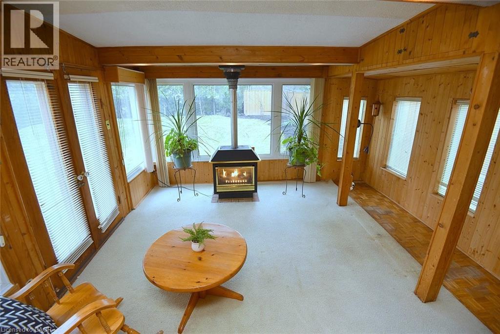 Offered for the first time, this charming bungalow presents a rare opportunity to own a well-maintained home on an expansive 75 x 110 ft lot in one of Dundas’ most peaceful and desirable neighbourhoods. Surrounded by mature trees and lush landscaping, the property offers a private, country-like setting while still being just minutes from town amenities. The home features three bedrooms, 1 bath and a bright, functional layout. The eat-in kitchen is filled with natural light from a skylight, creating a warm and inviting space for everyday living. A standout feature is the four-season room addition, complete with a gas fireplace and walkout to the patio and fully fenced backyard-perfect for relaxing or entertaining year-round. The lower level offers excellent additional space with large above-grade windows, a spacious recreation room, potential for a fourth bedroom, and ample storage throughout. Ideally located just steps from conservation area and Warren Park, and within walking distance to transit and the shops and amenities of downtown Dundas, this is a truly special property combining space, privacy, and convenience. (id:64974)