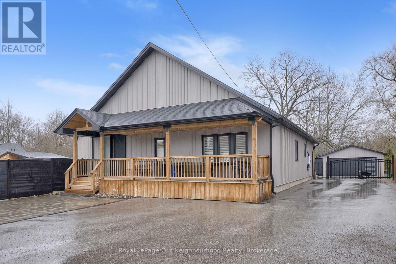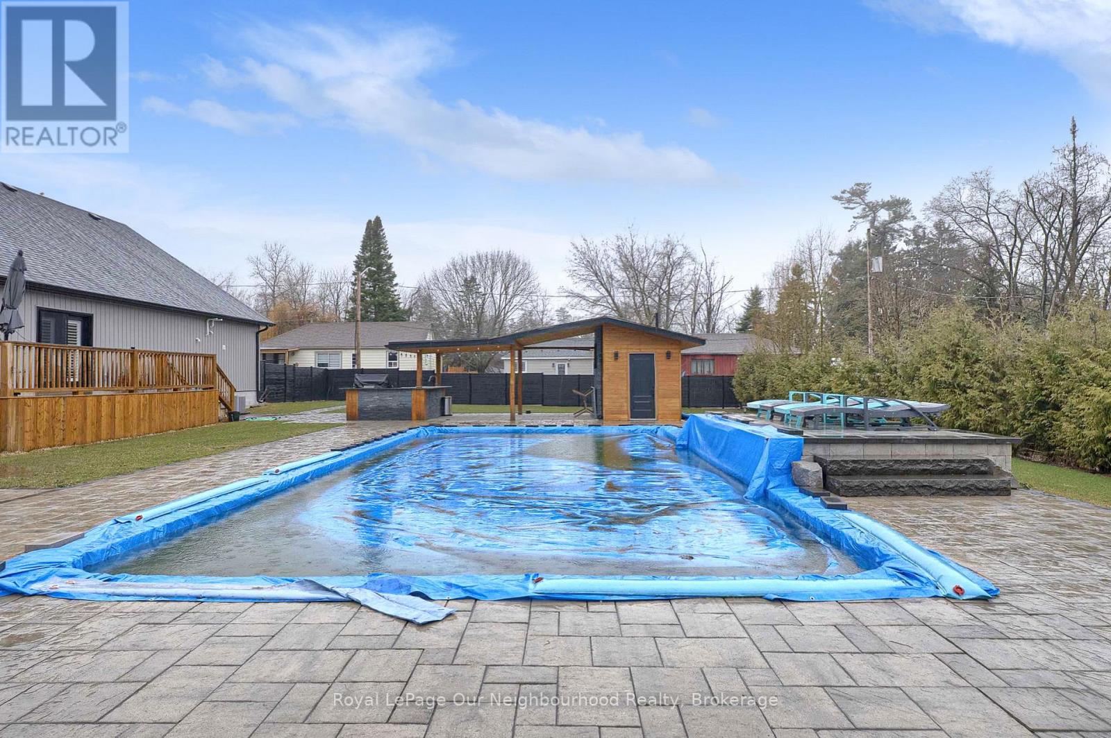 Welcome to 5 Melody Lane, a beautifully renovated bungalow set on a generous half-acre lot in the heart of Georgina. Offering the perfect blend of modern updates and outdoor living, this property is ideal for those seeking both comfort and lifestyle.Step inside to a bright, open-concept layout designed for effortless living and entertaining. The spacious kitchen features a large centre island and flows seamlessly into the main living areas, all complemented by high ceilings, abundant pot lights, sleek laminate flooring, and elegant California shutters throughout.This home offers 3 well-sized bedrooms, including a stunning primary retreat complete with a luxurious 4-piece ensuite featuring an oversized glass shower-your own private escape.Outdoors is where this property truly shines. Enjoy summer days in the inground saltwater pool, or entertain guests in the incredible outdoor kitchen equipped with a wet bar, bar fridge, and dedicated living space with TV hookup. A convenient 3-piece outdoor bathroom, cozy firepit area, and full privacy fencing complete this backyard oasis. Let's not forget this property has access to a private beach within walking distance.Additional highlights include a detached 2-car garage and ample space for family living, entertaining, and relaxation-all set on a beautifully sized lot.A rare opportunity to own a turnkey bungalow with resort-style amenities just minutes from everything Georgina has to offer. (id:64974)