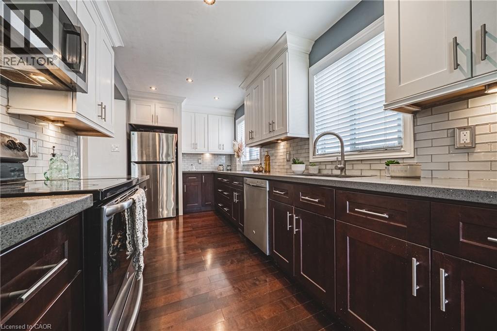 Just move in and enjoy this impressively renovated contemporary home located on a quiet court in a highly convenient neighbourhood. Offering 3 spacious bedrooms and 4 bathrooms, including a private 3-piece ensuite, this home provides plenty of room for comfortable family living. The stylish two-tone shaker kitchen is a true highlight, featuring quartz countertops, a classic subway tile backsplash, and stainless steel appliances. Hardwood and ceramic flooring flow throughout the main level, while the bathrooms have been tastefully updated to a standard rarely seen in this price range. Sliding doors off the dining area lead to a deep, newly fenced 135-ft backyard — perfect for entertaining, relaxing, or letting the kids and pets play. The finished basement adds valuable extra living space ideal for a family room, home office, gym, or guest area. Additional features include central A/C, a single garage with ample driveway parking, and an unbeatable location just minutes to the highway, public transit, and the shopping, dining, and everyday amenities of Ira Needles. A beautifully updated home in a fantastic location — simply move in and start enjoying. (id:64974)