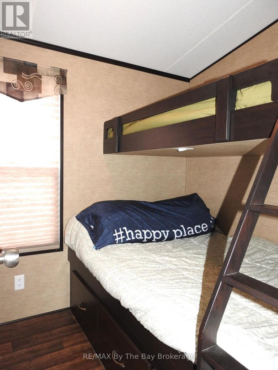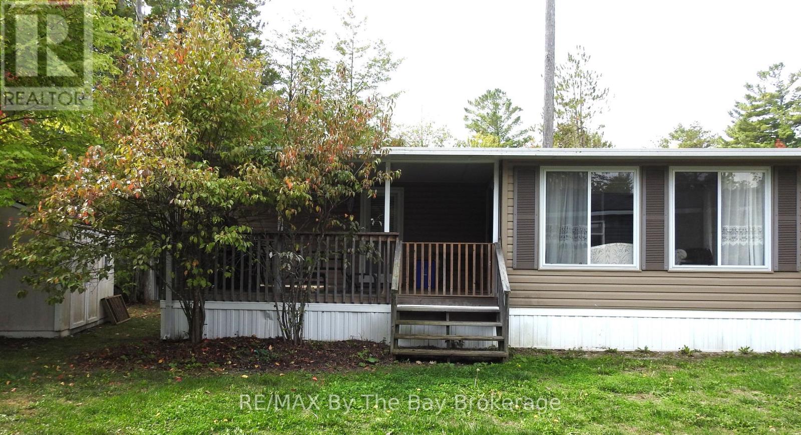 The Perfect Family Summer Getaway in Wasaga CountryLife Resort! This fully furnished 2-bedroom, 3-season cottage is designed with family living in mind, offering additional sleeping space with pull-out sofas in both the living room and sunroom-ideal for children, grandchildren, and guests. Enjoy a bright sunroom and inviting covered porch, perfect for relaxing, entertaining, or unwinding after a day at the beach. Set on a beautifully treed lot with mature spruce and maple, this property offers both privacy and a peaceful outdoor setting. Ideally located directly across from the pool and playground, it's a dream spot for young families-like having resort-style amenities right at your doorstep. Plus, you're less than a 10-minute walk to the sandy beaches of Georgian Bay and close to scenic trails. Newer than many current offerings in the park, this cottage presents excellent value and a wonderful opportunity to create lasting summer memories in a vibrant, community-oriented resort. 2026 seasonal site fees $7008.08 plus HST (id:64974)