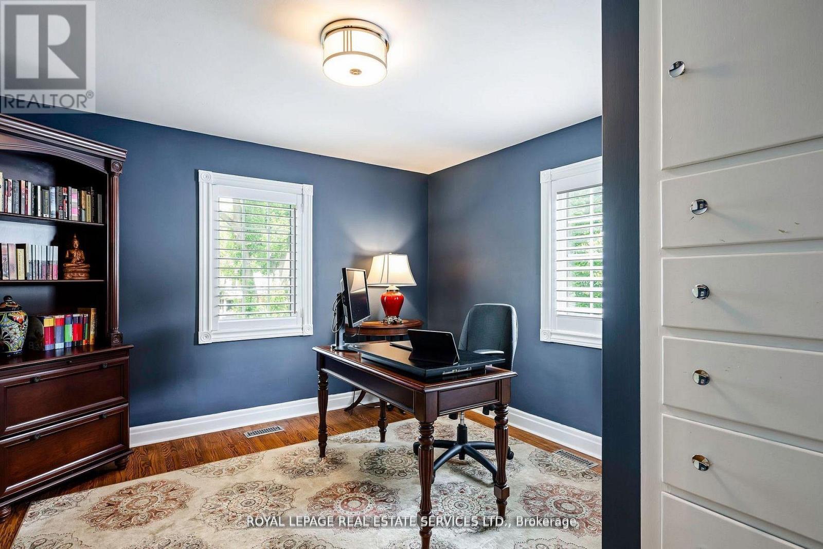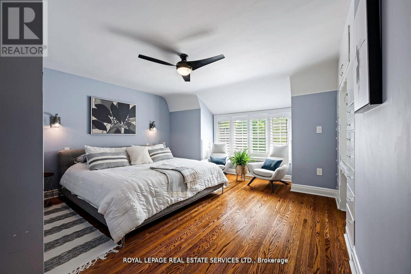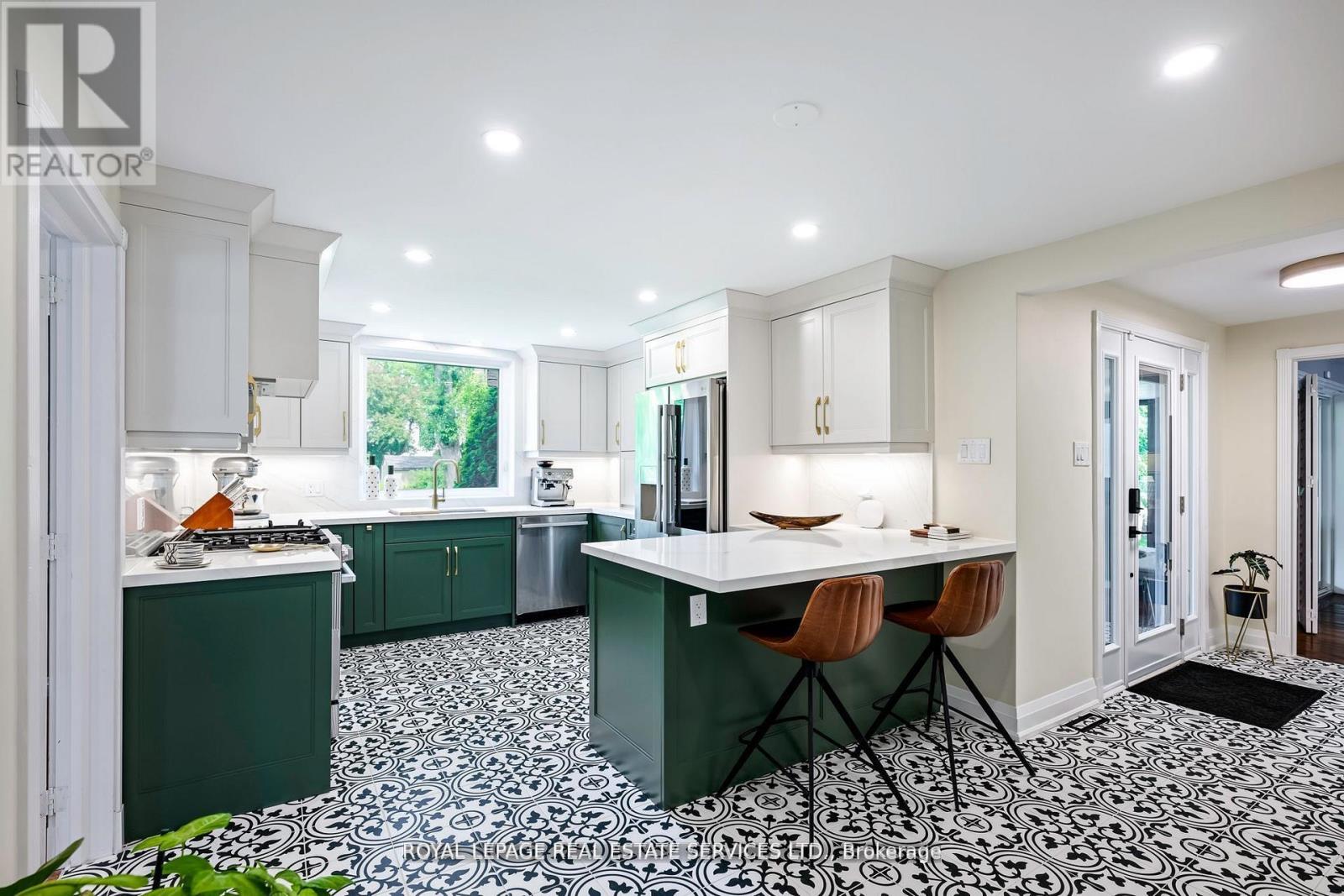 Tucked gently atop a private Peel Village hill with just a few distinguished homes, we bring you a timeless Dutch Colonial home gracefully set on a majestic 1/3-acre pie-shaped lot, with lush, professionally landscaped grounds kept vibrant year-round by a lawn irrigation system. A stunning Loggia (porch) acts as a seamless extension of your living space, providing a sanctuary for many seasons of blissful outdoor time, rain or shine. Imagine hosting BBQs with family and friends without ever worrying about the weather. Inside, craftsmanship takes center stage, exuding refined elegance in every detail. The newly renovated designer kitchen is a showstopper, wrapped in bold mission-style tiles that marry vintage character with modern sophistication. Its the perfect blend of artistry & utility designed to inspire both culinary creativity and conversation. With 4 beautifully appointed bedrooms (hidden cedar closet in 3rd bedroom), including a serene primary retreat with a sleek, modern ensuite bath, the home offers both comfort and quiet sophistication. Three inviting fireplaces (2 in use) anchor the living areas with warmth, while each space is thoughtfully curated for both style and practicality. A well-designed mudroom-laundry room with built-in storage shelves makes the everyday a breeze. A fabulous two-car garage adds flexibility, with a full second-floor loft ready to be transformed into a studio, home office, gym, or guest suite. A long driveway ensures plenty of parking room for guests. A home with heart, soul, and whispers of a country manor all hidden in plain sight in beloved Peel Village. Perfect for the elite buyer who seeks not just a home, but a lifestyle of quiet distinction, artistic flair, and effortless grace. Walk to GO Transit, train station, Gage Park, trails, Etobicoke Creek, shops, schools, restaurants. Just minutes to Highways 410, 407, and 401. (id:64974)