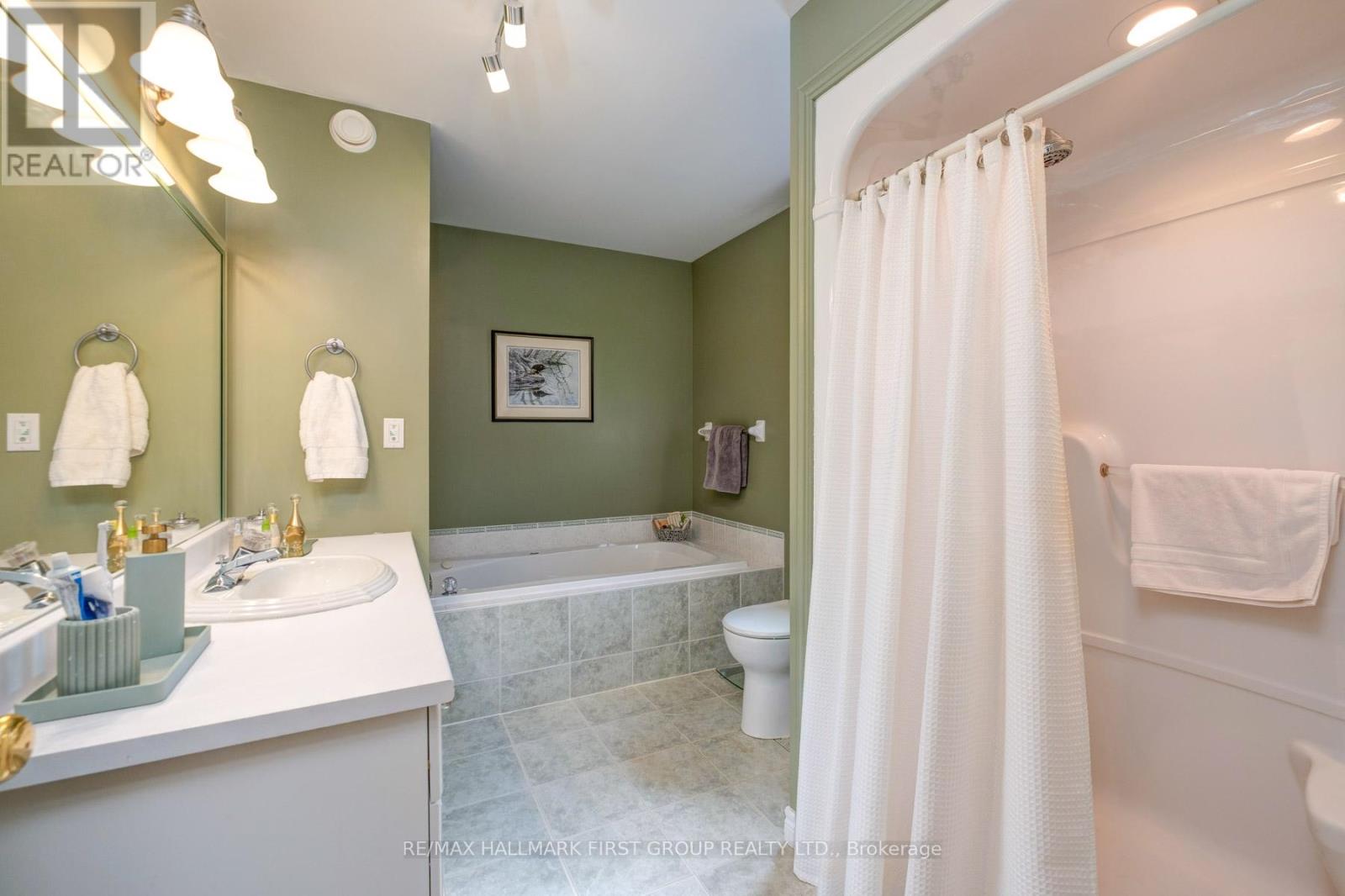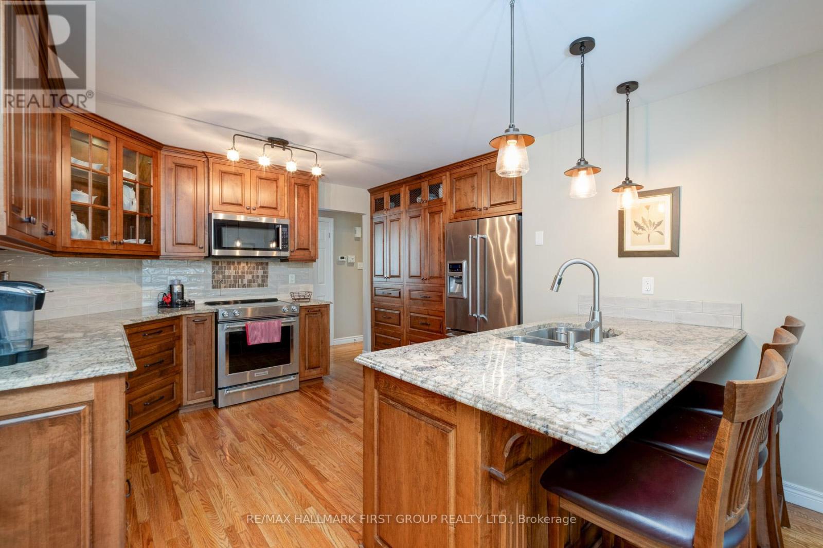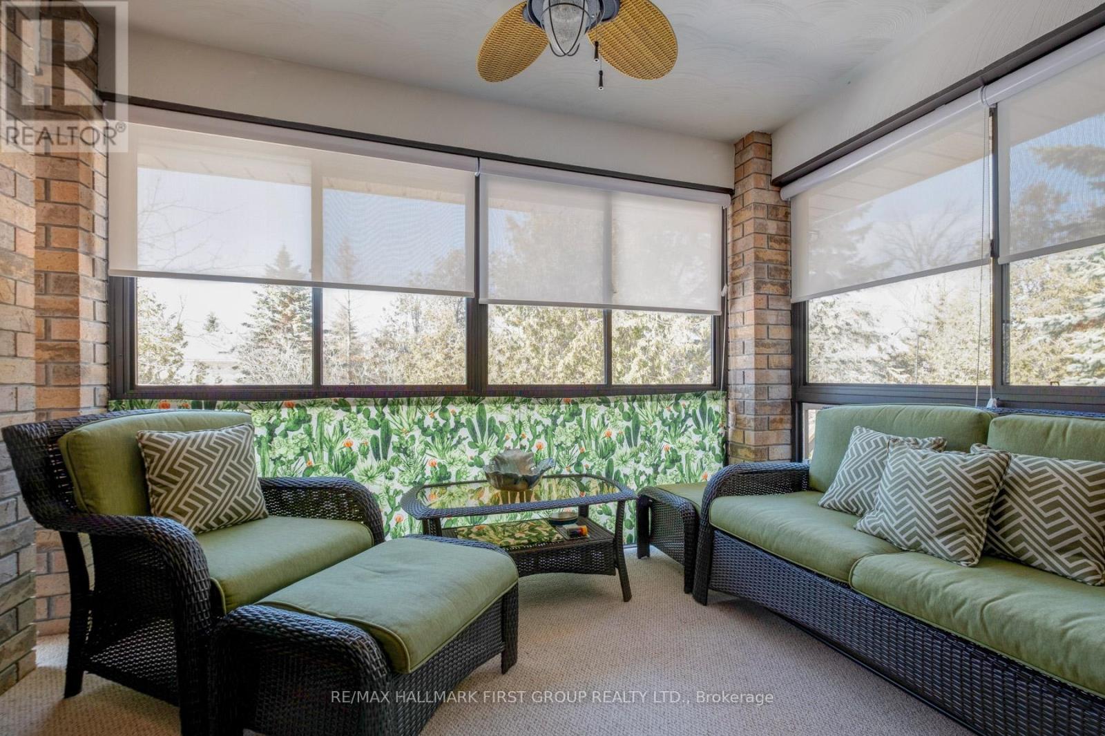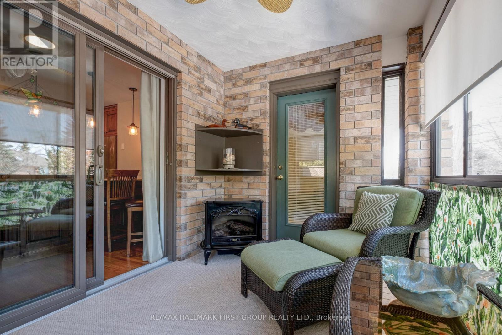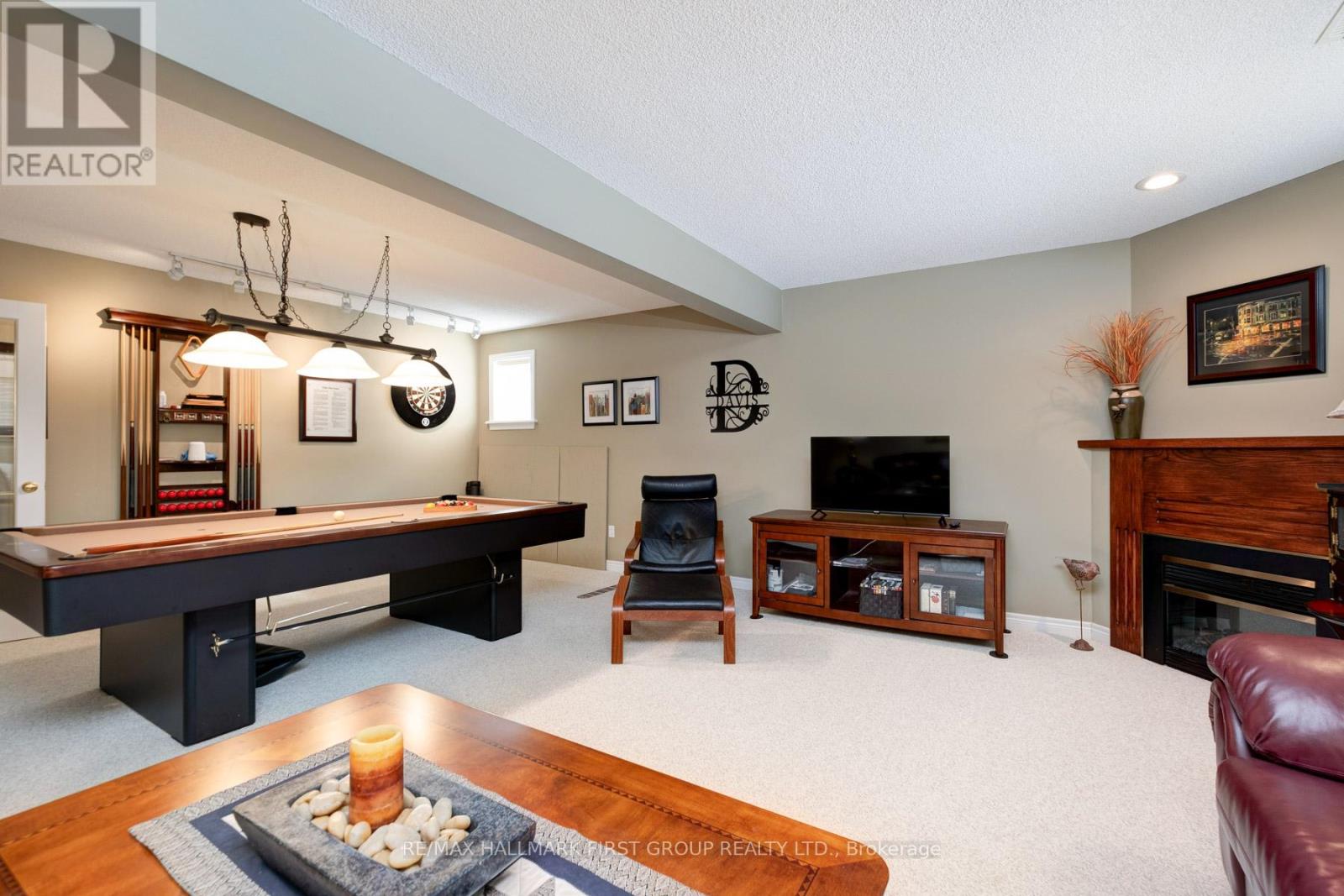 Welcome to exclusive Port 32, located in the Heart of Bobcaygeon on Pigeon Lake, part of the Trent Severn Waterway. This is a vibrant community offering waterside living with a Shore Spa & Marina Club for members only that gives you access to an outdoor lakeside pool, tennis courts, pickle ball and club house with various activities. Well maintained all brick bungalow - fantastic main floor layout with upgraded kitchen & SS appliances, granite countertops & brkfst bar, walkout to the deck & sunroom! Formal living & dining rooms with hardwood flooring, primary bedrooms features his/hers walk-in closets, walkout to the sunroom, 4 pce ensuite with walk-in shower and separate jet tub. Main flr laundry and inside entrance to oversized garage. Fully finished basement features huge rec. room with fireplace, 2 additional bedrooms/office, 4 piece bathroom, big storage room & workshop. Landscaped grounds, interlock walkway, heated eavestrough, parking for 8 vehicles. Sun-filled home, freshly painted & move-in ready! Home is a MUST SEE! (id:64974)