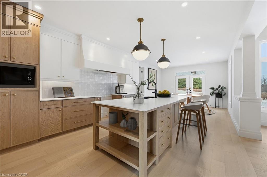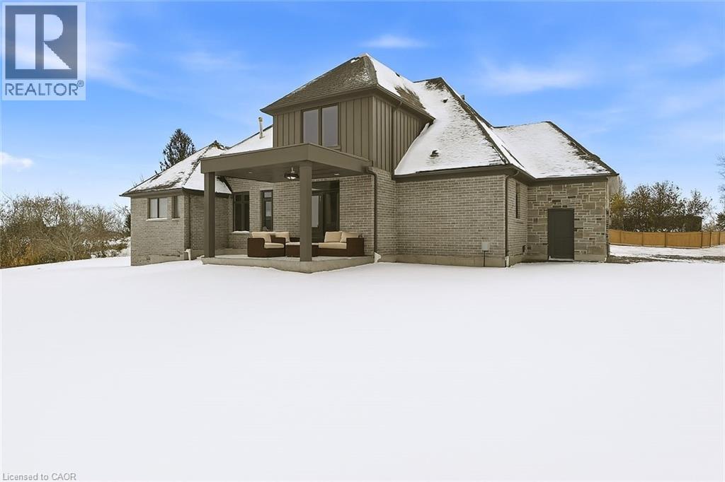 Brand-new custom build by Charleston Homes offers 3700sqft of living on 1.3-acres backing onto untouched greenspace, never to be developed! Designed W/exceptional craftsmanship & functionality this 3+den home offers main-floor primary suite, architectural detail & upscale finishes. Crafted by Charleston Homes, a name synonymous W/quality, elegance & timeless design. Stone & brick exterior, 3-car garage & covered entry welcomes you. Inside 2-storey great room W/soaring ceilings, windows & fireplace flanked by B/I shelving. Main level continues W/9ft ceilings, wide-plank oak hardwood & lighting design W/over 65 pot lights throughout. Chef-inspired Barzotti kitchen W/2-tone cabinetry, quartz counters, centre island W/bar-seating & pendant lighting. Prep-kitchen W/sink & storage. Eat-in area with garden doors that open to covered patio for seamless indoor-outdoor living. Dining room W/crown moulding & large windows. Front office W/custom B/Is offer ideal space for work from home or enjoying quiet library-style retreat. Main-floor primary suite offers oak floors, crown moulding, dual windows & W/I closet. Ensuite W/soaker tub, W/I shower, dual vanity & luxury finishes. Laundry & 2pc bath complete main level. Ascend the oak staircase to upper level loft area, ideal as teen hang-out, office or lounge. 2nd-floor primary bdrm offers ensuite W/quartz counter & frameless glass shower. Another large bdrm W/vaulted ceiling shares 5pc Jack & Jill bath W/adjacent den/hobby room. Unfinished bsmt W/oversized windows & 3pc R/I is ready for your future design! Outside enjoy covered patio & private lot backing onto greenspace, perfect for relaxing, BBQs or future pool. This exclusive estate sits within a peaceful rural hamlet known for beautiful properties, family-friendly atmosphere & strong sense of community. Rockton Elementary school built in 2020 & Beverly Community Centre are nearby. Mins from Hamilton & Burlington offering access to amenities. Cambridge & Guelph are 30-mins away (id:64974)