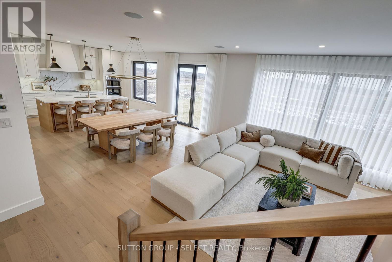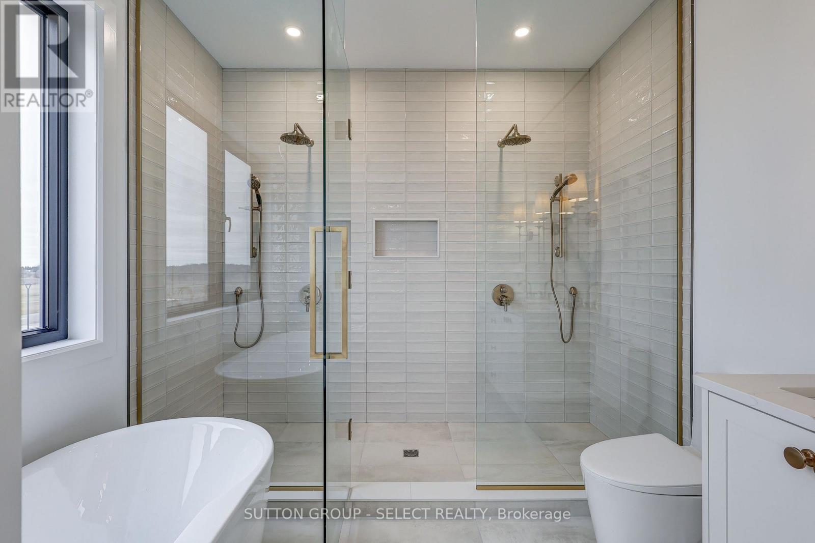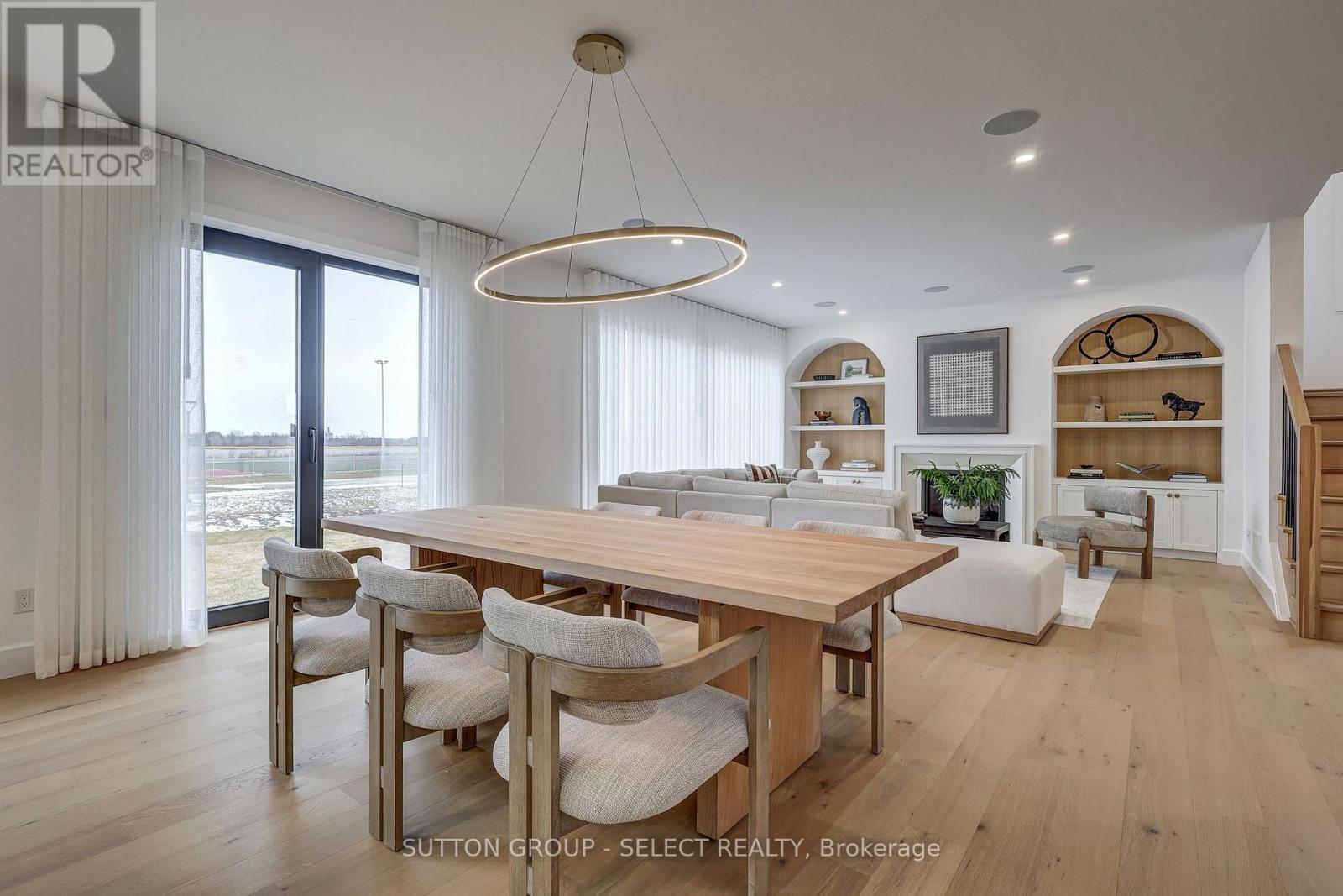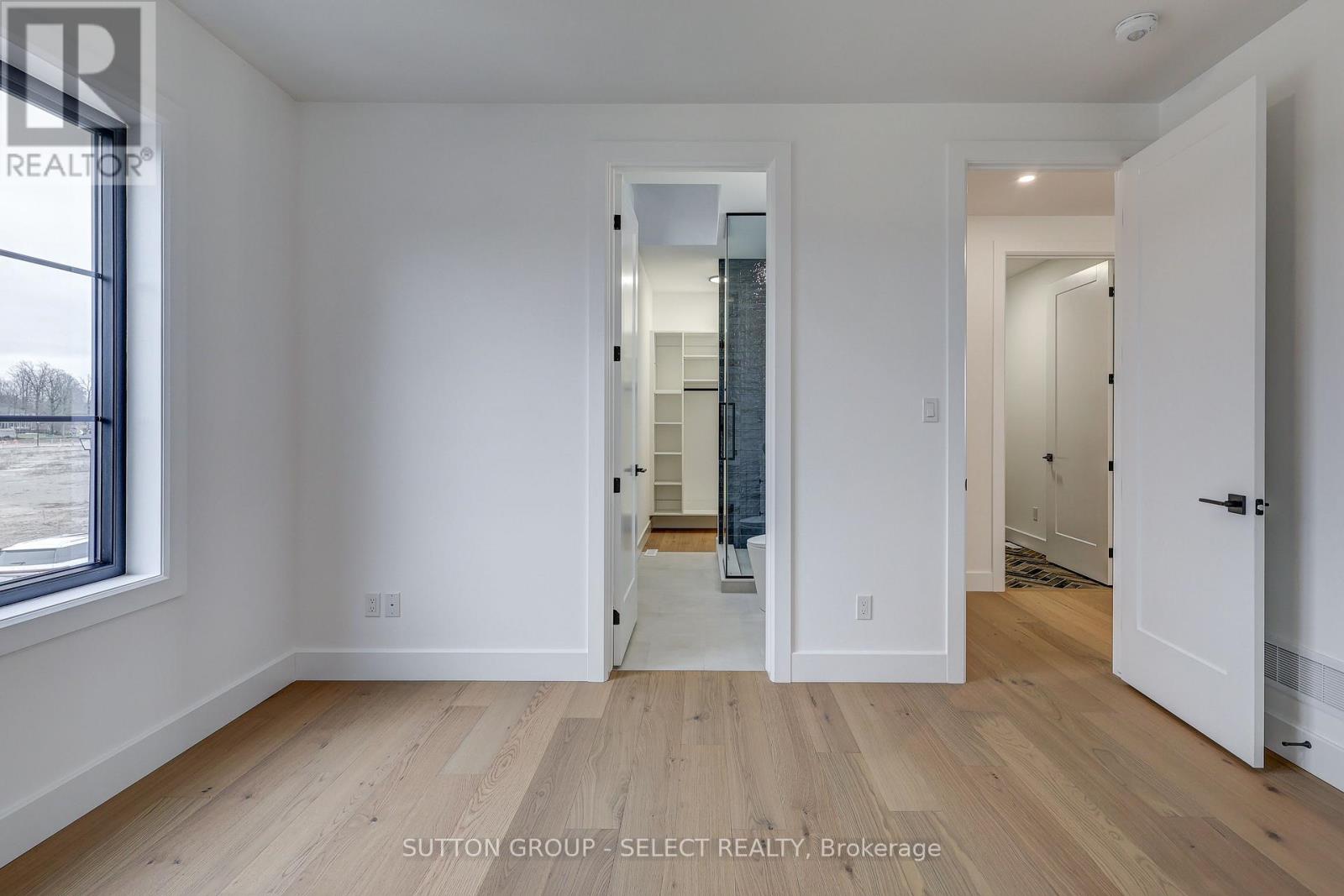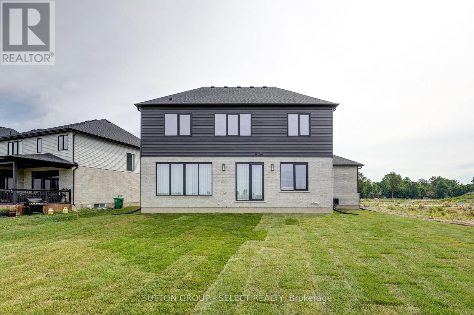 Just built in the desirable neighborhood of Talbot Ville Meadows. This elevation features generous stone detail, a high peaked roofline, and a 3.5 car garage. Located on a 140-foot-deep lot, backing onto open space. This 4-bedroom new build has 2855 sq ft of beautifully finished living space. The main floor has 9ft ceilings with large picture windows throughout. A mudroom off the garage that provides ample storage. An oversized office with double glass doors at the front entry. Custom cabinetry in the kitchen with quartz countertops & backsplash and a walk-in pantry. The large living room has a feature fireplace, anchored by 2 arched built-in cabinets. The upper floor has laundry with storage and folding counter, 9 ft ceilings, and walk-in closets in every bedroom. The primary bedroom offers a beautiful ensuite with a large walk-in double shower and a freestanding tub. Second bedroom also offers its own full ensuite. Superior design & quality built by Millstone Homes of London. (id:64974)