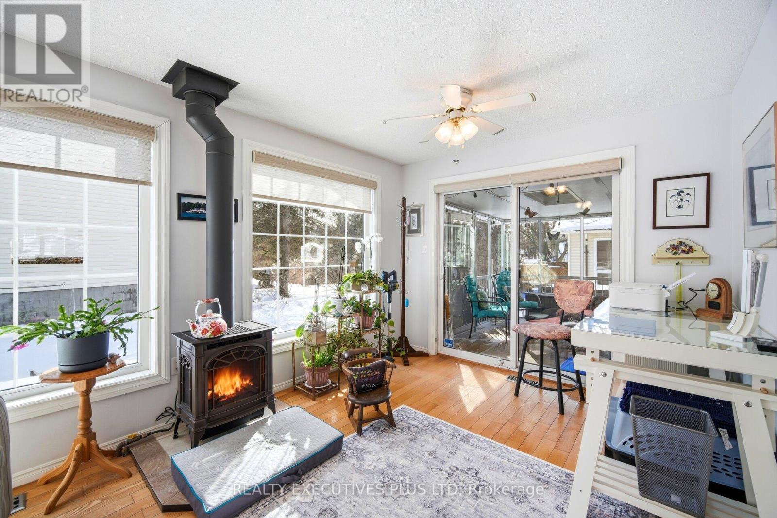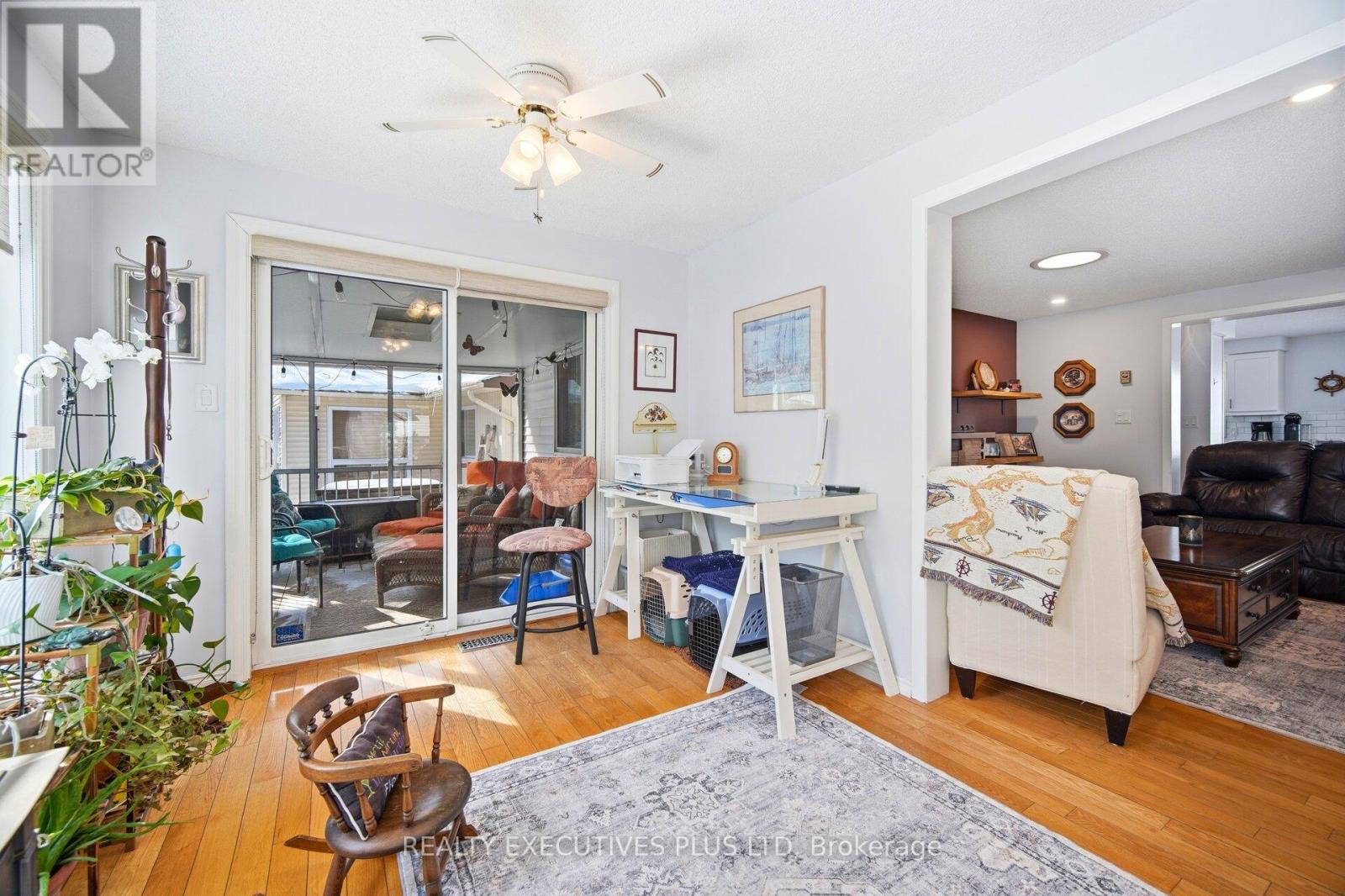 Welcome to Tecumseth Pines, a sought-after active adult landlease community known for its welcoming atmosphere and like-minded residents. This is a place where neighbours become friends and community engagement is part of everyday living. The community recreation centre serves as a true hub, offering a pool, sauna, fitness room, billiards, darts, library and a comfortable dining area with a full kitchen-ideal for gatherings, clubs, and social events. Whether you prefer active recreation or relaxed conversation, Tecumseth Pines offers something for every lifestyle. 5 Tecumseth Pines Dr. is the popular Sycamore Model with a well-designed floor plan that provides effortless flow and comfortable living. The bedrooms are at opposite ends of the home with the kitchen, dining and living room being centrally located making this 1,250 s.f. home feel much larger. The principal bedroom has a 4-piece ensuite and a custom built in entertaining/closet cabinetry system that creates spaciousness. The modern kitchen stands out with fabulous finishes, quality appliances and smart use of space. The sunroom and screened in porch extend your living space into the outdoors in all seasons and provides a front row seat for the avid bird watcher. Set within one of the area's most popular adult oriented communities, this home offers comfort, nature, and a vibrant social atmosphere all in one. (id:64974)