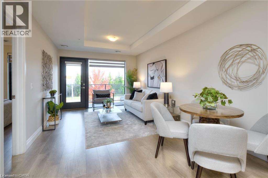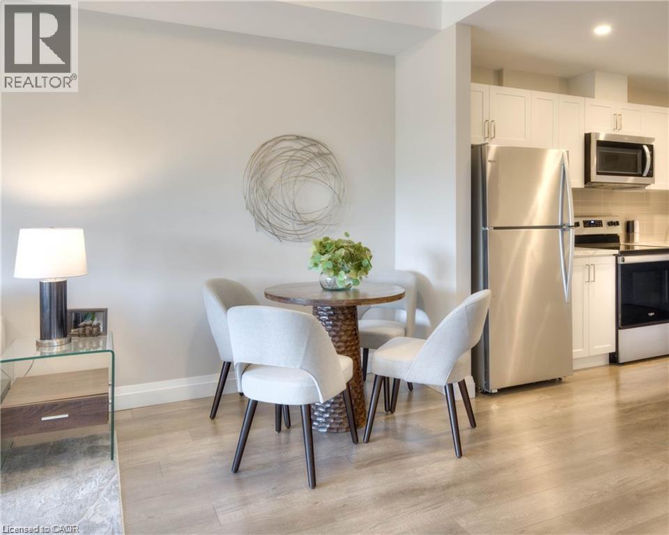Welcome to this beautiful, newer 1-bedroom apartment in an elevator-equipped building, located on the second floor of a desirable West End condominium. Featuring an open-concept layout with quality finishes throughout, including a modern kitchen with quartz countertops, stainless steel appliances, and a built-in microwave range. The spacious living area flows seamlessly into the dining and kitchen spaces, making it ideal for entertaining. Conveniently situated steps from public transit with quick access to the expressway, this home is just minutes from Sunrise Centre, including Walmart, Canadian Tire, Home Depot, Starbucks, Tim Hortons, Kitchener Public Library, restaurants, and shopping. Available for immediate occupancy! (id:64974)