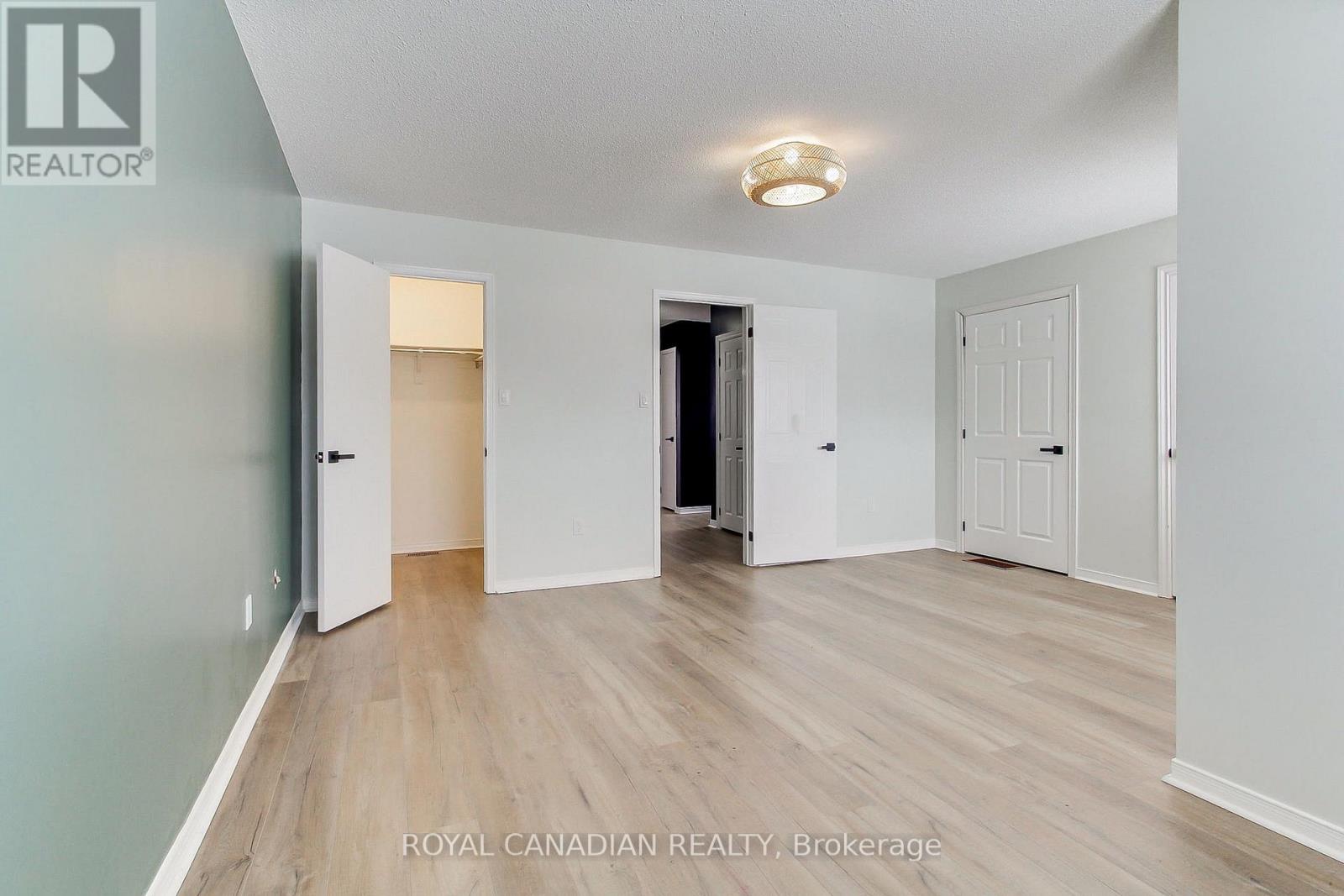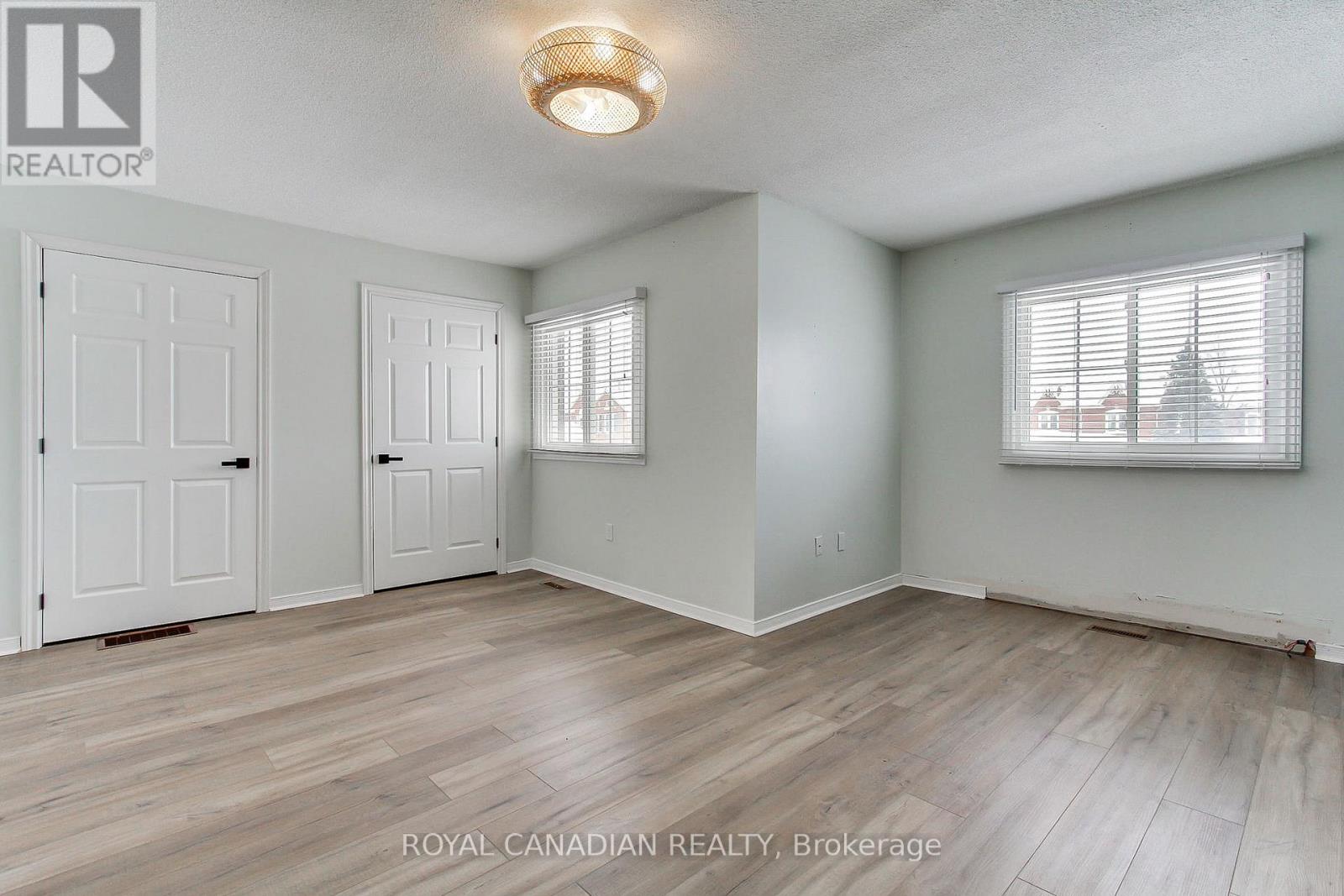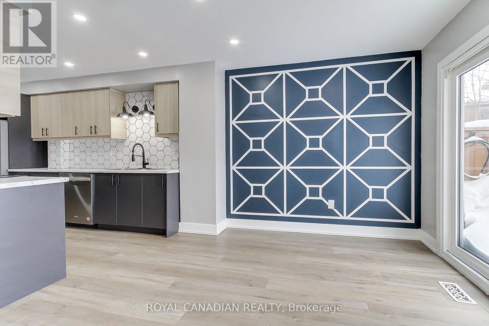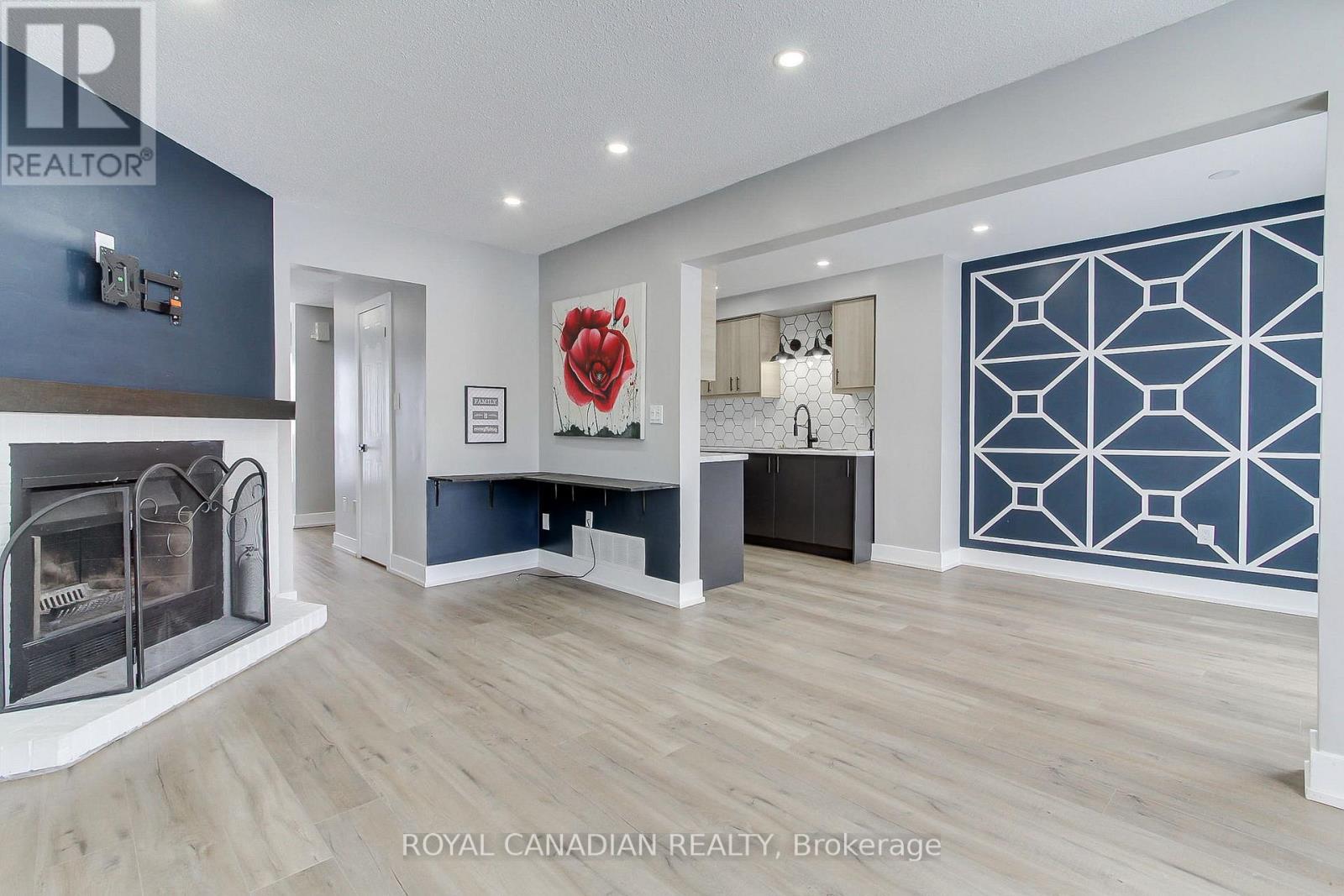 Move-in ready with nothing to do. Extensively upgraded end-unit 3-bedroom townhome offering 1,410 sq ft above grade with NEW (2025) appliances, NEW (2025) owned - not rental - Furnace, AC, and Hot Water Tank, NEW vinyl laminate flooring throughout (carpet-free),NEW interior stairs, NEW kitchen, NEW 2nd-floor bathroom, and new main-floor pot lights. Main level features separate living, dining, and family areas with a cozy wood-burning fireplace (WETT certificate available) and new pot lights. Stylish updated kitchen walks out to a spacious private deck and fenced yard - ideal for entertaining or relaxing outdoors, with direct access to a private residents-only sports field/playground for the complex. Upstairs offers a generous primary bedroom with ample closet space plus two additional bedrooms. Partially finished basement of 622 sq ft provides extra living space and future potential. Located within walking distance to Bayfield Street amenities with quick Highway 400 access, and close to major shopping, dining, recreation centre, hospital, and schools. Both public and Catholic schools are within walking distance, making this an ideal family location. Perfect for first-time buyers, families, or downsizers seeking a turnkey home in a prime location. (id:64974)