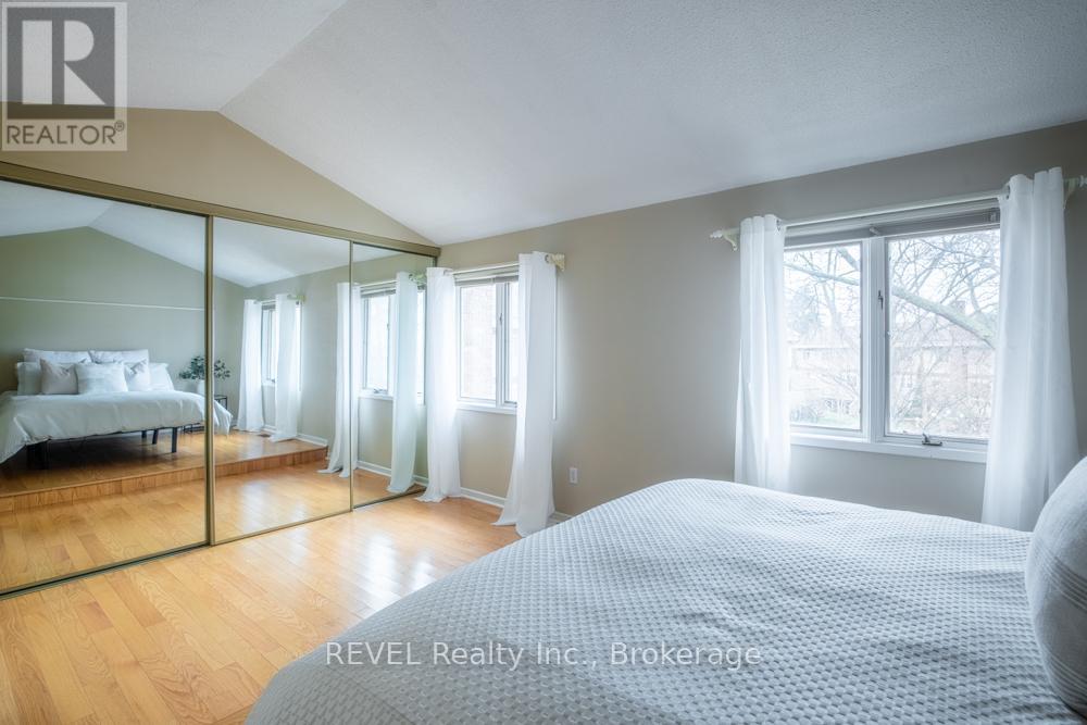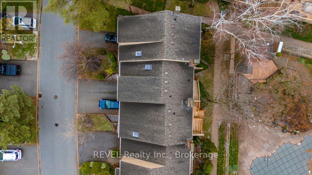 Looking for a fantastic 2-bedroom townhome? Welcome to The Clusters, a well-maintained community, ideal for first-time buyers, young professionals, or young families. Enjoy access to the centrally located pool and landscaped garden area, conveniently situated just steps from your private back deck. Parking is made easy with a single-car garage, additional driveway space, and ample visitor parking nearby. The main level features a spacious living and dining area, eat-in kitchen with walk-out to the deck, and a convenient powder room. Upstairs, you'll find a generous landing, a large primary bedroom with double closets and vaulted ceiling, and a well-appointed main bathroom complete with both a tub and separate shower. The bright front bedroom offers abundant natural light and a walk-in closet. The lower level provides direct access from the garage and includes a cozy den with gas fireplace, laundry and utility room, and additional storage. (id:64974)