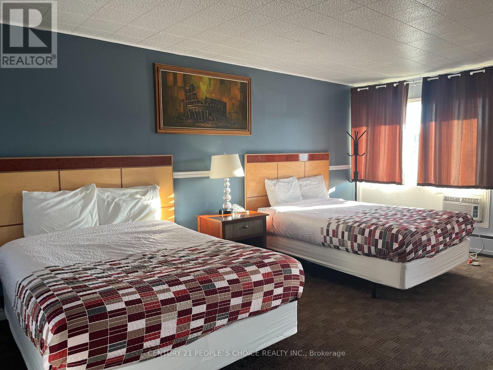 Price to Sell: Well maintained and upgraded 43 Room Motel (Travel Inn) & Restaurant (241 Pizza franchise) + 2 Apartments for the owner/manager or staff to stay. Total Area 6 Acres of commercial zoned land, great potential for future development. Huge parking lot, most of the worker groups working in different projects prefers this location, eat-drink and sleep at one stop. Property is well situated facing right on Trans-Canada Highway 11 with 500 feet frontage in the growing town of Cochrane which is right in the mid-way of Toronto and Thunder Bay. Year-round profitable business, Snowmobile trail is passing through the property (equally busy in the winter months). Current owner has been successfully managing this property since 2019 as an Absentee Owner, an employees run both businesses and both are profitable with the future potential to grow even more for the right buyer/owner operator to add another food franchise beside the 241 Pizza (set up is ready for Quesada or Burrito) Great repeat customer base of tourists, workers, contractors, hunters, snowmobilers etc. and Evacuees group come through the city due to flood, fire, storm etc. in there villages up in northern Ontario. Cochrane town is fast developing with many new businesses established in past few years AND new Mining Projects around Cochrane are expected Production is targeted to begin by 2027, with construction potentially breaking ground in 2026, The project is expected to employ up to 1,000-2,000 people and operate for over 40 years (check news on google) Excellent future potentials for the new buyer. (id:64974)