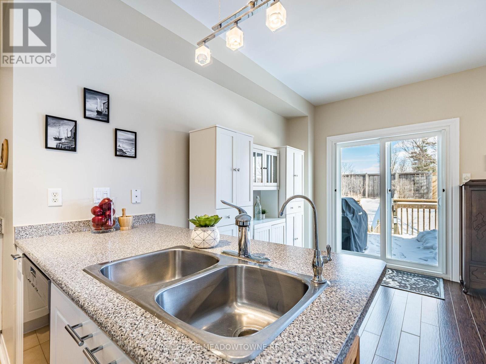 Welcome to this beautifully maintained 3-bedroom townhome in the heart of Georgetown a rare opportunity featuring a 2-car garage, an exceptional find in townhome living. Thoughtfully upgraded and meticulously cared for, this home blends comfort, functionality, and modern convenience.Step inside to soaring 9-ft ceilings, durable laminate flooring, and a bright, open-concept main level designed for both everyday living and effortless entertaining. The kitchen truly stands out with soft-close cabinetry, smart storage solutions, stainless steel appliances, a premium JennAir induction/convection oven, Miele dishwasher, and a gas line ready for your BBQ on the walkout deck. New patio doors and high-efficiency windows including several Magic Windows with triple-pane glass and blackout shades fill the home with natural light while creating a quiet, energy-efficient retreat.Upstairs, you'll find 3 spacious bedrooms. The primary suite offers a large closet and private 4-piece ensuite complete with a relaxing soaker tub. A semi-ensuite main bath with a tiled shower serves the additional bedrooms, providing comfort and convenience for family or guests.The versatile lower level features large windows, a finished storage room, laundry/utility area, and direct access to both the backyard and garage perfect for organized, functional living. Additional highlights include a brand-new A/C, furnace (2022), owned tankless water heater (no rental fees), Culligan water purification system, water softener, central vacuum, Ecobee thermostat, 220V garage outlet, belt-drive opener, and a fully fenced backyard.Located just minutes from vibrant downtown shops, restaurants, parks, trails, schools, and the GO station, this home offers the perfect balance of small-town charm and commuter convenience.With rare garage space, extensive upgrades, and an unbeatable location, this is a standout opportunity you won't want to miss, book your private showing today and experience it for yourself. (id:64974)