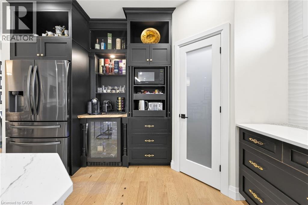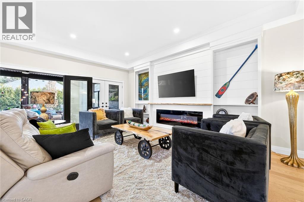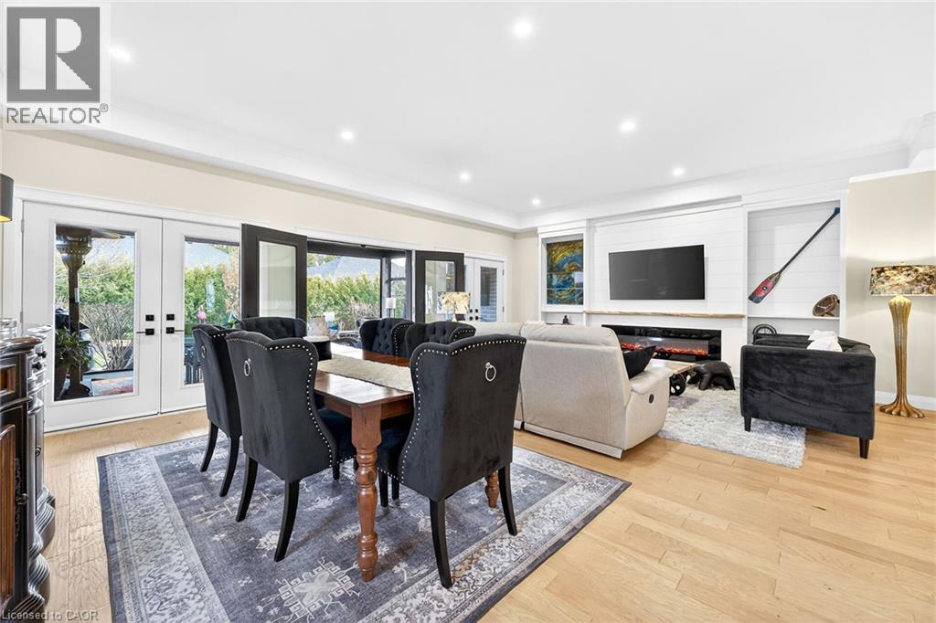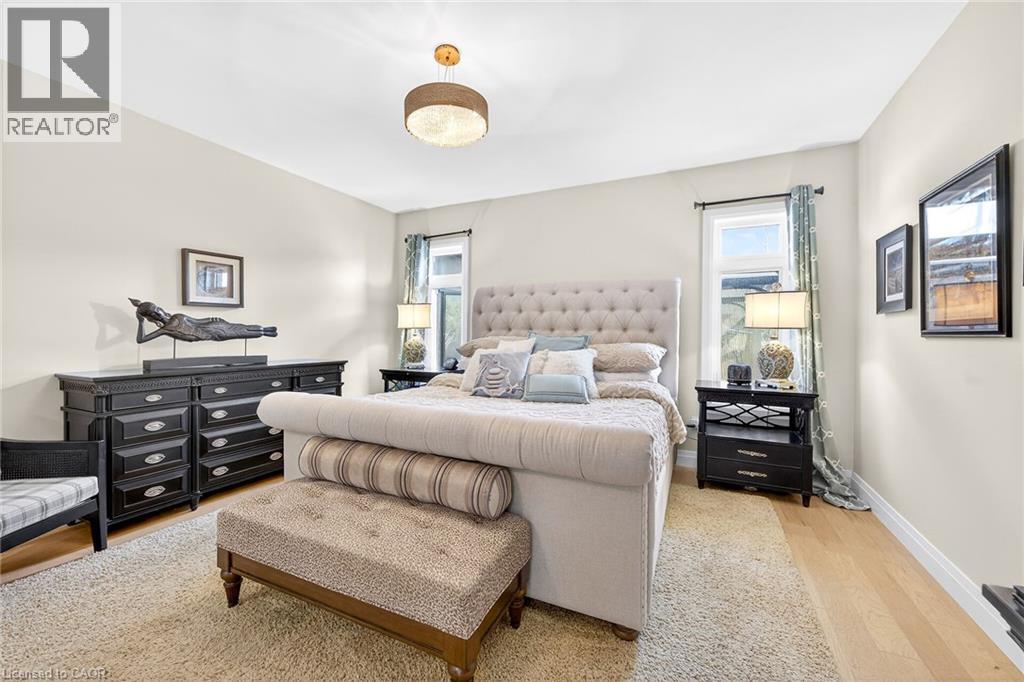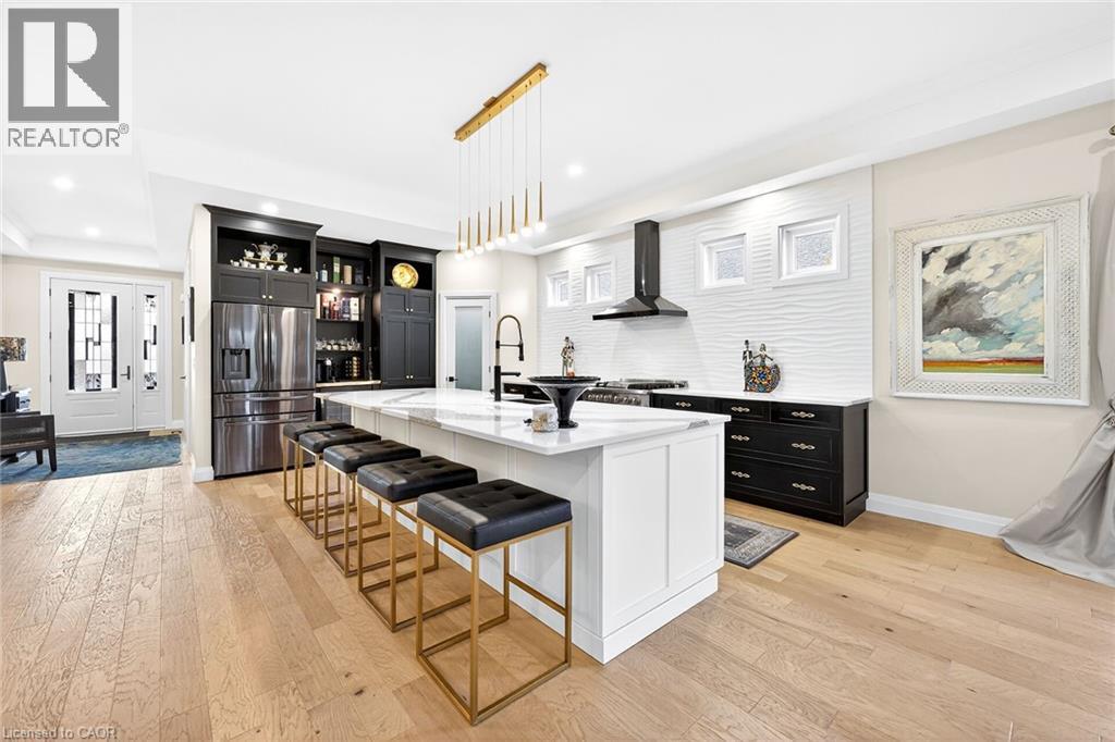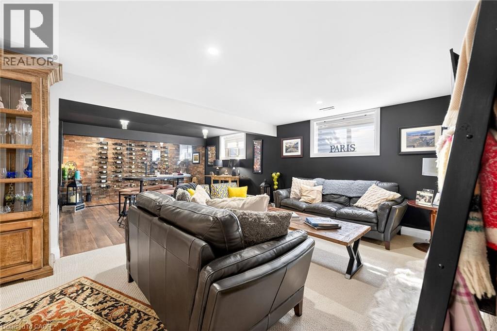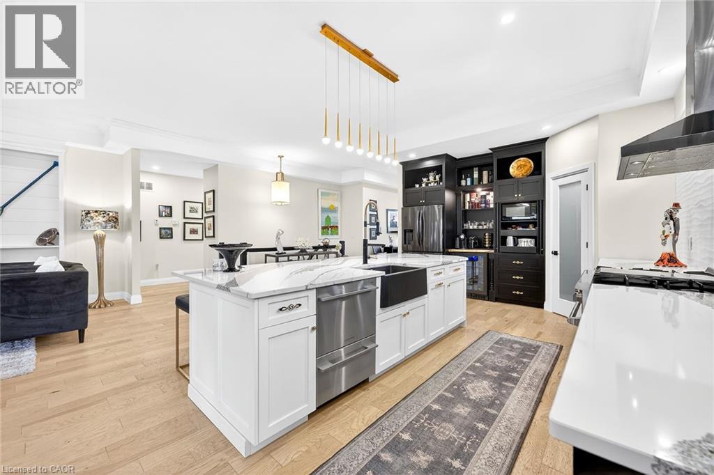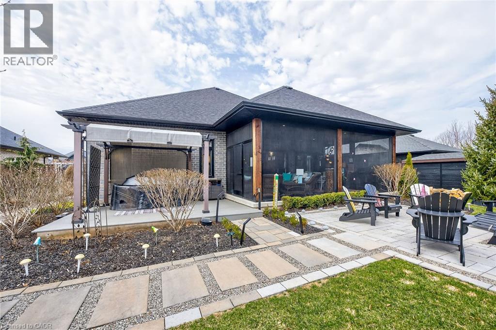 50 Bluenose is a stunning testament to pride of ownership and exemplary quality in home living. Custom built in 2019 on a spacious 65’x131' lot, this exquisite bungalow offers 3,400 sqft of thoughtfully designed living space, featuring modern aesthetics and luxurious finishes. As you step through the front door, you’ll be greeted by soaring 10’ ceilings and elegant 8’ interior doors that create a grand ambiance. The standout kitchen boasts an oversized Cambria countertop island, complemented by striking black distressed cabinetry with gold accents. The open-concept living and dining area is enhanced by three French doors that lead to a generous 24’x14’ covered and screened porch, perfectly blending indoor and outdoor spaces. The spacious master bedroom includes barn doors that open to a walk-in closet and a lavish 4-piece ensuite. An additional main floor bedroom serves beautifully as an office or den. The fully finished basement offers an impressive wine tasting room and cellar, showcases glass doors and cork walls and a cozy secondary living room features an electric fireplace, providing a warm and inviting atmosphere. This level also includes two large additional bedrooms, a vibrant 3-piece bathroom, a home gym, and ample seasonal storage. Nestled in one of Port Dover’s most sought-after neighborhoods, the grandeur of 50 Bluenose is truly captivating. When will you make the move? (id:64974)