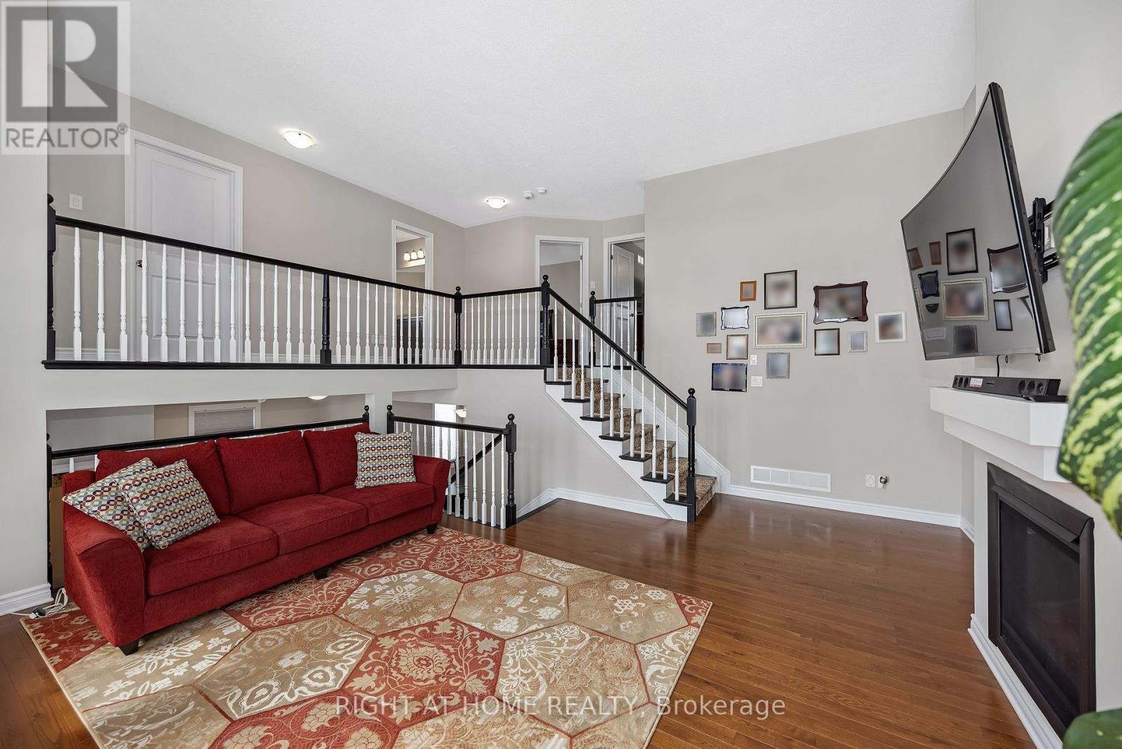 Step into a beautifully designed home offering comfort, functionality, and a layout ideal for both everyday living and entertaining. Situated on a premium lot with added side space, offering enhanced privacy and a more open feel compared to typical homes in the area. From the moment you enter, you are greeted by a spacious foyer with a closet, a versatile den perfect for a home office, and a well-designed layout featuring separate living and dining areas ideal for both family living and entertaining. The main floor showcases elegant hardwood flooring and a stunning oversized kitchen complete with a large island, granite countertops, and an exceptional amount of cabinetry, providing abundant storage and workspace while seamlessly connecting to the living spaces and creating a natural flow throughout the home. A few steps up, the home reveals its standout feature: a stunning loft-style family room with soaring double-height ceilings and expansive windows that fill the space with natural light, creating a bright and inviting atmosphere. Overlooking the main living areas and visible from the upper hallway, this space enhances the sense of openness and connection, ideal for both relaxing and entertaining. The second level offers a spacious primary bedroom with hardwood flooring, a well-appointed ensuite with separate tub and shower, and a walk-in closet. Two additional bedrooms and a full bathroom provide comfort and flexibility for a growing family. The fully finished basement adds value with a full bathroom, a den ideal for a home office or study, and a partially finished room ready to be customized as a bedroom, secondary laundry, or flexible living space. This home was thoughtfully customized by the original owners with upgrades that reflect pride of ownership and attention to detail throughout. Ideally located in Barrhaven close to parks, schools, shopping, and everyday amenities. (id:64974)