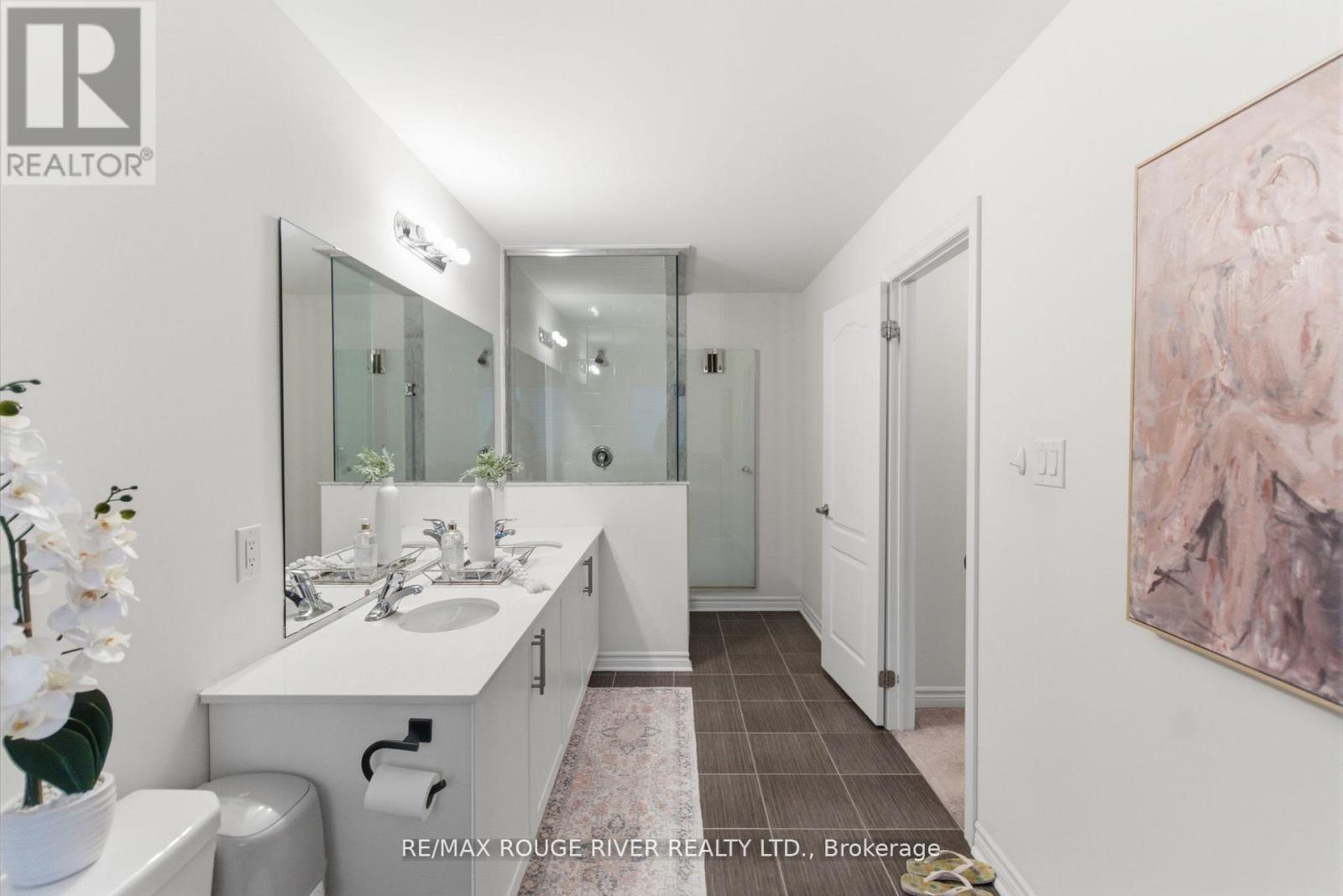 Step into this beautifully designed open-concept family home, built in 2016 by Preston Homes. The main floor boasts 9-foot ceilings, hardwood and ceramic flooring, and a bright, inviting living room overlooking the backyard, complete with California shutters. Adjacent is the formal dining room with elegant hardwood floors and ample natural light, flowing seamlessly into the kitchen and breakfast area. The kitchen features quartz countertops, black Samsung stainless steel appliances, and a breakfast space with walkout access to the private backyard. A convenient main floor laundry adds to the practicality of this level. Upstairs, the primary bedroom offers a luxurious 5-piece ensuite and his-and-hers walk-in closets. Three additional bedrooms provide plenty of space for family and guests, each with broadloom flooring and ample closet space. The partially finished basement offers a versatile recreation area, pot lighting, windows for natural light, and rough-ins for a kitchenette and 3-piece bathroom, along with a cold room for added storage. Outside, the backyard is private and family-friendly, backing onto Dr. G.J. MacGillivray Public School, offering peace of mind and convenience. The property features professionally landscaped front, back, and side yards, creating an inviting outdoor space for play, relaxation, and entertaining. Ideally located, this home offers easy access to Durham Oshawa GO Station and Courtice GO Bus Stop for effortless commuting. Recreation is just steps away, with South Courtice Arena within walking distance and Clarington Public Library only a short drive. With every detail carefully considered, this home perfectly balances style, comfort, and practicality for modern family living. (id:64974)