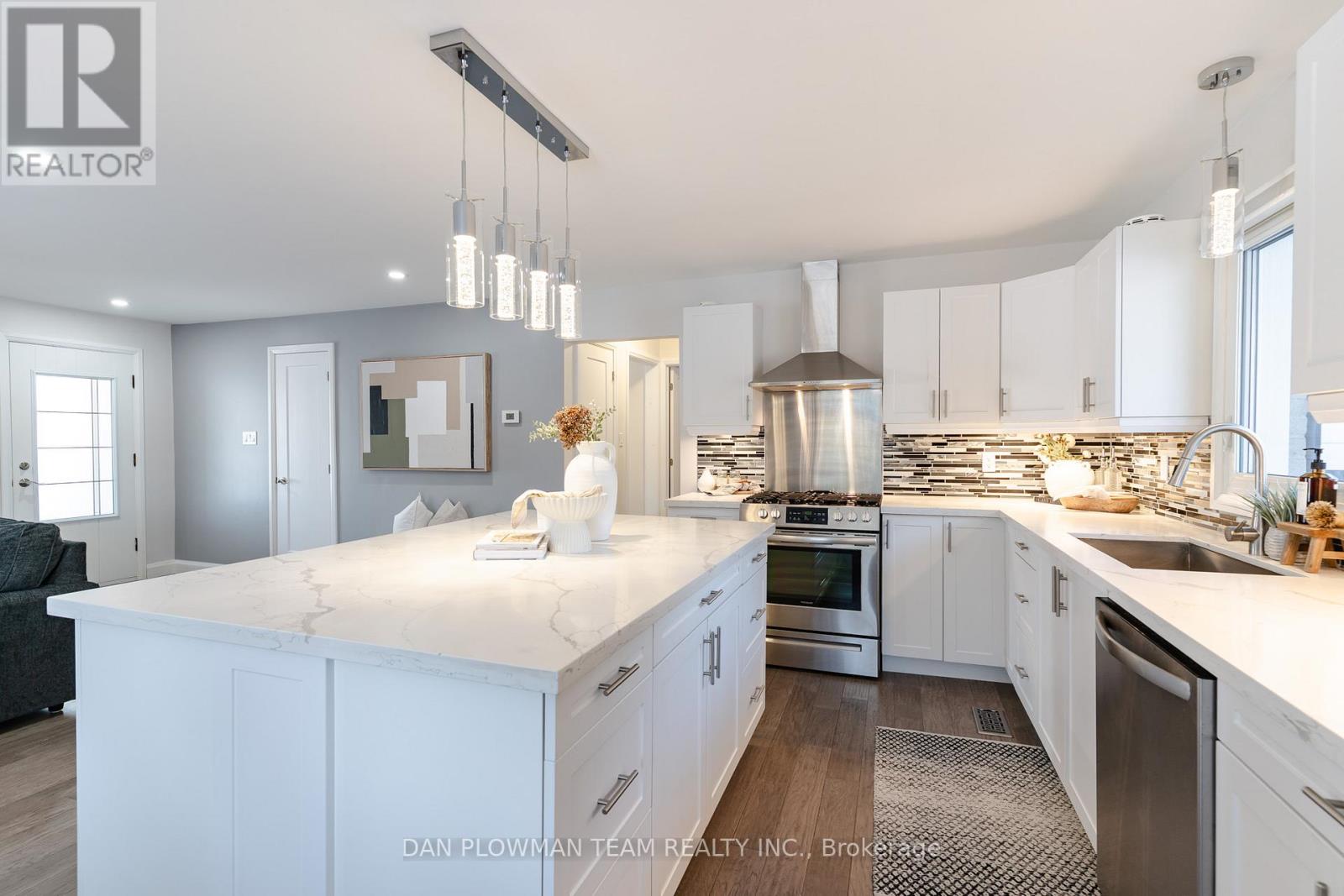 Welcome To This Absolutely Stunning, Fully Updated, Detached Brick Bungalow Set On A Beautiful 1.49-Acre Corner Lot, Just Walking Distance To Downtown Orono. Enjoy Country Living With No Neighbours In Front, Back, Or One Side, Offering Exceptional Privacy And Open Views. This Home Features A Bright Open-Concept Main Floor With Engineered Hardwood Throughout And A Fully Remodeled Kitchen Complete With Quartz Countertops, A Large Island, And State-Of-The-Art Appliances. The Combined Living And Dining Area Walks Out To A Spacious Deck, Perfect For Entertaining. The Main Floor Also Offers Two Generous Bedrooms And A Modern 3-Piece Bathroom. A Separate Entrance Leads To The Finished Basement, Which Includes Its Own Kitchen, Bedroom, Large Recreation Area, Office, And 3-Piece Washroom - Ideal For Extended Family Or In-Law Potential.The Double Car Garage Connects To Both The Main Floor And Basement Through A Large Breezeway For Added Convenience. Outdoors, Relax On The Covered Front Porch Or Enjoy The Simply Gorgeous Expansive Backyard Surrounded By Mature Trees. A Separate Driveway Leads To The Backyard And To The Heated 20 X 28 Ft Workshop With Garage Door And Loft - Perfect For Hobbies, Storage, Or Additional Parking For Vehicles, Trailers, And Recreational Toys. Bonus: No Rentals! Furnace, Hot Water Tank, And A/C Are Fully Owned (2020). Located On A Quiet Dead-End Street In A Family-Friendly Neighbourhood With Easy Access To Highways 115, 407, And 401, And Close To All Amenities, This Home Offers The Perfect Blend Of City Convenience And Country Comfort. A Rare Opportunity Offering Privacy, Space, And Versatility - Don't Miss It! (id:64974)