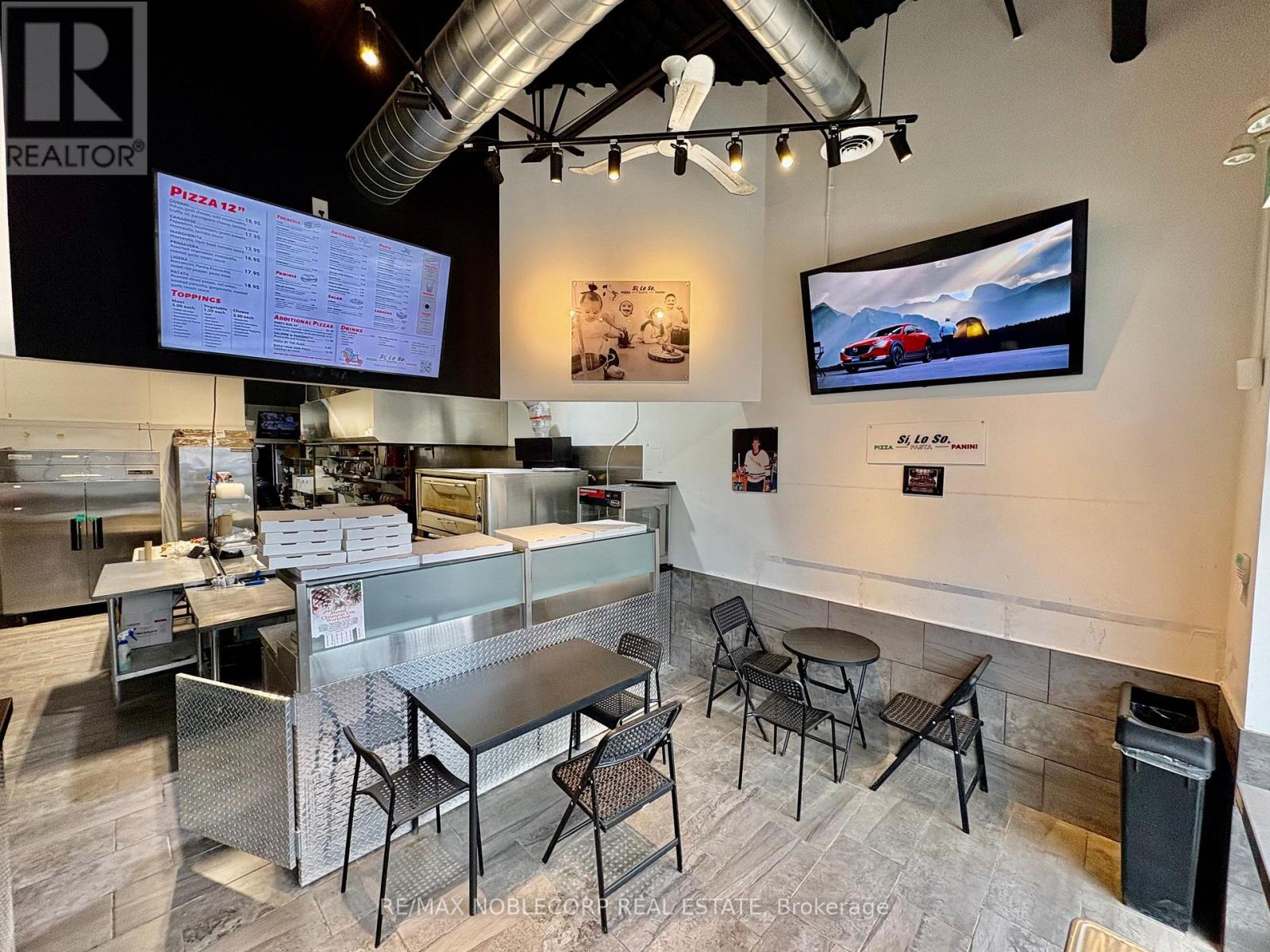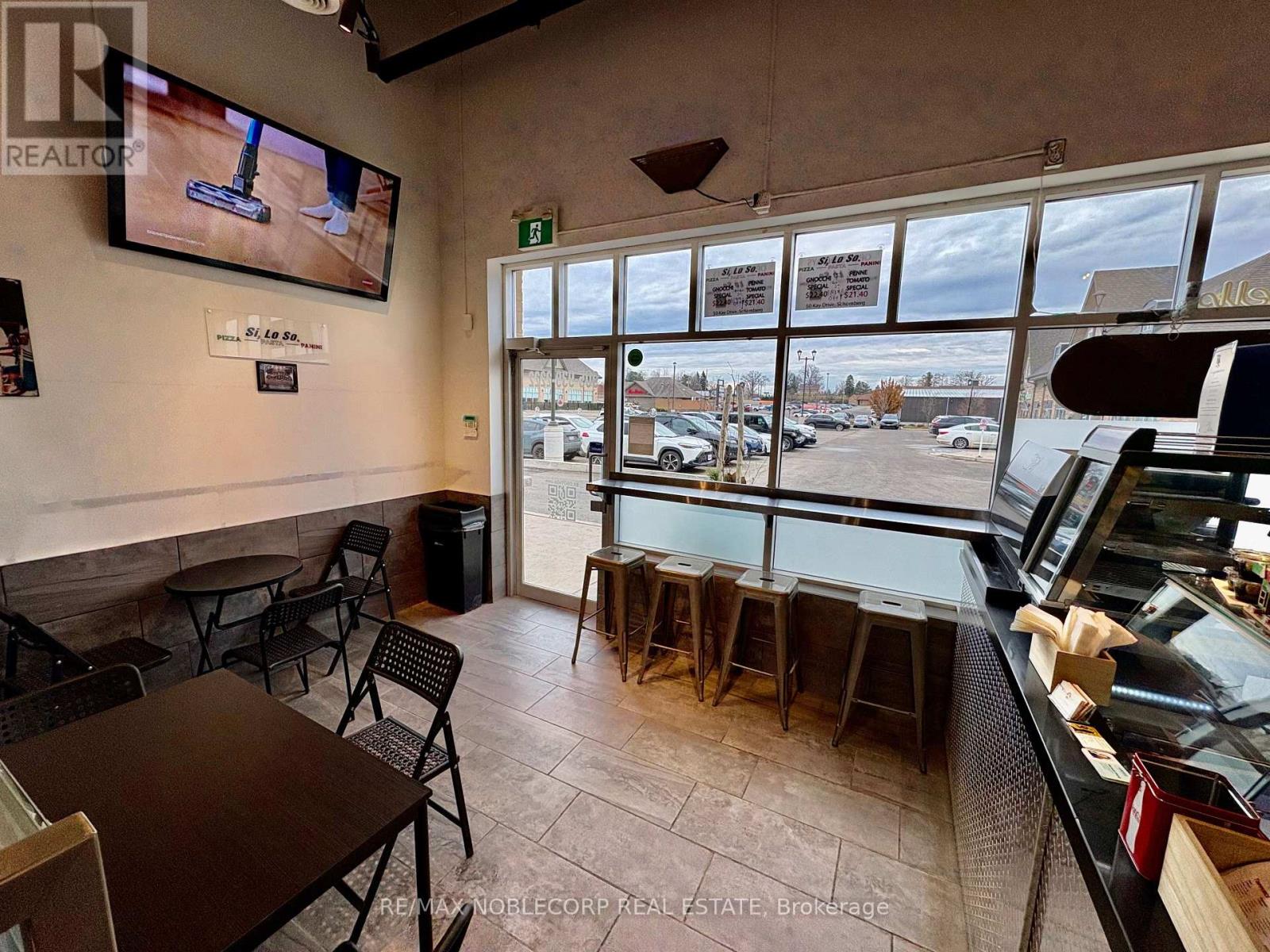 Recently built commercial restaurant unit, presenting a rare opportunity for restaurant operators, franchise groups, and hospitality to own and operate in a high-growth, high-traffic retail corridor. Strategically located within a modern plaza at the prominent intersection of Highway 27 and Highway 9, this property offers exceptional visibility, strong exposure, and consistent customer traffic in a rapidly expanding trade area. Surrounded by major national and regional anchors including LCBO, Tim Hortons, McDonald's, Petro-Canada, and Foodland, the plaza benefits from constant brand-driven traffic and a built-in customer base. The area is further supported by dense and growing residential communities, making it an ideal location for dine-in, take-out, and delivery-focused restaurant concepts. The approximately 1,200 sq. ft. unit is currently operating as an Italian restaurant and take-out component and includes existing commercial kitchen infrastructure, including a hood and exhaust system, significantly reducing startup costs and build-out timelines. The efficient layout allows for easy conversion to other restaurant QSR concept, franchise operation, specialty cuisine, café, or ghost kitchen. This turnkey restaurant-ready space offers flexibility for owner-operators and investors seeking immediate operational potential, brand expansion, or long-term brand growth. Ample on-site parking is available for customers and staff. Exceptional opportunity to acquire a high-visibility restaurant in a proven, high-demand location with strong traffic fundamentals and long-term upside.$4700.00 incld TMI/HST, Term in till 2028 with additional extension available w/ landlord approval. (id:64974)