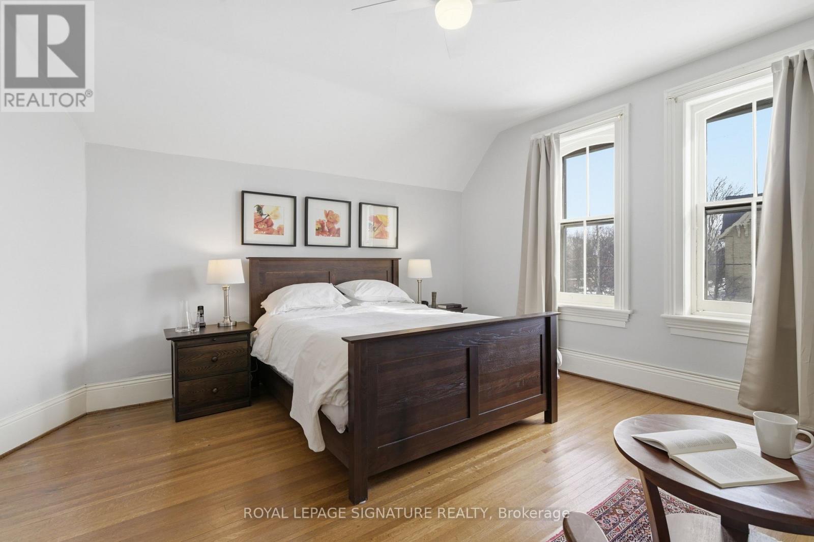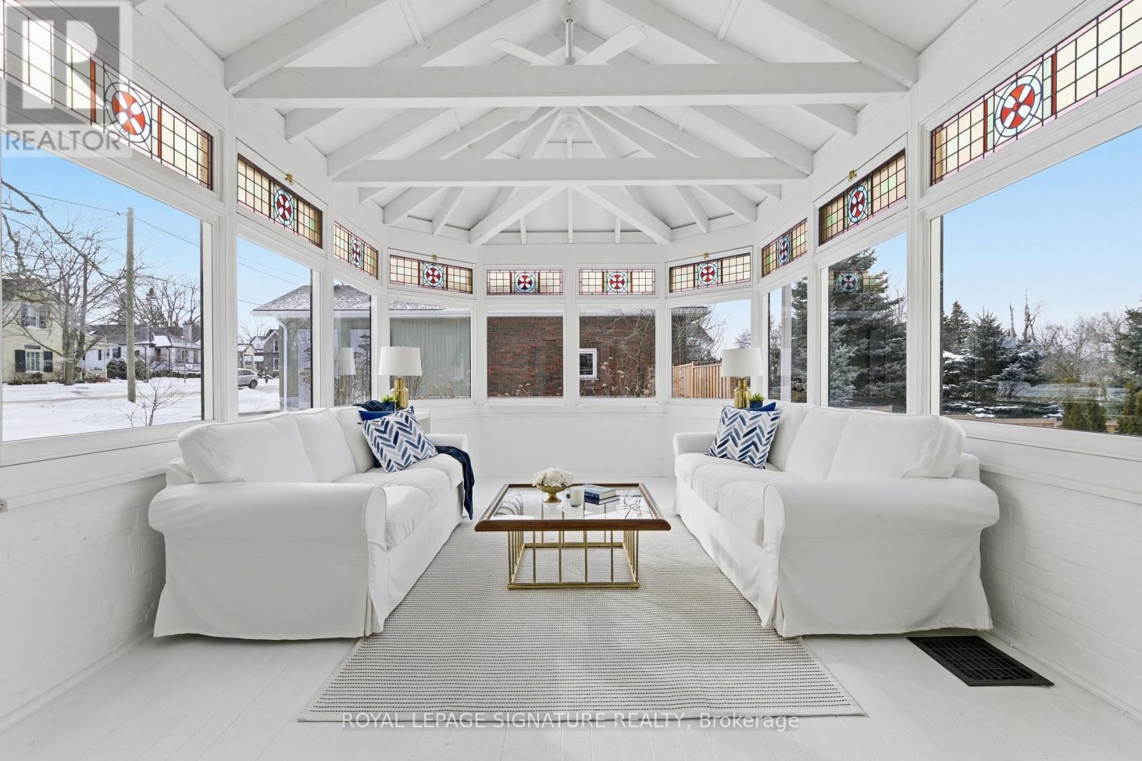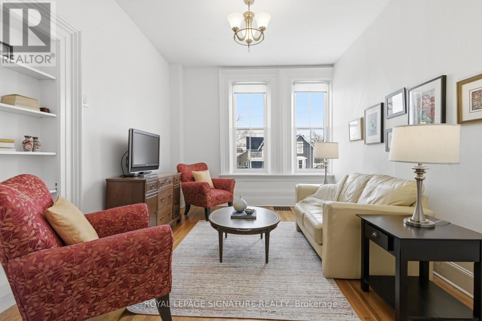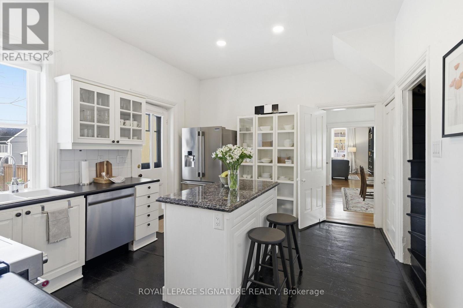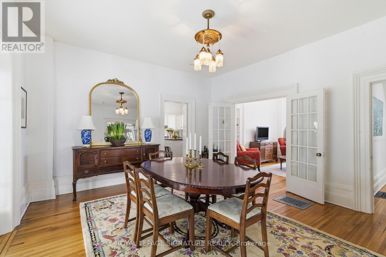 This beautifully preserved circa 1880 century home is set on a prominent corner lot along one of the town's most picturesque streets. Offering over 3,200 sq ft, the property balances architectural character with thoughtful modern upgrades, including a newer roof and furnace. Exceptional curb appeal is defined by extensive gardens, a wraparound porch, decorative trim, and classic shutters that speak to the craftsmanship of its era. Inside, a grand foyer introduces a sweeping curved staircase accented by ornate millwork and soaring ceilings. The main floor features 10-foot ceilings and an abundance of original details, including oversized baseboards, period trim, tall windows with transoms, chair rails, and original cold air returns. Six well-defined living spaces offer both elegance and versatility: a formal living room with gas fireplace insert, central dining room, parlour with French doors, warm and inviting kitchen, private office with adjacent bathroom, and a beautifully rebuilt conservatory with original stained glass transoms providing a peaceful, light-filled retreat. The kitchen is anchored by a centre island with granite countertops and stainless steel appliances, and the main-floor office is ideal for a home-based workspace. Upstairs, 9.5-foot ceilings continue the sense of openness. A generous landing offers space for a reading nook. The principal bedroom features an electric fireplace, large walk-in closet with custom organizers, and excellent natural light. Two additional bedrooms are generously sized and complemented by a 3-piece bath with soaker tub and a second 3-piece bath with shower.The dry basement with 8' ceilings provides ample storage space, a washer, dryer, hot water heater (rented), owned water softener, and utility sink. Homes of this calibre and character rarely come to market. A true Uxbridge landmark, offering timeless beauty, thoughtful updates, and a setting that feels both special and welcoming. (id:64974)