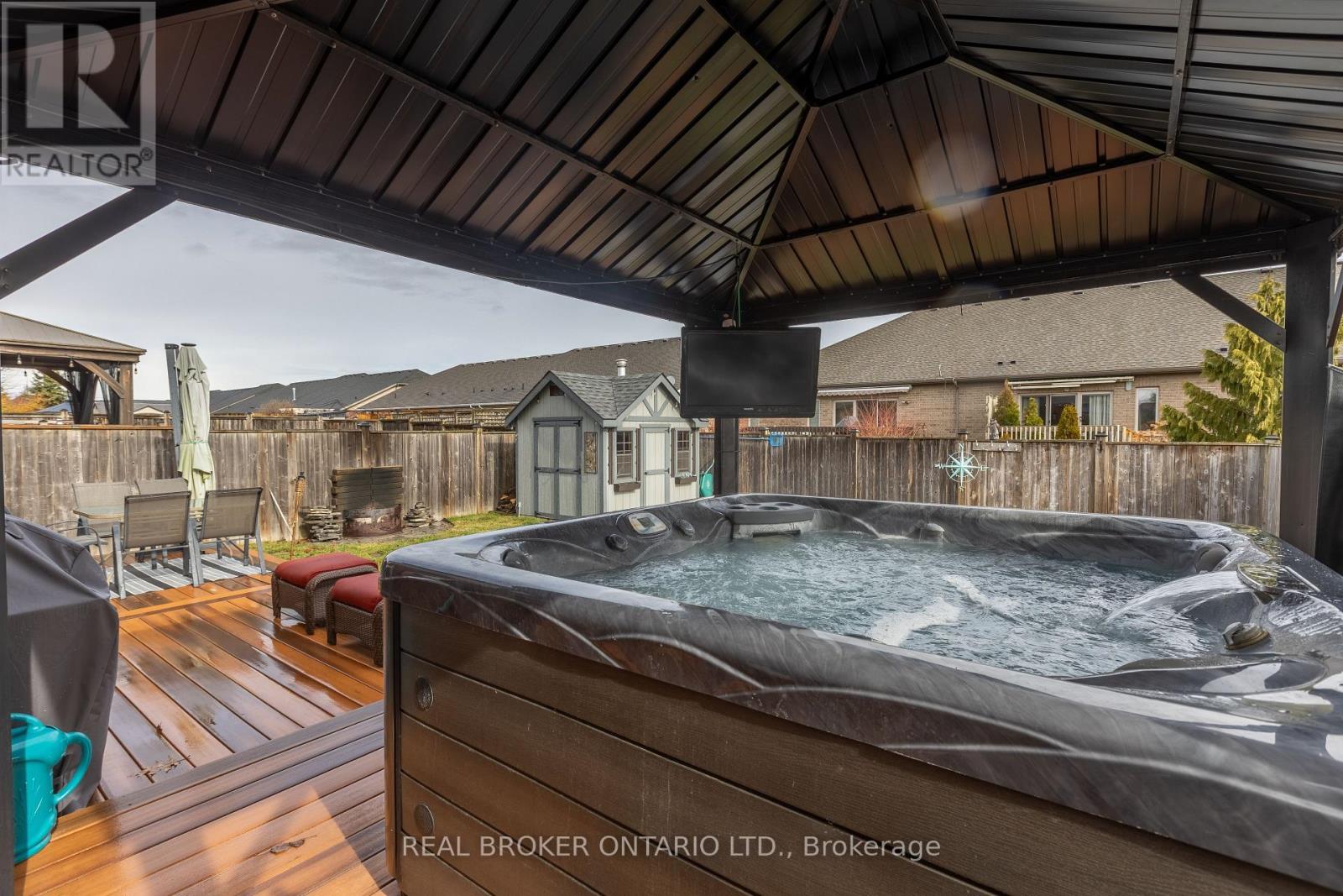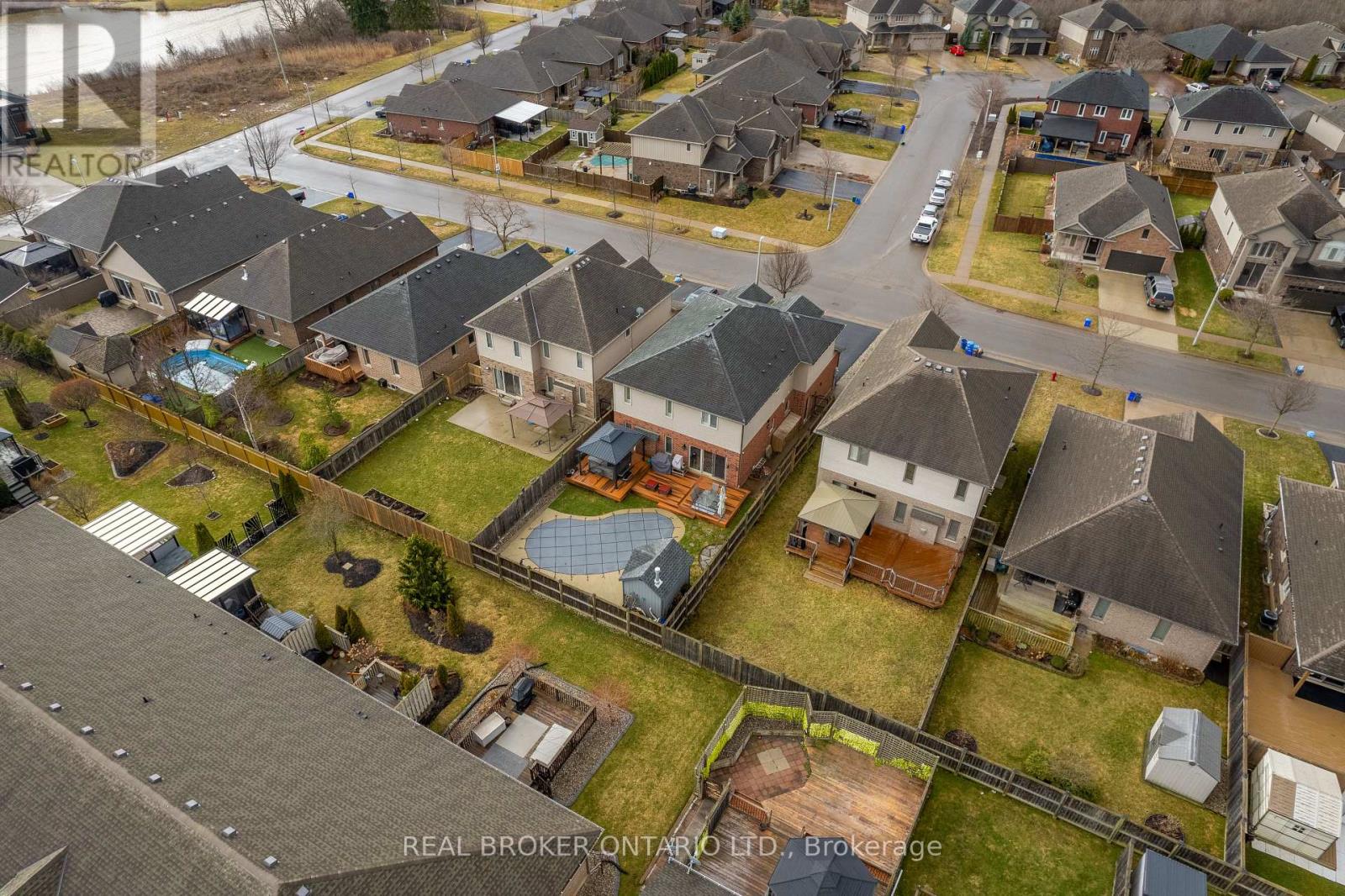 Welcome to your next chapter in the heart of Coyle Creek-a warm, welcoming community perfect for growing families. This beautifully maintained 2-storey detached home will take your breath away from the moment you step inside. Built in 2012 by Policella Homes, it offers 3+2 bedrooms and 3.5 bathrooms, providing plenty of space for everyone to live, work, and unwind comfortably. The main living area is bright and inviting, featuring an open-concept layout with an impressive 18-foot ceiling, hardwood and tiled floors, a cozy gas fireplace, surround sound speakers on wall and ceiling, and a stunning second-floor overlook that creates a sense of both openness and connection. Whether you're hosting family gatherings or enjoying a quiet night in, this space is designed to bring people together. Step outside and picture summers in your own private backyard oasis. The fully fenced yard features a heated inground saltwater pool (2020), pool shed, covered hot tub, gas BBQ hook up and room for kids to play and for effortless entertaining with family and friends. Additional highlights include an attached double garage, California shutters throughout, hardwired camera system, central air, and an updated central vacuum system (2024), offering both comfort and convenience. You'll also appreciate the thoughtful custom touches throughout-such as floating shelves and unique pet-friendly features, including built-in cat walkways and elevated lounging spaces in the living room, perfect for your furry family members. Located just a short walk to a scenic park with a pond and walking trails, and only a short drive to Cardinal Lakes Golf Club, this is a neighbourhood where families grow, connect, and create lasting memories. Come experience it for yourself-book your showing today! (id:64974)