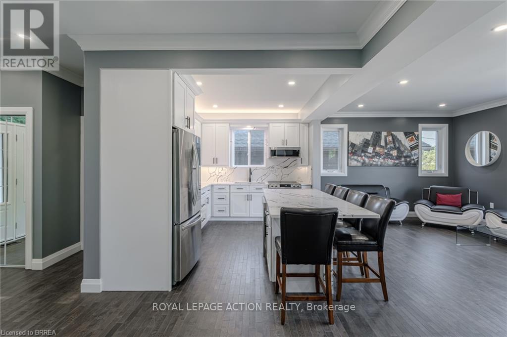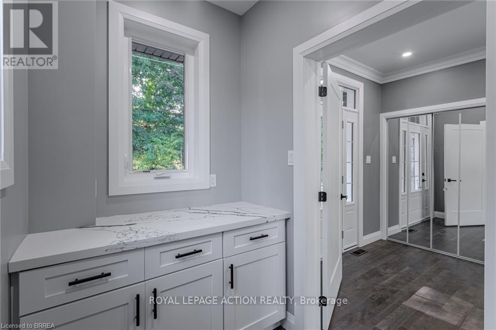 WOW! Stunning, new home in highly sought-after Port Dover, just steps from Black Creek! This home offers versatility for today's lifestyle. Appreciate the private double-wide driveway, accommodating up to 6 vehicles, & the stamped concrete front porch. A spacious foyer features double mirrored closets, 9-foot ceilings, & oak hardwood flooring that flows throughout the home. Located off the foyer is a laundry room with quartz countertops. On the opposite side, is a beautifully finished 4-piece bath with textured tile floors, quartz vanity & tile shower surround. The open-concept main floor is filled with natural light & offers beautiful canal views. The custom kitchen is a showstopper, boasting a 5-seat island, quartz counters & backsplash, under-mount lighting, dovetail soft-close cabinetry, stainless steel appliances & pantry. Additional features include pot lights & crown molding that continue into the living area, creating a seamless flow. Upstairs, enjoy a versatile space with 12-foot vaulted ceilings, recessed lighting, wet bar with quartz counters & bar fridge-perfect for entertaining, working from home, or relaxing. 7-foot sliding doors lead to a covered Dura-deck with glass railings, offering breathtaking views of the canal. There are 3 spacious bedrooms, including a primary suite, & a luxurious 5-piece bathroom with double quartz vanity & textured tile flooring. On the lower level, a landing leads to the back of the home & a flexible storage/utility room with a 3-piece bath rough-in, secondary laundry option & mechanical systems. This space offers great potential for a variety of future uses. A 1.5 car garage is just off this space featuring drain and water supply line rough-ins. Located just minutes from the heart of Port Dover, this home offers a peaceful retreat with easy access to local amenities. The owner may consider selling the land behind the home on the canal providing the possibility to add some green-space, a docking spot & access to Lake Erie! (id:64974)