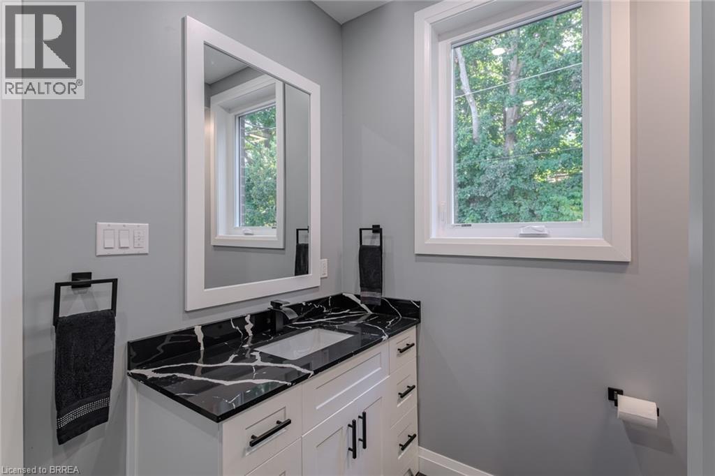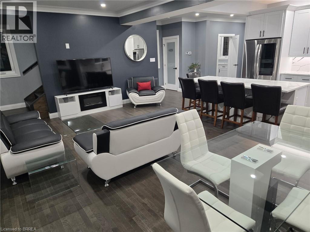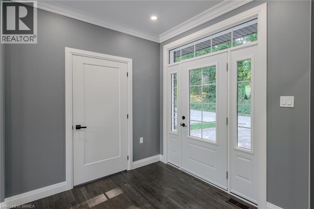 WOW! Stunning, new home in highly sought-after Port Dover, just steps from Black Creek! This home offers versatility for today’s lifestyle. Appreciate the private double-wide driveway, accommodating up to 6 vehicles, & the stamped concrete front porch. A spacious foyer features double mirrored closets, 9-foot ceilings, & oak hardwood flooring that flows throughout the home. Located off the foyer is a laundry room with quartz countertops. On the opposite side, is a beautifully finished 4-piece bath with textured tile floors, quartz vanity & tile shower surround. The open-concept main floor is filled with natural light & offers beautiful canal views. The custom kitchen is a showstopper, boasting a 5-seat island, quartz counters & backsplash, under-mount lighting, dovetail soft-close cabinetry, stainless steel appliances & pantry. Additional features include pot lights & crown molding that continue into the living area, creating a seamless flow. Upstairs, enjoy a versatile space with 12-foot vaulted ceilings, recessed lighting, wet bar with quartz counters & bar fridge—perfect for entertaining, working from home, or relaxing. 7-foot sliding doors lead to a covered Dura-deck with glass railings, offering breathtaking views of the canal. There are 3 spacious bedrooms, including a primary suite, & a luxurious 5-piece bathroom with double quartz vanity & textured tile flooring. On the lower level, a landing leads to the back of the home & a flexible storage/utility room with a 3-piece bath rough-in, secondary laundry option & mechanical systems. This space offers great potential for a variety of future uses. A 1.5 car garage is just off this space featuring drain and water supply line rough-ins. Located just minutes from the heart of Port Dover, this home offers a peaceful retreat with easy access to local amenities. The owner may consider selling the land behind the home on the canal providing the possibility to add some green-space, a docking spot & access to Lake Erie!! (id:64974)