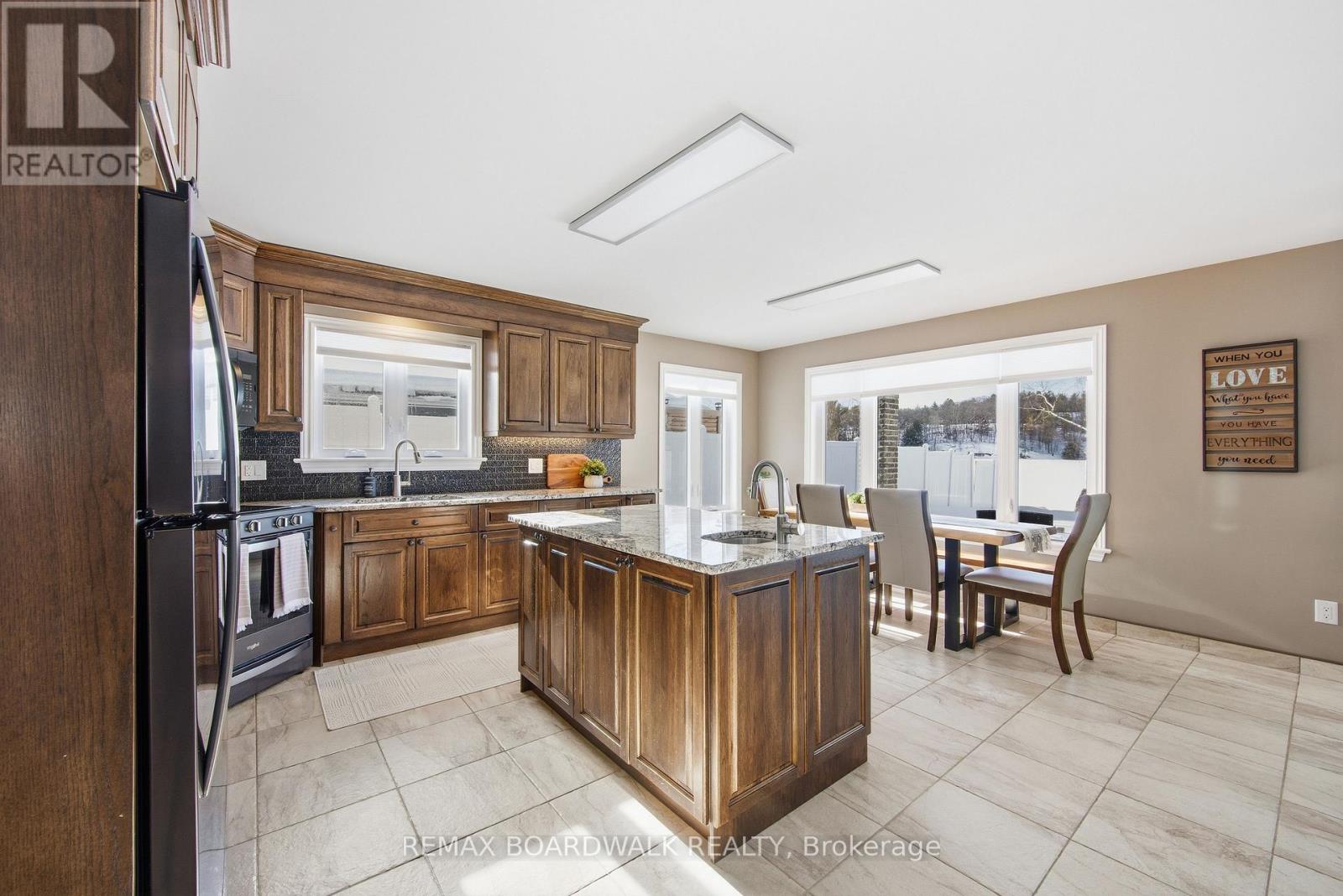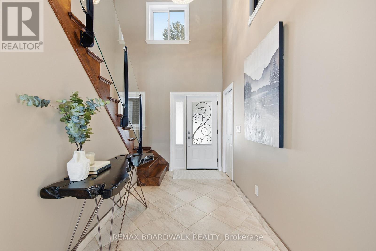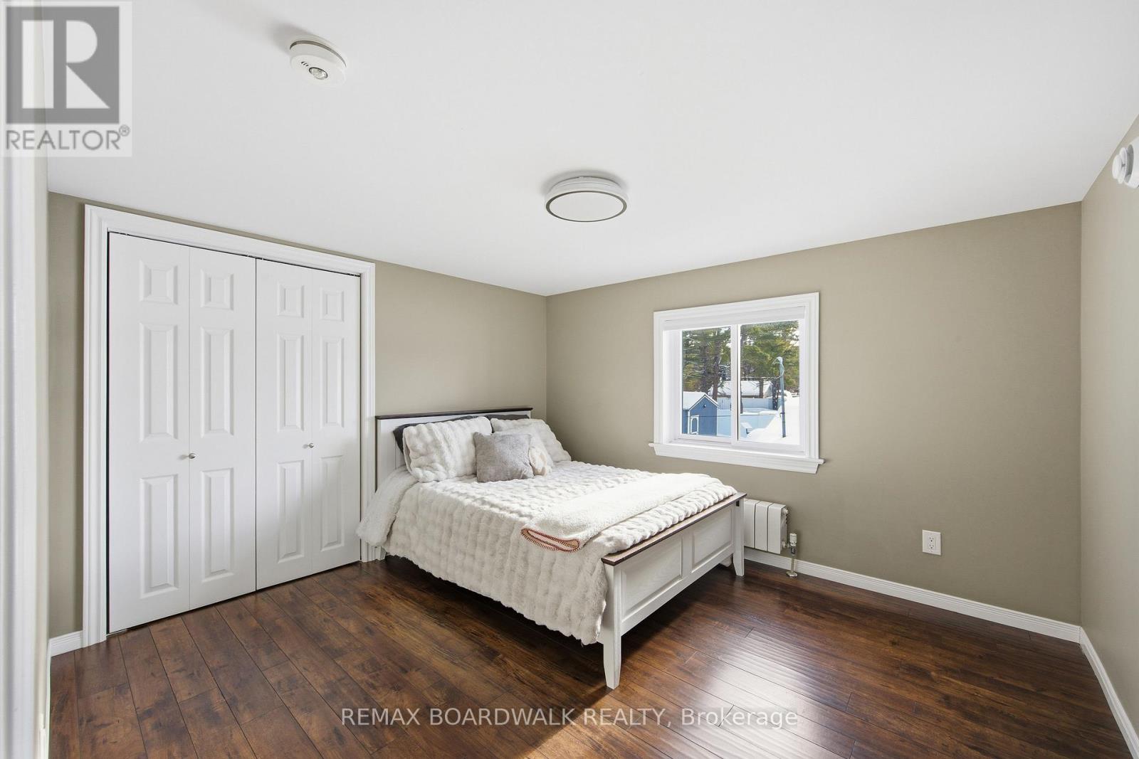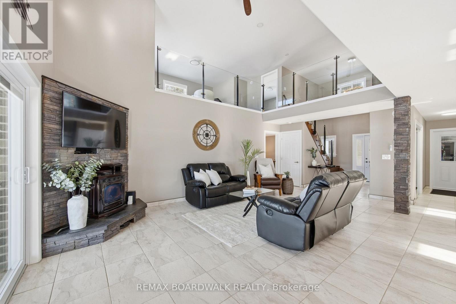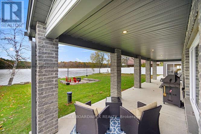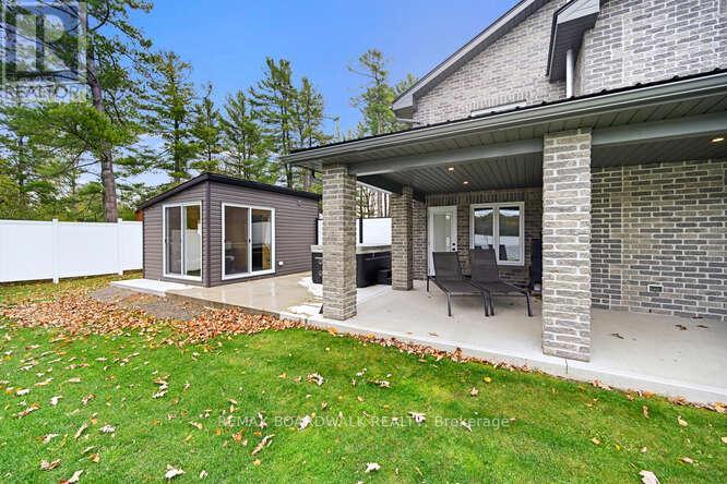 Welcome to this waterfront retreat on sought-after Graham Lake, where custom craftsmanship and luxury come together in perfect harmony. Built in 2018, this stunning full-brick residence with a steel roof has every detail carefully considered, with every finish selected for quality, comfort, and longevity. Step inside to an open-concept main floor highlighted by soaring two-story ceilings, engineered glass railings, and statement lighting that immediately sets the tone. The custom Hunt's kitchen is a showpiece, featuring hickory cabinetry, live-edge granite countertops with a life-proof seal, and premium finishes. The main-floor primary suite is a true sanctuary, offering a spa-inspired ensuite with a custom glass shower and soaker tub. Step directly outside to your hot tub, seamlessly connecting the indoors to your private outdoor area complete with your own personal sauna and relaxation room overlooking the lake, creating the ultimate space to unwind, recharge, and enjoy year-round wellness at home. Upstairs, you'll find three generous bedrooms, a three-piece bath, a bright den overlooking the main living space, and a versatile bonus room ideal for a home theatre, gym, or additional lounge. The home features radiant in-floor heating with individual room controls, an ICF foundation, premium insulation, on-demand hot water/boiler, a high-end water treatment system, and a fully automatic Generac generator. The heated garage offers hot & cold water, floor drains, and an automatic opener. Outdoors, enjoy pristine shoreline, a 24x10ft dock w/ swim platform & additional Seadoo dock. Thoughtfully designed exterior features include armor stone retaining wall and landscaping, a fire-pit area, power outlets for seasonal lighting, and expansive grounds perfect for entertaining or peaceful evenings by the water. This is more than a home-it's a lifestyle. A rare opportunity to own a waterfront property built to last, offering comfort, privacy, and unforgettable lakefront living. (id:64974)