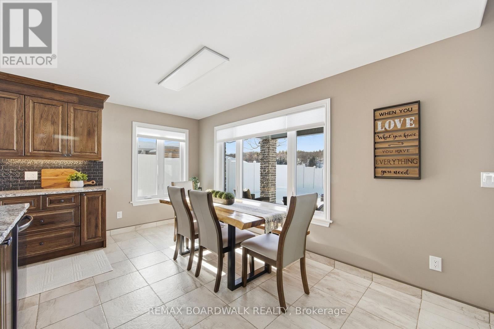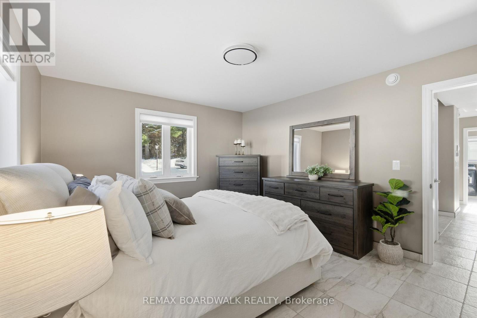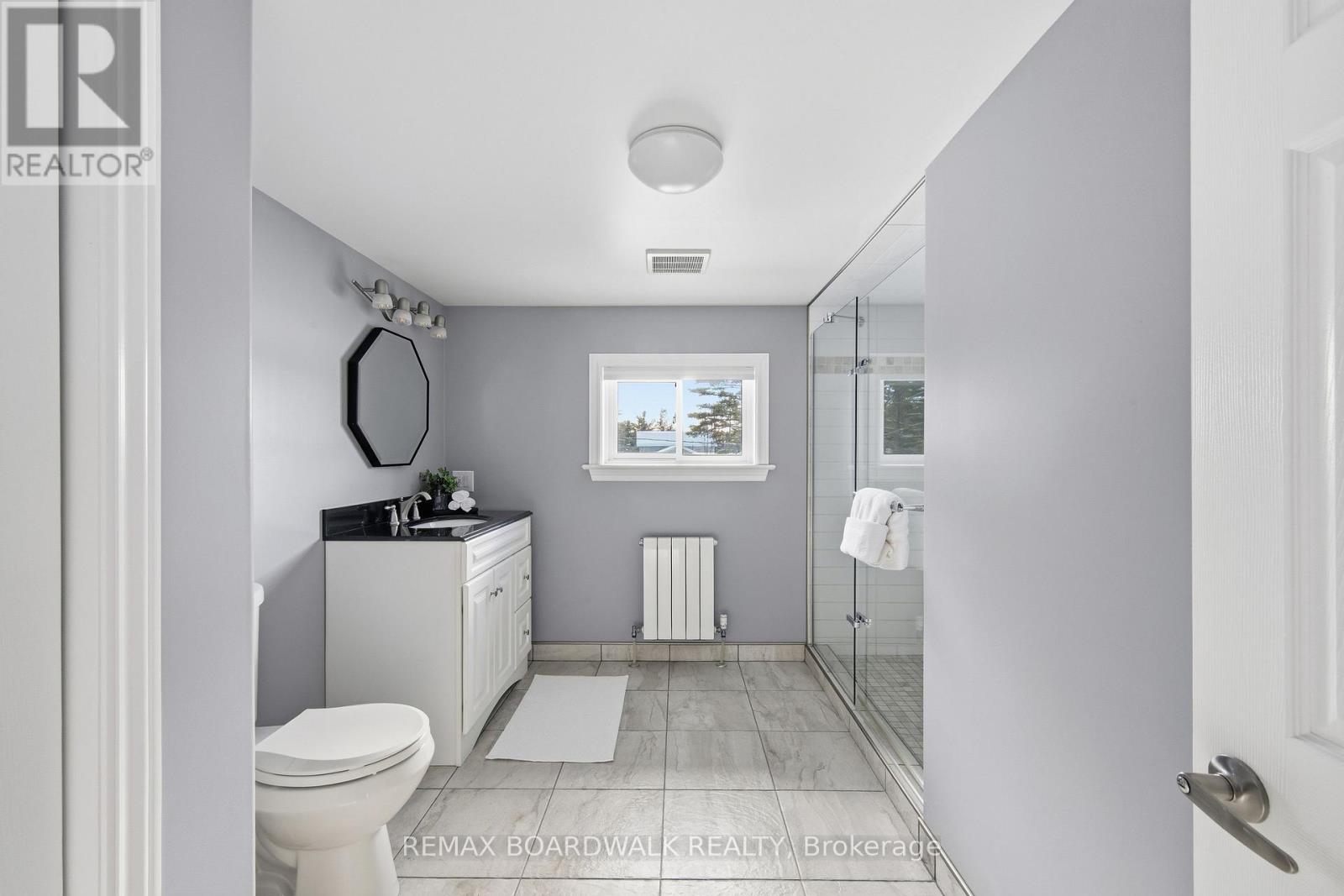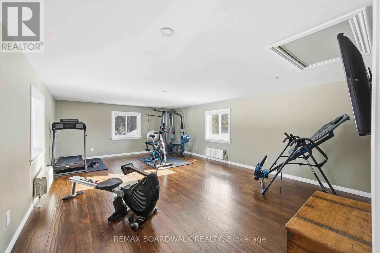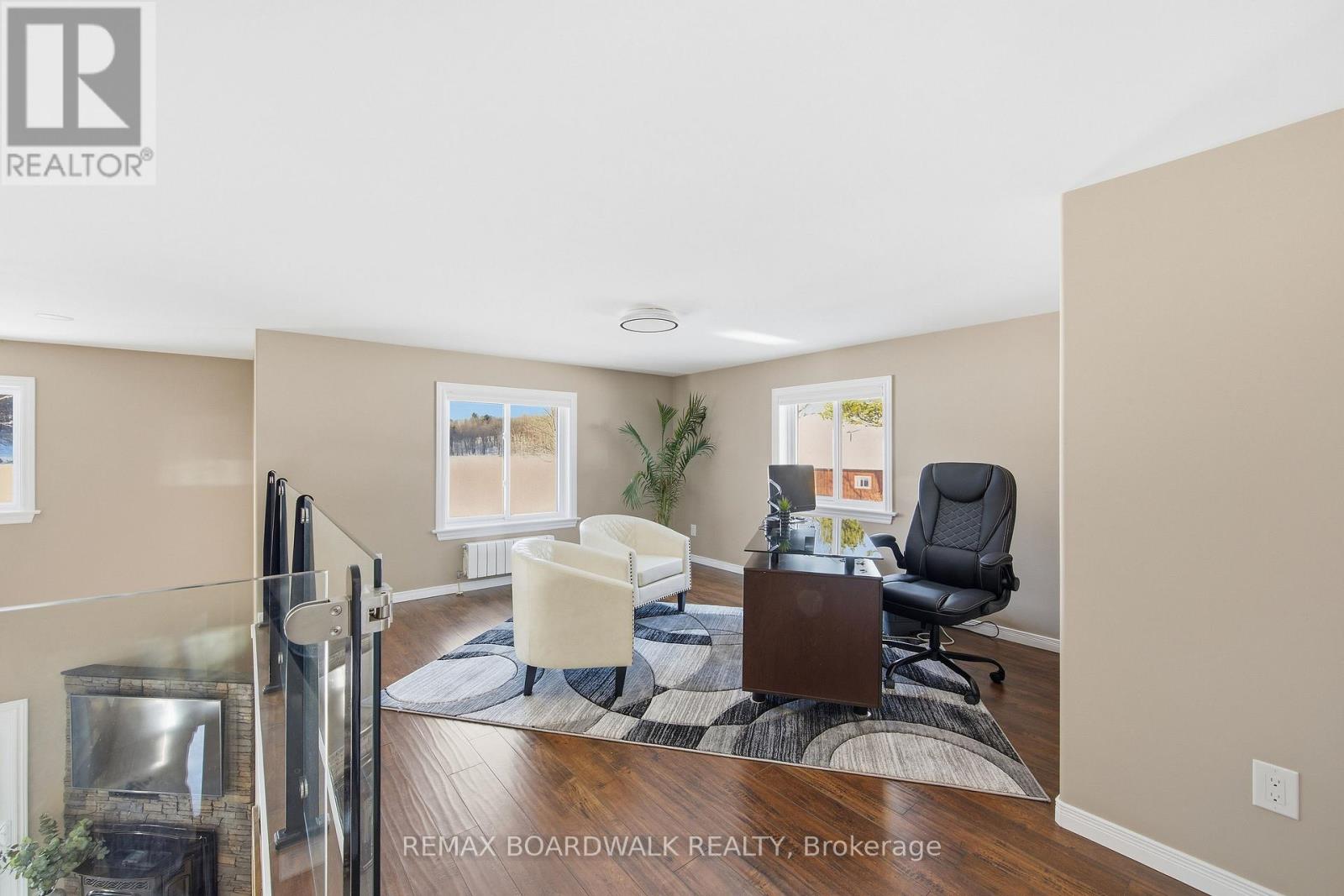 Welcome to this waterfront retreat on sought-after Graham Lake, where custom craftsmanship and luxury come together in perfect harmony. Built in 2018, this stunning full-brick residence with a steel roof has every detail carefully considered, with every finish selected for quality, comfort, and longevity. Step inside to an open-concept main floor highlighted by soaring two-story ceilings, engineered glass railings, and statement lighting that immediately sets the tone. The custom Hunt's kitchen is a showpiece, featuring hickory cabinetry, live-edge granite countertops with a life-proof seal, and premium finishes. The main-floor primary suite is a true sanctuary, offering a spa-inspired ensuite with a custom glass shower and soaker tub. Step directly outside to your hot tub, seamlessly connecting the indoors to your private outdoor area complete with your own personal sauna and relaxation room overlooking the lake, creating the ultimate space to unwind, recharge, and enjoy year-round wellness at home. Upstairs, you'll find three generous bedrooms, a three-piece bath, a bright den overlooking the main living space, and a versatile bonus room ideal for a home theatre, gym, or additional lounge. The home features radiant in-floor heating with individual room controls, an ICF foundation, premium insulation, on-demand hot water/boiler, a high-end water treatment system, and a fully automatic Generac generator. The heated garage offers hot & cold water, floor drains, and an automatic opener. Outdoors, enjoy pristine shoreline, a 24x10ft dock w/ swim platform & additional Seadoo dock. Thoughtfully designed exterior features include armor stone retaining wall and landscaping, a fire-pit area, power outlets for seasonal lighting, and expansive grounds perfect for entertaining or peaceful evenings by the water. This is more than a home-it's a lifestyle. A rare opportunity to own a waterfront property built to last, offering comfort, privacy, and unforgettable lakefront living. (id:64974)