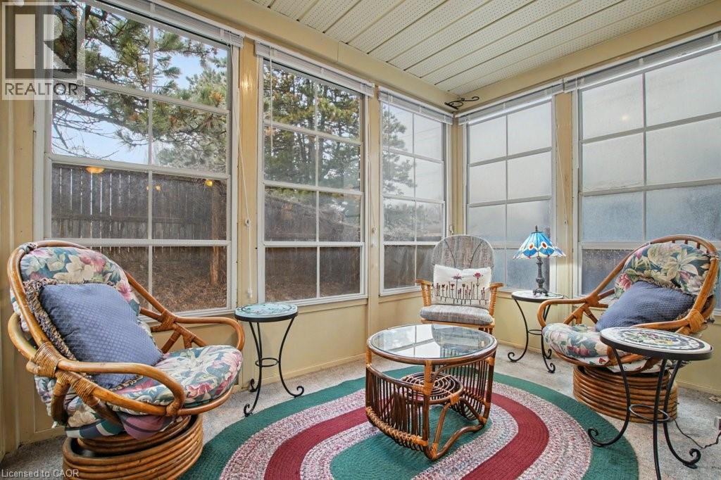 Welcome to Livingstone Circle - an ADULT COMMUNITY for ages 55+ located in Stanley Park prime neighbourhood. A great end-unit bungalow townhome beside walking trail and located close to Stanley Park Mall, Stanley Park Community Centre, coffee shop and restaurants, banks, churches, walking trails and public transit plus easy access to the expressway. Spacious 2 bedroom bungalow townhome with single garage featuring 2 1/2 baths; MAIN FLOOR Laundry room, large open livingroom with access to lovely and bright sunroom with plenty of windows; large private front porch and access to garage; finished recreation room plus large unfinished space for your projects and extra bathroom. Good storage space. Enjoy maintenance free living with monthly fee covering taxes, yard maintenance, snow removal and more! Residents can enjoy The Cottage community Centre for social gatherings and activities. (id:64974)