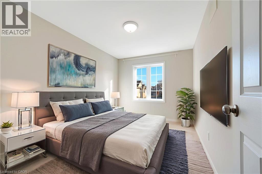 CLEAN, CONTEMPORARY & FULL OF NATURAL LIGHT! This bright, open-concept end-unit townhome feels instantly welcoming with its neutral tones, modern finishes, and thoughtfully designed layout. The spacious main floor features a stylish kitchen complete with an island, breakfast bar seating, and ample storage—perfect for everyday living and entertaining. The living room opens through sliders to a private back patio, ideal for relaxing or enjoying a morning coffee. Upstairs, you’ll find 3 generous bedrooms and 2 full bathrooms in total, including a primary bedroom with its own ensuite. The unspoiled basement is ready for your personal touch and future possibilities. Located just minutes from Conestoga College, scenic walking trails, everyday amenities, and with quick 2-minute access to the 401, this home blends comfort with convenience. This unit offers a water softener, garage door open, freshly shampooed carpets and more. A fantastic opportunity for first-time buyers, investors, or young families. Additional parking available for rent or purchase. Photos are virtually staged. (id:64974)