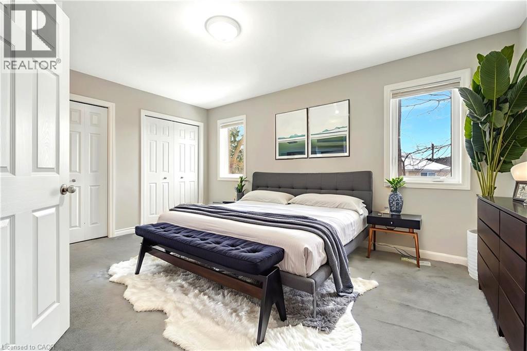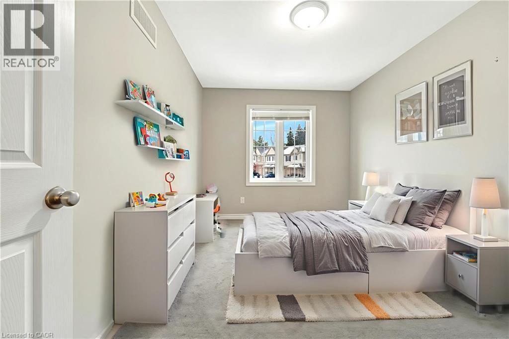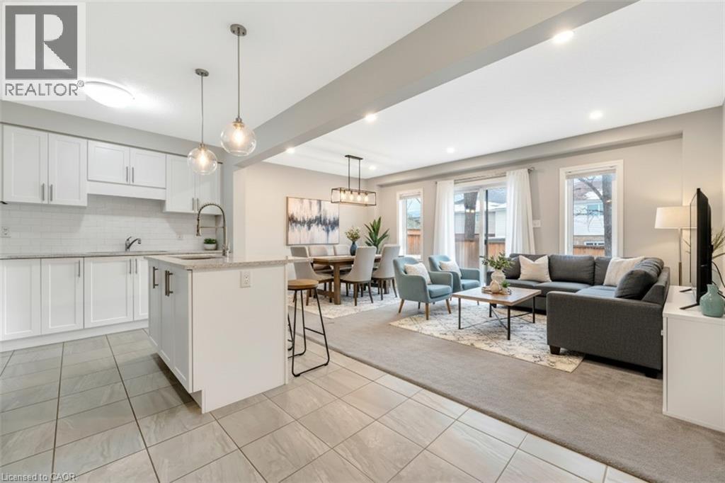 CLEAN, CONTEMPORARY & FULL OF NATURAL LIGHT! This bright, open-concept townhome feels instantly welcoming with its neutral tones, modern finishes, and thoughtfully designed layout. The spacious main floor features a stylish kitchen complete with an island, breakfast bar seating, tiled backsplash, and ample storage—perfect for everyday living and entertaining. The living room opens through sliders to a private back patio, ideal for relaxing or enjoying a morning coffee. Upstairs, you’ll find 3 generous bedrooms and 2 full bathrooms in total, including a primary bedroom with its own 3pc ensuite. The unspoiled basement is ready for your personal touch and future possibilities. Located just minutes from Conestoga College, scenic walking trails, everyday amenities, and with quick 2-minute access to the 401, this home blends comfort with convenience. This unit offers a water softener, garage door open, freshly shampooed carpets and more. A fantastic opportunity for first-time buyers, investors, or young families. Additional parking available for rent or purchase. Photos are virtually staged. (id:64974)