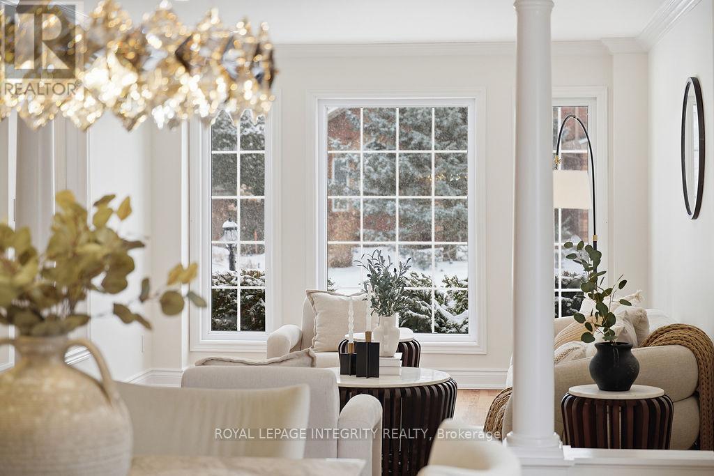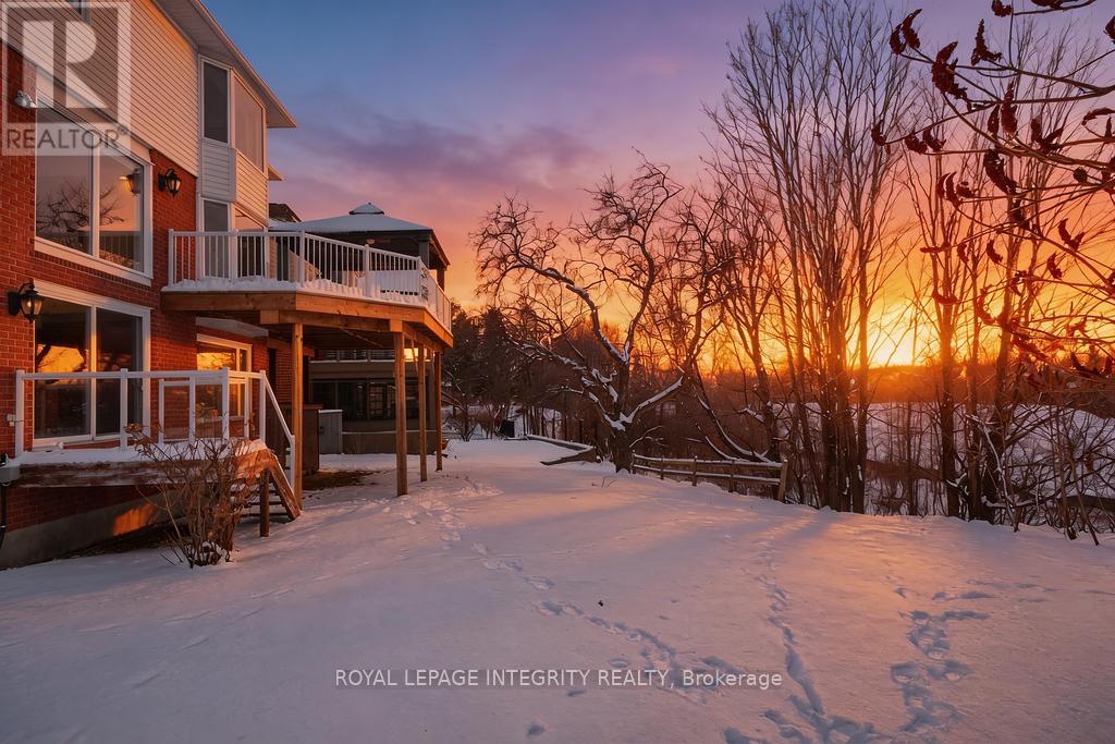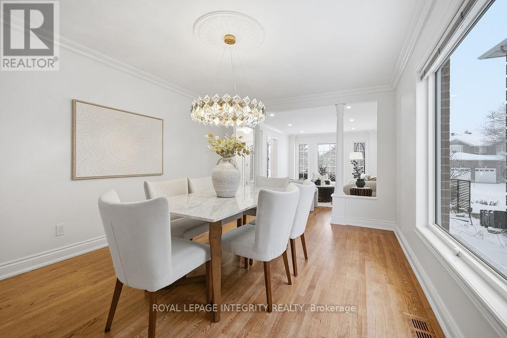 Perched on an ELEVATED Premium Pie Lot in the heart of Kanata Lakes, this magnificent property offers an Eagle-Eye view with 180-Degree vistas of rolling greenery and serenity. Spanning over 4,500 sqft of meticulously maintained living space, this home exudes timeless elegance, offers NO REAR NEIGHBORS & WALK-OUT Basement & West-facing oasis. It boasts 5 bdrms & 5 baths including 2 EN-SUITES & Floor-to-Ceiling windows; breathtaking natural views from the massive deck and integrated to the kitchen, nook, family room and the primary ensuite. The grand foyer is anchored by a dramatic 3-Story OPEN Spiral Staircase with a stately timeless Crystal Centerpiece, brilliantly lit by expansive Skylight. The main level showcases Solid Oak HW floors and 2026 designer palettes throughout, illuminated by 2026 Signature lighting, includes an upscale Crystal Chandelier & a contemporary Glass Piece The executive Office boasts bespoke Cherry wood built-ins, the family room is enveloped by serene forest view with a chic gold-inlay fireplace. The chef's kitchen is a masterpiece of custom Cherry cabinetry, granite surfaces, and high-end SS appliances. The primary retreat features a reading nook and a massive 5-pc ensuite, both framed by sweeping views. BRAND NEW Plush Carpeting spans the entire upper level and bsmt, adding an undeniable "Quiet Luxury." The Walk-Out bsmt offers an open plan with a Stone-Accent Fireplace and provides easy potential for a 6th bedroom and full bath conversion for multi-generational use. Significant upgrades since 2010 include Energy Efficiency ATTIC & SIDING & EXTERIOR Wall Insulation, Insulated Garage; Smooth Ceilings throughout (except bdrms); Radiant Heated Flooring in the foyer and kitchen; a Solar Panel System and 4- car laneway. Excellent 200-amp electrical panel Foundation. Situated within a Top-Tier School zone, steps from elite trails, parks, and high-end shopping. This is a One-Of-A-Kind sanctuary crafted for the most sophisticated lifestyle. (id:64974)