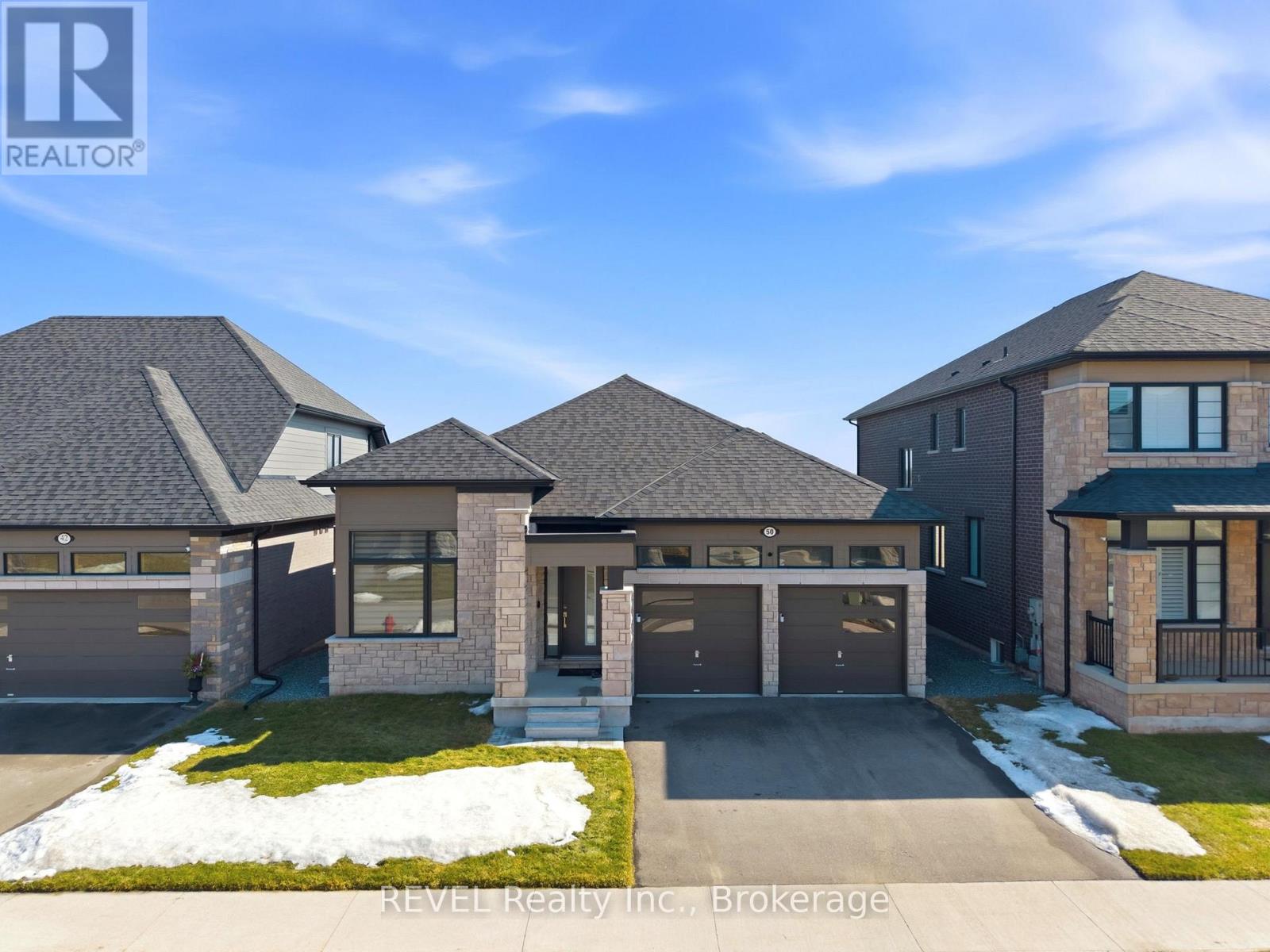 Year old, exceptional contemporary bungalow offering unobstructed, panoramic views of passing ships in the canal, situated in one of Welland's most prestigious neighbourhoods, Hunter's Pointe. With immediate access to HWY 406, and within opportunistic proximity to local amenities, schools and colleges, this 2+1 bedroom, 2 car garage, 1588sq.ft stone and brick clad bungalow offers open concept floor plan, spacious primary bedroom and ensuite privileges with direct views of the water, a full walk-out option, finished lower level with in-law capability (bedroom), ample storage, 11 foot vaulted ceilings in the great room, and a modern, granite countered kitchen with six foot island and two separate dining areas. Perfect for retirees seeking tranquil vicinities, or a new family seeking a fully finished home currently under warranty, this listing is as special as it looks. Additional highlights include 11ft ceilings in second bedroom/den, double car garage with Wifi openers, enormous backyard, backup heat pump, and paved driveway. (id:64974)
