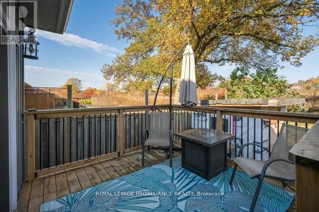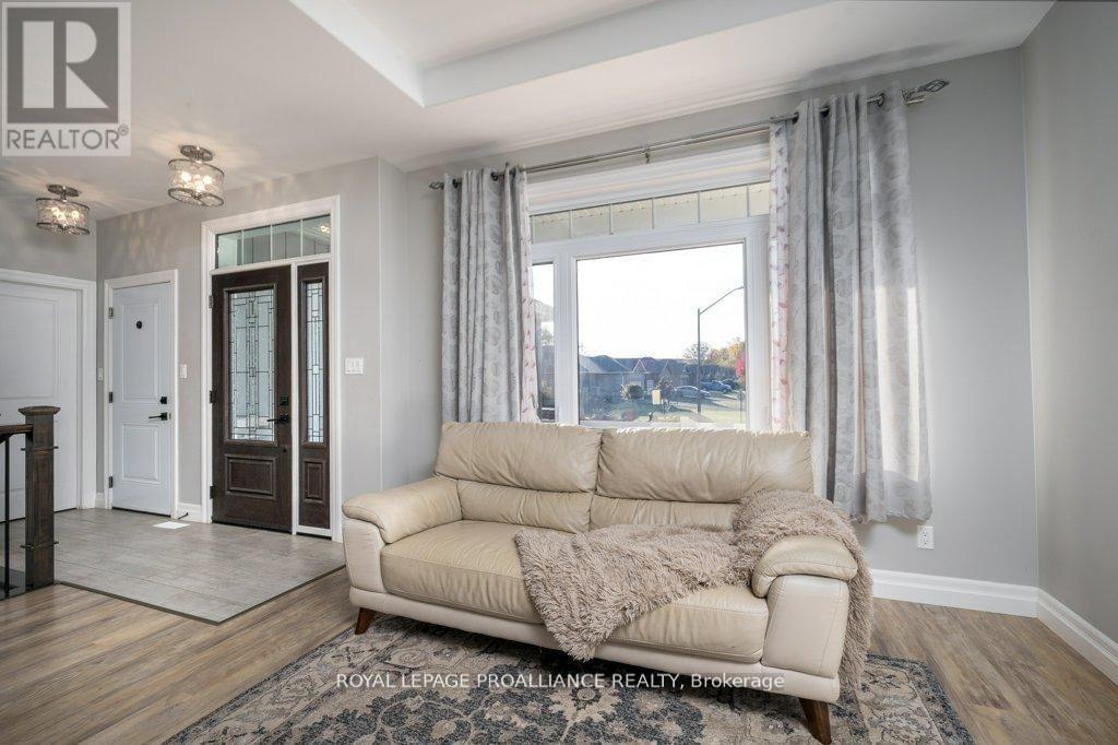 Featuring ample amounts of upgrades throughout, step into this beautifully recently built home that feels like new! This home features 9-foot ceilings on the main floor, transom windows, bright kitchen cabinetry extending to the ceiling with crown molding, under-valance & upper cabinet lighting, quartz counters, a stylish tile backsplash + range hood, stainless steel appliances, & a large functional island. The open-concept layout showcases a tray ceiling in the living room, high-end laminate flooring that flows seamlessly on both levels, with stunning floor tiles in the 3 full bathrooms & designated laundry room. The spacious dining area opens to a deck overlooking a private backyard with no neighbours behind, ideal for relaxing, catching sunsets, or taking a dip in the pool. The primary bedroom offers crown molding, a spacious walk-in closet & a 3-pc ensuite with a glass & tile shower, while the 2nd 4-pc bath on the main floor includes a six-jet Jacuzzi tub. All the bathrooms in the home feature quartz counters & additional lighting in the showers/tubs. The lower level features a cozy rec room, three additional bedrooms (all with closets), a third 4pc bathroom, plus a dedicated laundry room with utility sink, along with plenty of storage space close by. With upgraded lighting throughout, a welcoming front porch, & thoughtful design details at every turn, this move-in-ready home perfectly combines modern living & a country feel with the backyard space. Only a one min walk from a 1.5-acre park with a play structure, perfect for kids, or grandkids, +within walking distance to the Trent River Trail, parks, splash pad, beach, & downtown, this home is also under 10 mins to Hwy 401 & only 15 mins to CFB Trenton & Belleville's Quinte Mall. Resting in a sought-after neighbourhood known for its welcoming community of families, professionals, & retirees, this home offers enjoyable living you'll love. We are finding that everyone that moves to this subdivision, loves it here! (id:64974)
