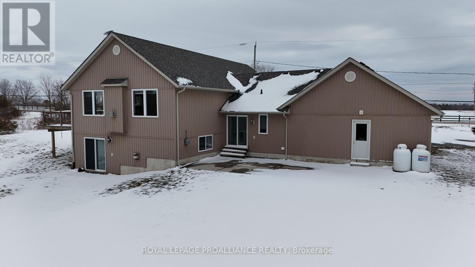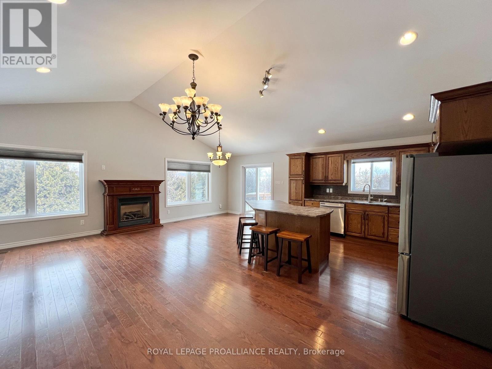 For lease: Well-maintained bungalow set on a 1-acre lot in a peaceful, private rural setting just outside Trenton. Excellent curb appeal and a convenient commuter location just minutes to Hwy 2, the 401, and CFB Trenton. This spacious home offers 3 bedrooms up, 2 down, and 2.5 baths, along with an oversized attached 2-car garage. The primary bedroom is generous in size with a vaulted ceiling and walk-in closet. Enjoy propane fireplaces on both levels and an abundance of large windows that fill the home with natural light throughout. The main floor features an open-concept kitchen with new appliances, vaulted ceilings in the great room, and a walkout to a raised deck. The finished basement includes a large rec room with kitchenette, walkout to the backyard, and direct walk-up access to the garage. Enjoy a private yard with a vegetable garden and room to roam. Propane heat and hydro in addition to rent. Detached garage not included. (id:64974)