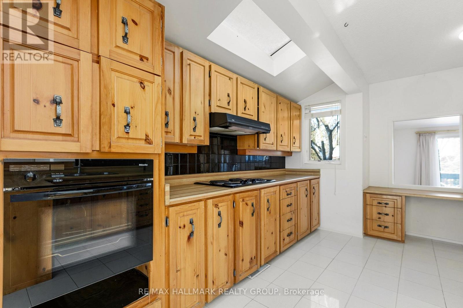 A rare mid-century architectural gem offering nearly 3,000 sq ft of living space, this sun-filled home stands out with its soaring ceilings, extensive stonework, and custom wood detailing throughout. Designed with a distinctive multi-level layout, the main living area features vaulted ceilings, skylights, and expansive windows that flood the space with natural light. A second, more intimate living room with its own wood-burning fireplace provides a cozy retreat, while the primary living space is ideal for entertaining.The dining room opens onto a balcony with views of the Gatineau Hills, creating a seamless indoor-outdoor experience. The kitchen connects easily to the main living spaces and eating area for everyday functionality. This home offers four bedrooms, including three on the upper level and a fourth bedroom on the main floor, ideal for guests or a home office. The primary suite features high ceilings, a custom walk-in closet, private ensuite, and its own balcony overlooking the hills. A convenient second-floor laundry room adds to the thoughtful layout.Custom woodwork enhances the warmth and character throughout. The finished lower level includes a bright rec room with large eye-level windows and plenty of storage space.Set on a premium corner lot, the home showcases extensive, recently completed stonework, including a beautifully designed interlock driveway with side-by-side parking and fully interlocked side grounds that enhance both function and curb appeal. Major mechanical updates include a high-efficiency furnace, central A/C, and a recently updated roof, offering peace of mind for years to come. A tandem garage with direct lower-level access completes this truly unique offering, finished with high-end aluminum-clad windows throughout and over $100,000 invested in exterior stonework.Furnace & AC 2021 (id:64974)