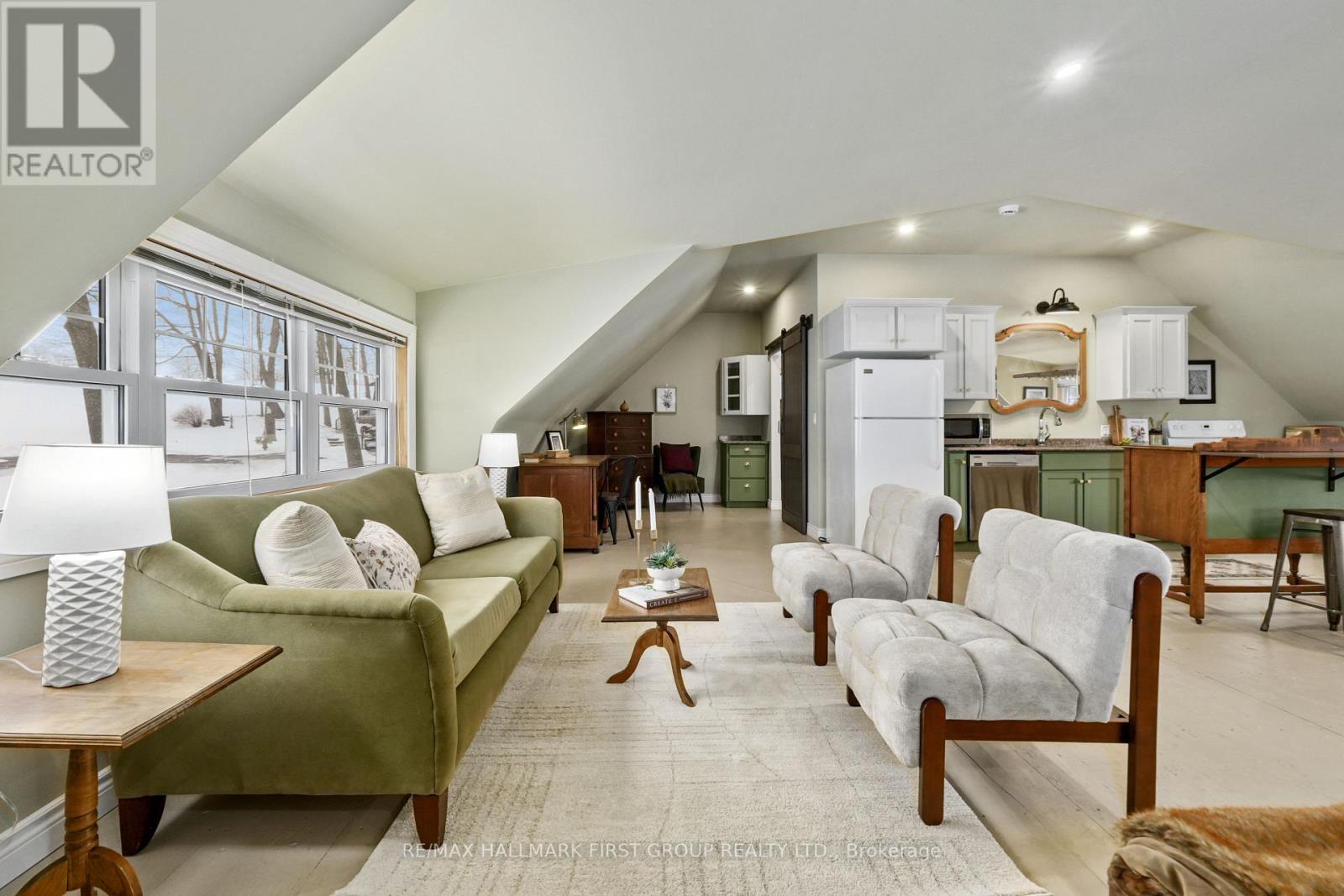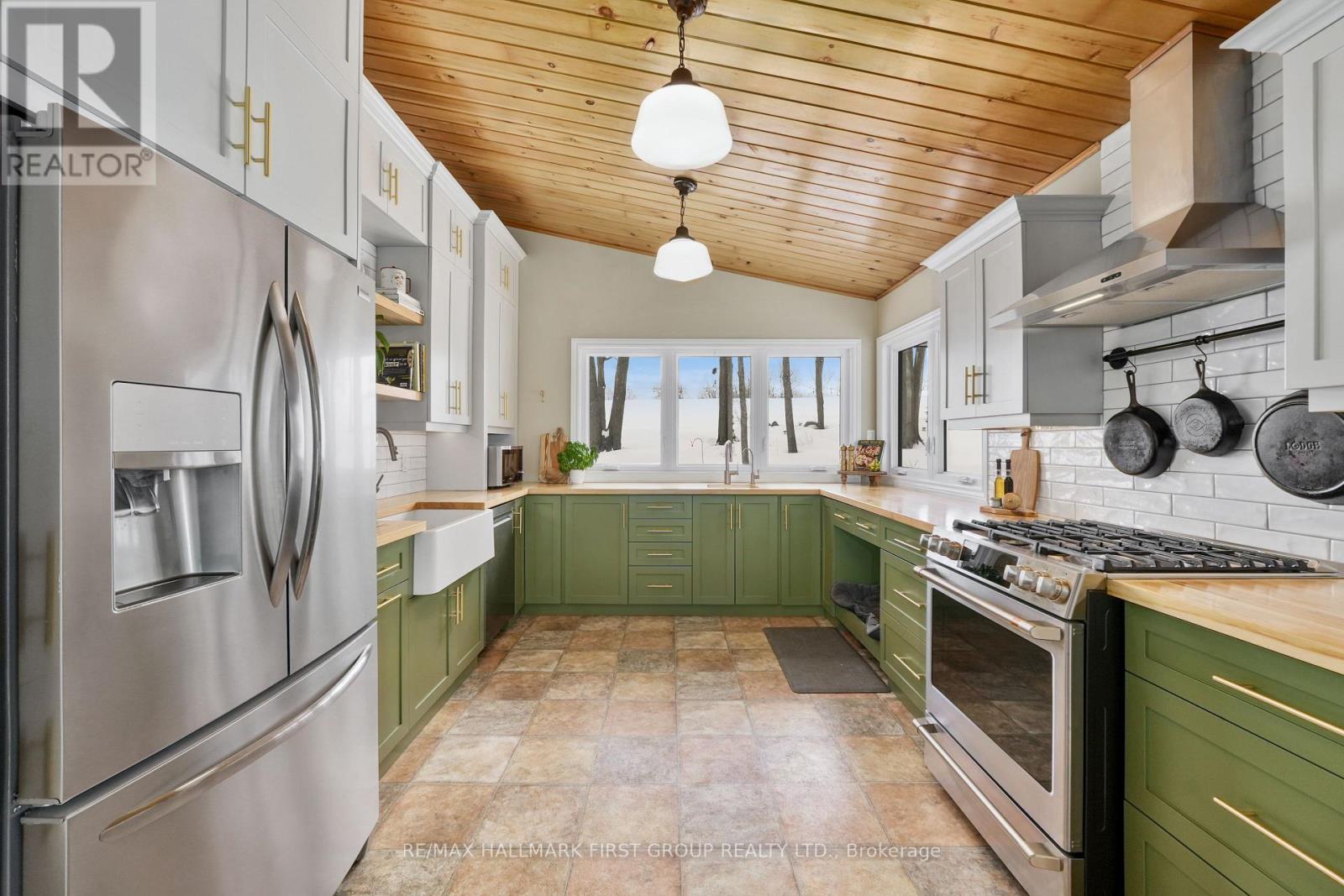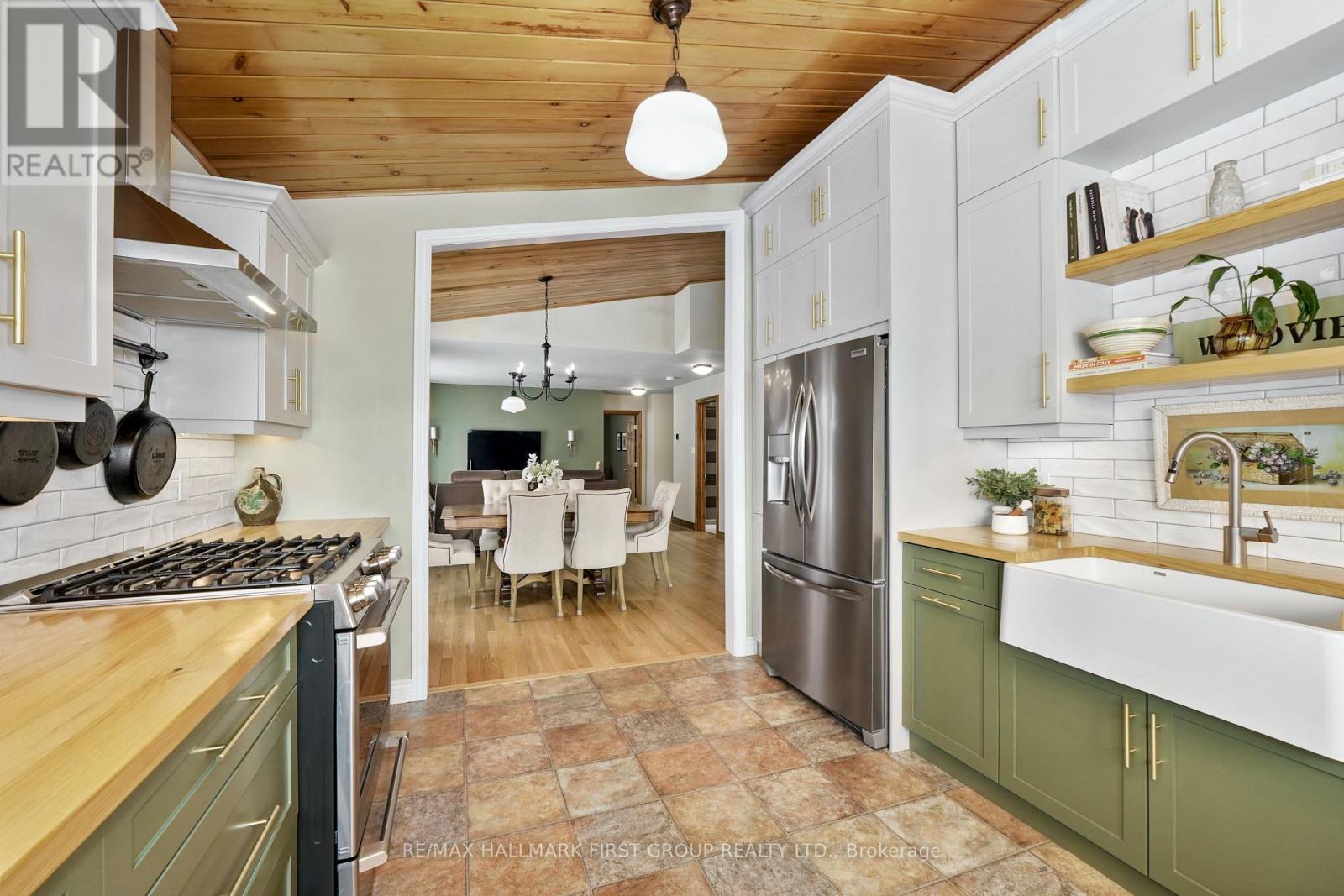 Set on 37.3 acres this exceptional property includes a striking main residence, barn, additional outbuildings, and a private in-law loft suite above a detached double garage. The main home features strong curb appeal and a dramatic entry with soaring ceilings. Living spaces are thoughtfully designed with vaulted ceilings, oversized windows, and a warm wood-clad dining ceiling. A built-in drinks and coffee station enhances everyday living and entertaining.The kitchen is a true centrepiece, offering butcher block countertops, stainless steel appliances, apron-front sink, prep sink, 9' custom cabinetry, open shelving, subway tile backsplash, and pass-through windows to an outdoor serving counter. A cozy yet sophisticated family room includes a custom propane fireplace with raw steel surround, open shelving, and a walkout to outdoor living areas. The main-floor primary suite is a peaceful retreat with sliding glass doors, scenic views, and a spa-like bathroom with walk-in shower and soaking tub. A second bedroom completes the main level. The lower level adds versatility with a office or gym, cold storage or wine cellar, recreation room with fireplace and walkout, an additional bedroom, and a full bathroom with dedicated vanity area.Outdoor living is designed for year-round enjoyment with a large rear deck featuring a dry kitchen and dual propane hookups, a generous fire pit area, and mature trees for privacy. Above the detached double garage, which includes a workshop and propane furnace, is a beautifully finished in-law suite with vaulted ceilings, propane fireplace, heat pump with air conditioning, open living and dining space, full kitchen with island, sleeping area, office nook, bathroom, and laundry. Additional features include a rewired barn with insulated tack room, outbuilding, electrical fenced pastures, workable land, and a standby generator servicing the main house, garage, and loft. A rare opportunity to own a luxurious, fully equipped country estate. (id:64974)