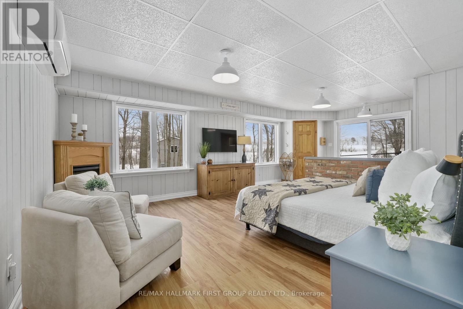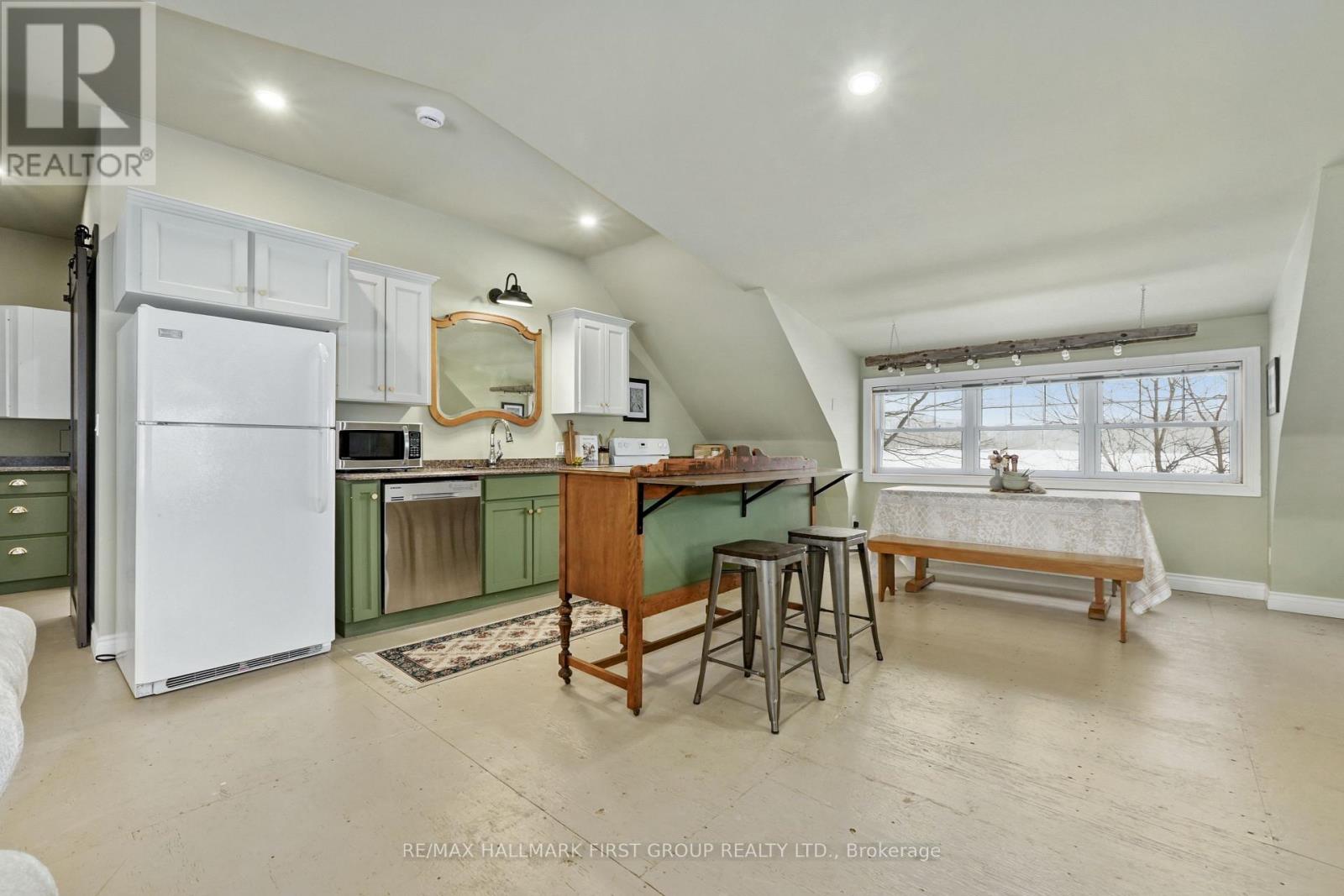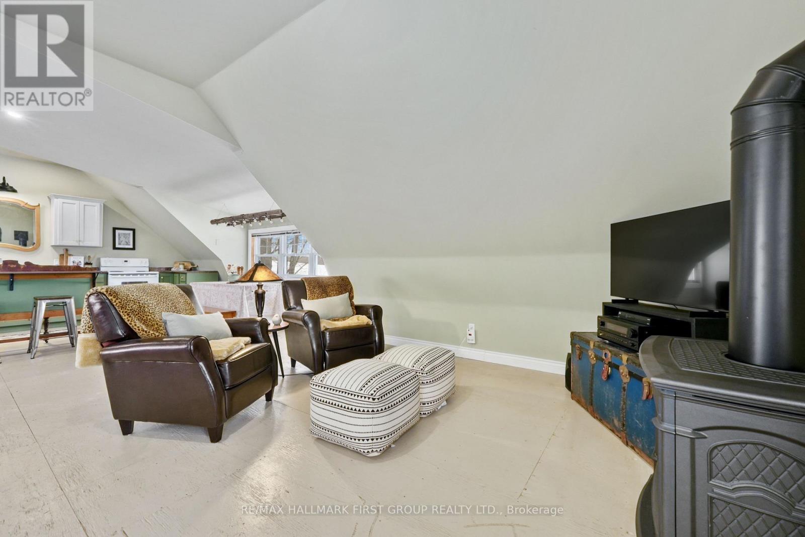 Set on 37.3 acres this exceptional property includes a striking main residence, barn, additional outbuildings, and a private in-law loft suite above a detached double garage. The main home features strong curb appeal and a dramatic entry with soaring ceilings. Living spaces are thoughtfully designed with vaulted ceilings, oversized windows, and a warm wood-clad dining ceiling. A built-in drinks and coffee station enhances everyday living and entertaining.The kitchen is a true centrepiece, offering butcher block countertops, stainless steel appliances, apron-front sink, prep sink, 9' custom cabinetry, open shelving, subway tile backsplash, and pass-through windows to an outdoor serving counter. A cozy yet sophisticated family room includes a custom propane fireplace with raw steel surround, open shelving, and a walkout to outdoor living areas. The main-floor primary suite is a peaceful retreat with sliding glass doors, scenic views, and a spa-like bathroom with walk-in shower and soaking tub. A second bedroom completes the main level. The lower level adds versatility with a office or gym, cold storage or wine cellar, recreation room with fireplace and walkout, an additional bedroom, and a full bathroom with dedicated vanity area.Outdoor living is designed for year-round enjoyment with a large rear deck featuring a dry kitchen and dual propane hookups, a generous fire pit area, and mature trees for privacy. Above the detached double garage, which includes a workshop and propane furnace, is a beautifully finished in-law suite with vaulted ceilings, propane fireplace, heat pump with air conditioning, open living and dining space, full kitchen with island, sleeping area, office nook, bathroom, and laundry. Additional features include a rewired barn with insulated tack room, outbuilding, electrical fenced pastures, workable land, and a standby generator servicing the main house, garage, and loft. A rare opportunity to own a luxurious, fully equipped country estate. (id:64974)