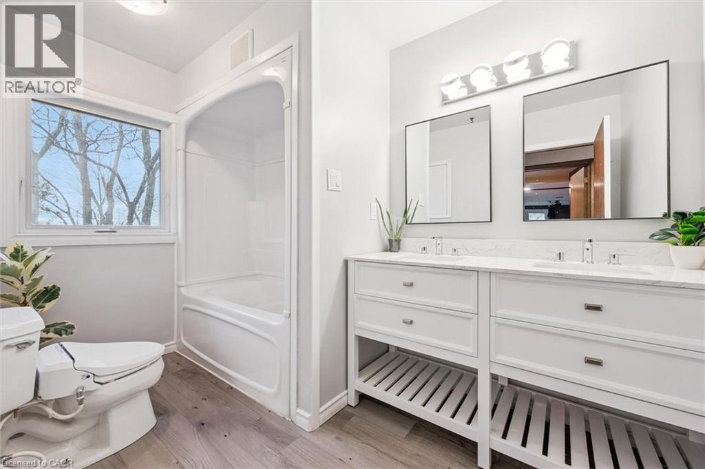 500 Watson Pkwy S is a versatile 3+1 bdrm home W/over 3100sqft of living space W/perfect layout for main floor in-law or income suite W/its own private entrance! This home offers best of both worlds: peaceful country-style living with scenic views while being mins to UofG, Stone Rd Mall, groceries, schools & trails! Ideal fit for multigenerational families, blended households or savvy buyers looking for flexible living arrangements & rental potential. Step inside to living room W/rich hardwood, picture windows & 2 skylights. Adjacent dining area W/cork flooring opens to kitchen W/panoramic windows, custom wood cabinetry, butcher block counters, farmhouse sink & sleek panel-ready fridge that blends seamlessly into the design. For entertainers & chefs the add'l prep kitchen provides storage, beverage fridge & 2nd sink-perfect for hosting holidays or everyday life. Sitting nook leads to back patio-perfect spot to enjoy morning coffee while listening to the birds. On opposite wing, 2nd living room W/fireplace & B/I bench seating sets the stage for family evenings. This wing also offers kitchenette, renovated 4pc bath W/soaker tub, W/I shower & bdrm with W/I closet-ideal for in-law suite or private guest quarters. Upstairs the primary bdrm offers large windows, private balcony & W/I closet W/custom organizers. Off the primary is flexible office space or dressing area & massive bonus room-currently set up as theatre & games room with 3-way fireplace, B/I speakers & projector system. There is another bdrm & 5pc bath W/dual sinks & tub/shower. Finished bsmt W/4th bdrm, 3pc bath, sauna & storage. Outside the large yard has multiple entertaining areas: back patio, private side deck, greenhouse & shed. With triple-wide driveway + add'l driveway there’s more than enough room for guests, work vehicles, trailers & toys. Can easily park 10+ cars! Mins to Starkey Hill & Smith Property Loop for weekend hikes & bike rides. A warm inviting space with room to grow & space for everyone! (id:64974)
