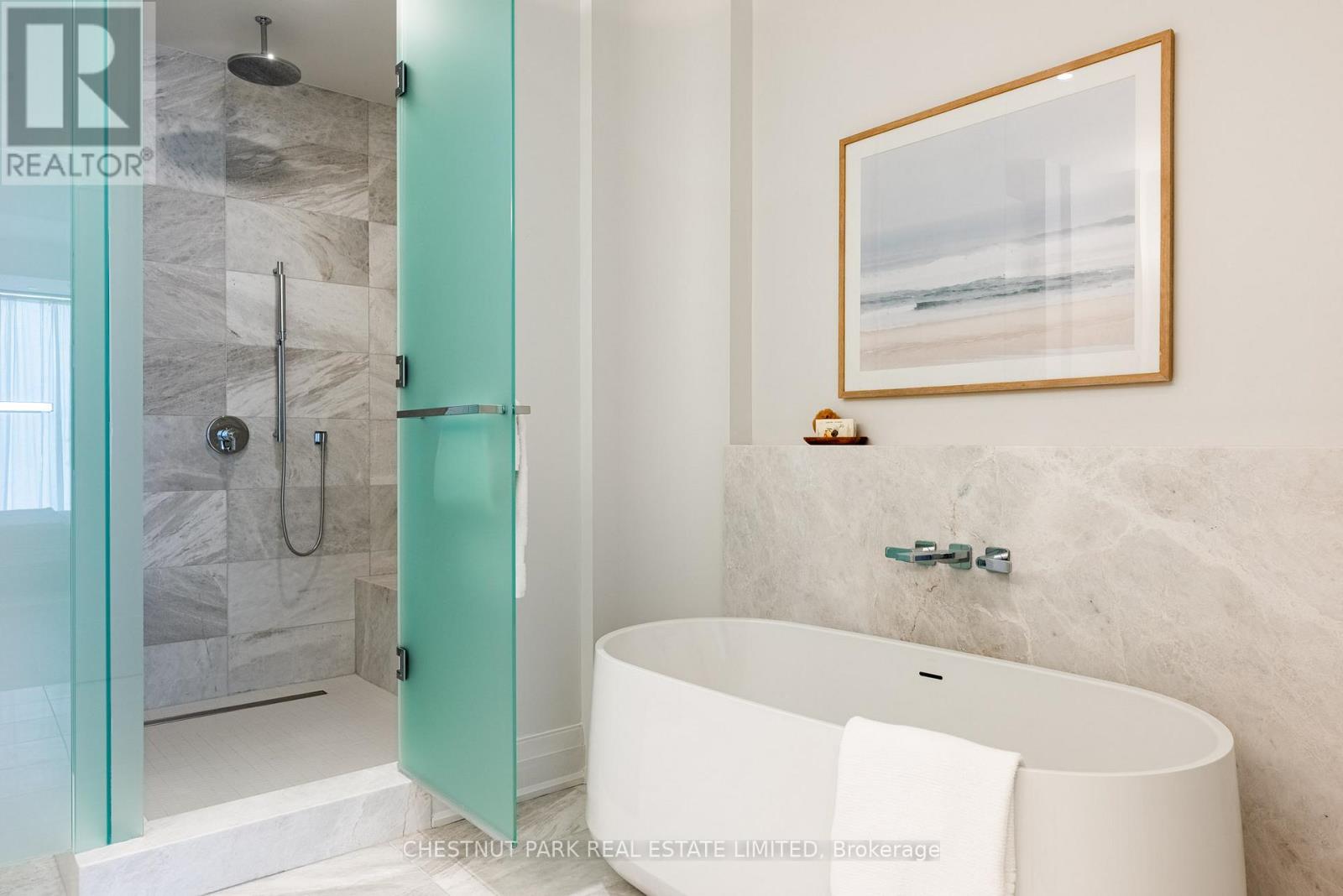 An exceptional opportunity in one of Toronto's newest luxury boutique condominium offerings. Located where the Annex meets Yorkville, 10 Prince Arthur is an impressive new residence designed by Richard Wengle with interiors by Gluckstein. Be the first to live in this brand-new, never-lived-in 2-bedroom, 2.5-bathroom suite with a desirable split-bedroom layout. The west-facing exposure provides beautiful afternoon light and opens to a private balcony with gas connections for summer BBQs. Elegant finishes include 10-ft ceilings, wide plank white oak floors, a Cameo kitchen with marble and Caesarstone counters, and Wolf & Sub-Zero appliances. The spacious primary suite features a walk-in closet and a marble ensuite with heated floors, walk-in shower and freestanding Kohler soaker tub. Includes 2 underground parking spaces with valet option and 2 side-by-side lockers. This is a boutique 25-suite building with 24-hour concierge, fitness centre, resident's lounge with catering kitchen, dog wash, and valet service. Perfectly positioned on a quiet, tree-lined street, yet just moments from Yorkville's celebrated shops, restaurants, and cafés. (id:64974)