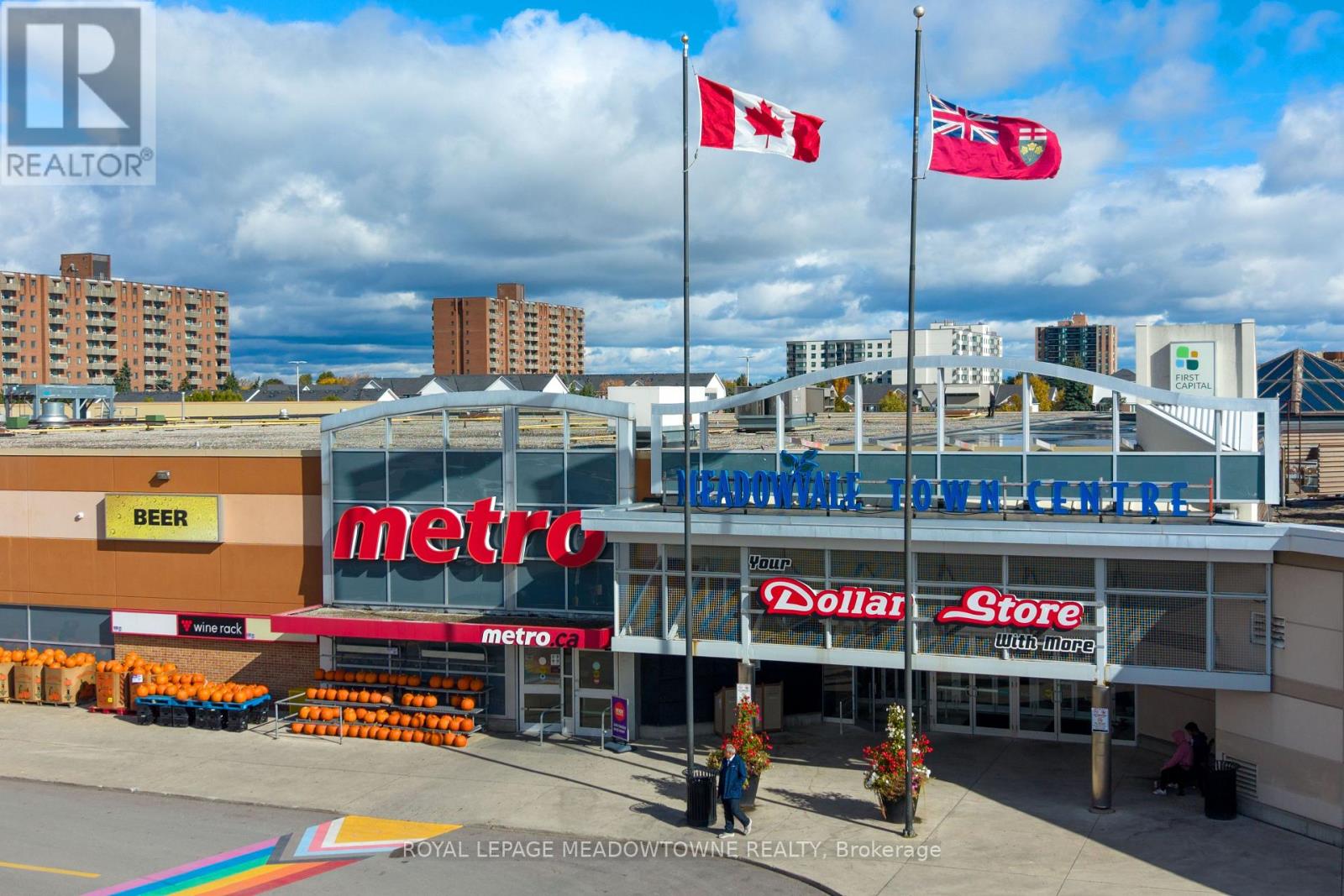 Client RemarksThis beautiful 2-bedroom condo offers an exceptional living experience in the heart of Meadowvale. This bright and spacious unit features a thoughtfully designed kitchen, with stainless steel appliances, (including a brand new dishwasher) perfect for cooking and entertaining. The large living room is ideal for relaxation and gatherings, with an abundance of natural light pouring in through the newer windows and balcony door. Enjoy the benefits of two generous bedrooms and a well appointed bathroom. With an owned parking spot, convenience is key, making your everyday life even more seamless. This well-maintained building provides a range of amenities, including a heated outdoor pool, fitness room, party room and guest room, and even a laundry room when you need larger commercial machines for those large items that are just too big for the ensuite laundry. The location is unbeatable! Situated directly across from Meadowvale Town Centre, you're steps away from shops, restaurants, and services. Mississauga Transit and the GO Bus are right at your doorstep, making commuting a breeze. Major highways, including the 401, 403, and 407 are just minutes away, providing quick access to the rest of the city and beyond. Enjoy outdoor adventures just kitty-corner to Lake Aquitaine, or take a short stroll to the newly renovated Meadowvale Community Centre with its incredible range of fitness, recreation, and leisure programs. You'll also be close to the Meadowvale Theatre, great schools, trails, and parks, all within a family-friendly, community-oriented neighbourhood. Don't miss this opportunity to own a unit in one of Meadowvale's most desirable buildings. Whether you're a first-time buyer, downsizer, or savvy investor, this condo truly has it all. Schedule your showing today. Amazing scores: Walkscore 86, Schools 84, Parks 100, Transit 85. All inclusive maintenance fees! (id:64974)