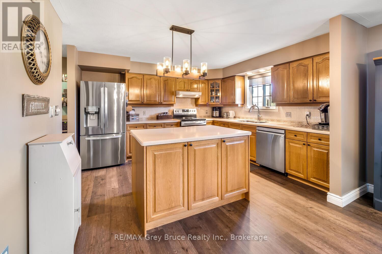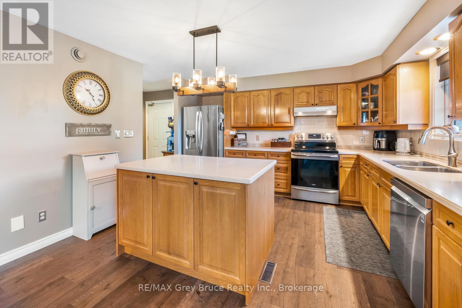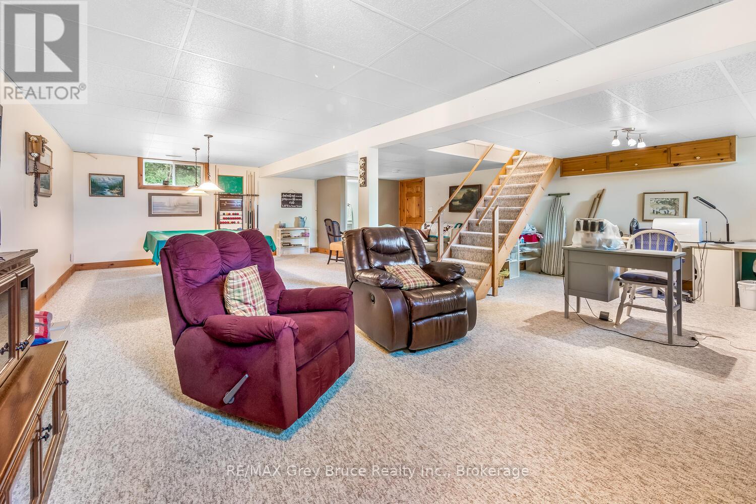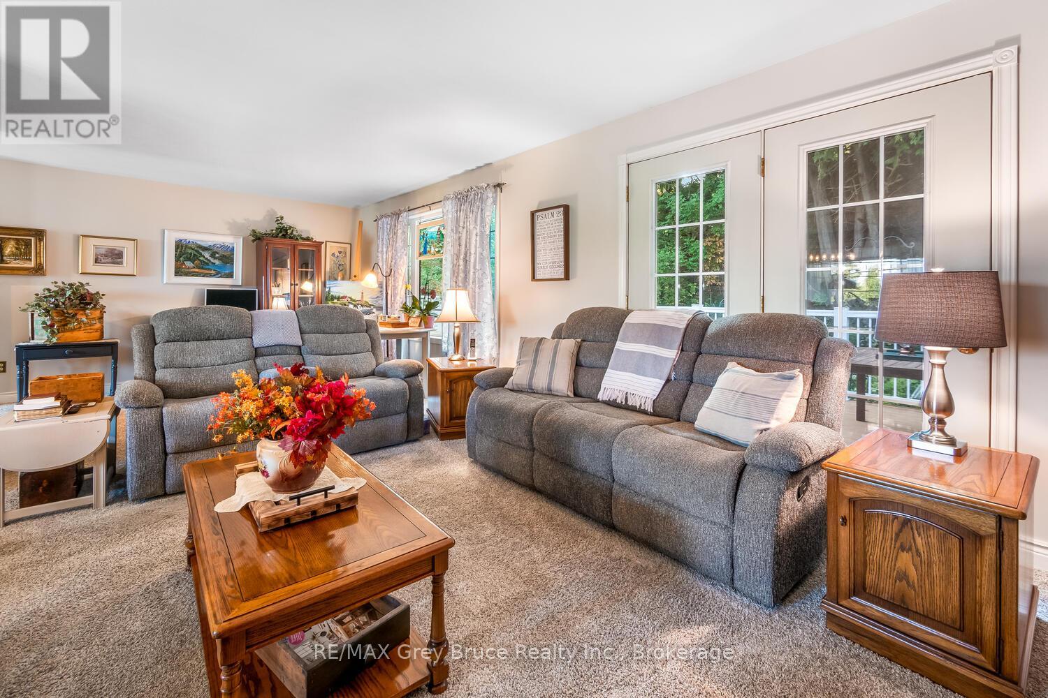 Welcome to this spacious and beautifully maintained 3-bedroom, 4-bathroom bungalow set on nearly an acre along sought-after Grey Road 1, just moments from public water access to stunning Georgian Bay. Offering over 2,400 sq ft of living space, this property delivers the perfect combination of comfort, privacy, and location - in an area people are proud to call home. Inside, you'll find a bright open-concept layout designed for both everyday living and entertaining. The large kitchen with island anchors the home, while updated flooring, natural gas heating, and central air provide modern efficiency and year-round comfort. The partially finished full basement offers flexibility for a rec room, home gym, media space, or additional living area - ideal for growing families or hosting guests. Step outside to a generous back deck surrounded by mature trees, where you can unwind, entertain, or simply enjoy the peaceful setting. With comfortable privacy and even a partial view of Georgian Bay, you'll appreciate the sense of space and connection to nature that defines this location. Living here means embracing a four-season lifestyle. Just a short stroll brings you to the shores of Georgian Bay for swimming, kayaking, paddleboarding, fishing, or simply taking in world-class sunsets. You're centrally located between Owen Sound and Wiarton, giving you convenient access to shopping, dining, schools, healthcare, and everyday amenities - while still enjoying the tranquility of country living. Nearby trails, boating, snowmobiling routes, and scenic drives make this an outdoor enthusiast's dream. This is more than just a home - it's an opportunity to enjoy space, fresh air, community, and the natural beauty that makes this stretch of Georgian Bay so desirable. A rare blend of comfort, lifestyle, and location - this one is not to be missed. (id:64974)