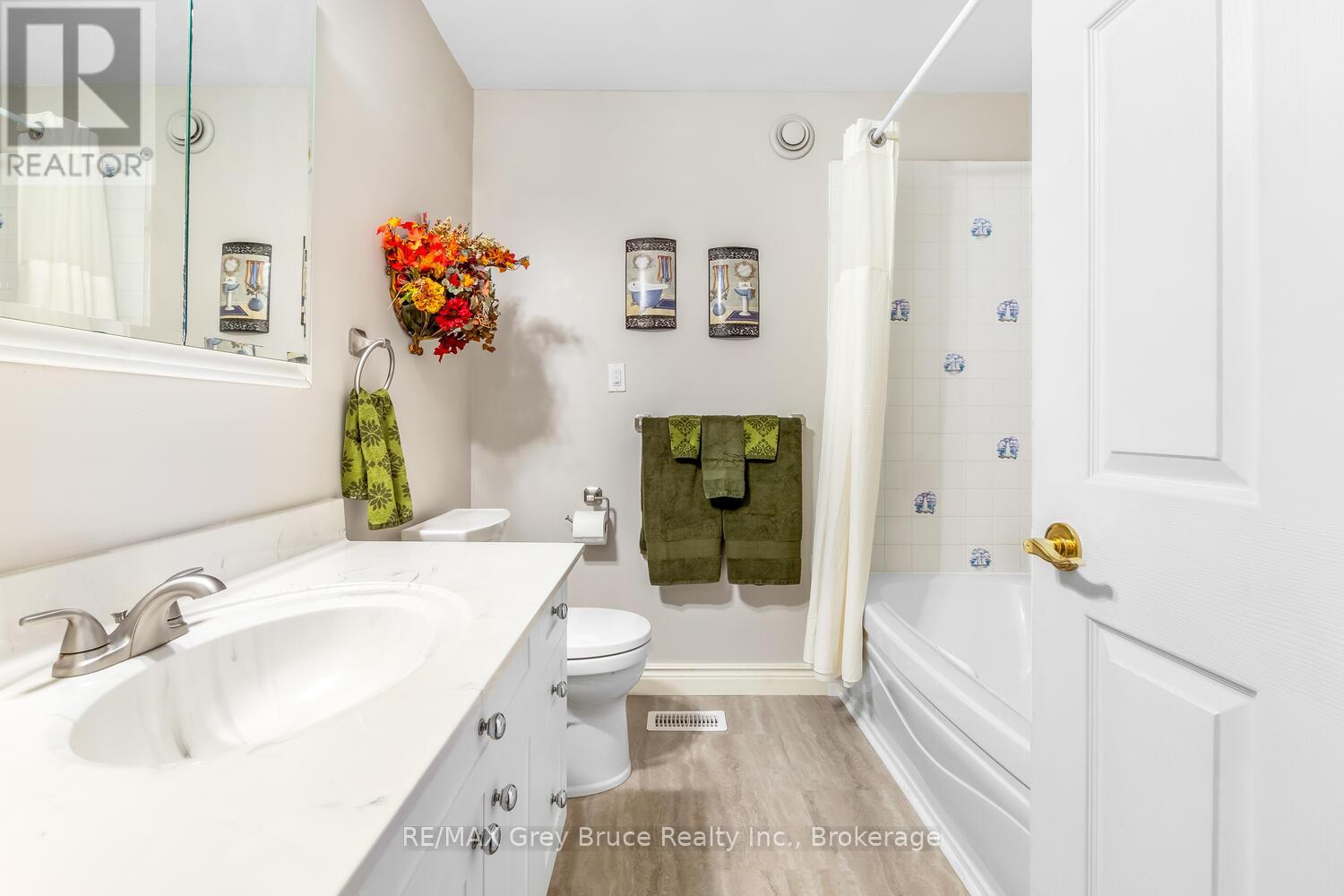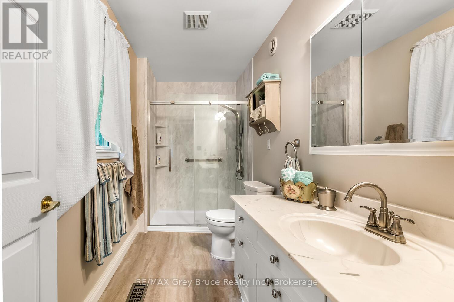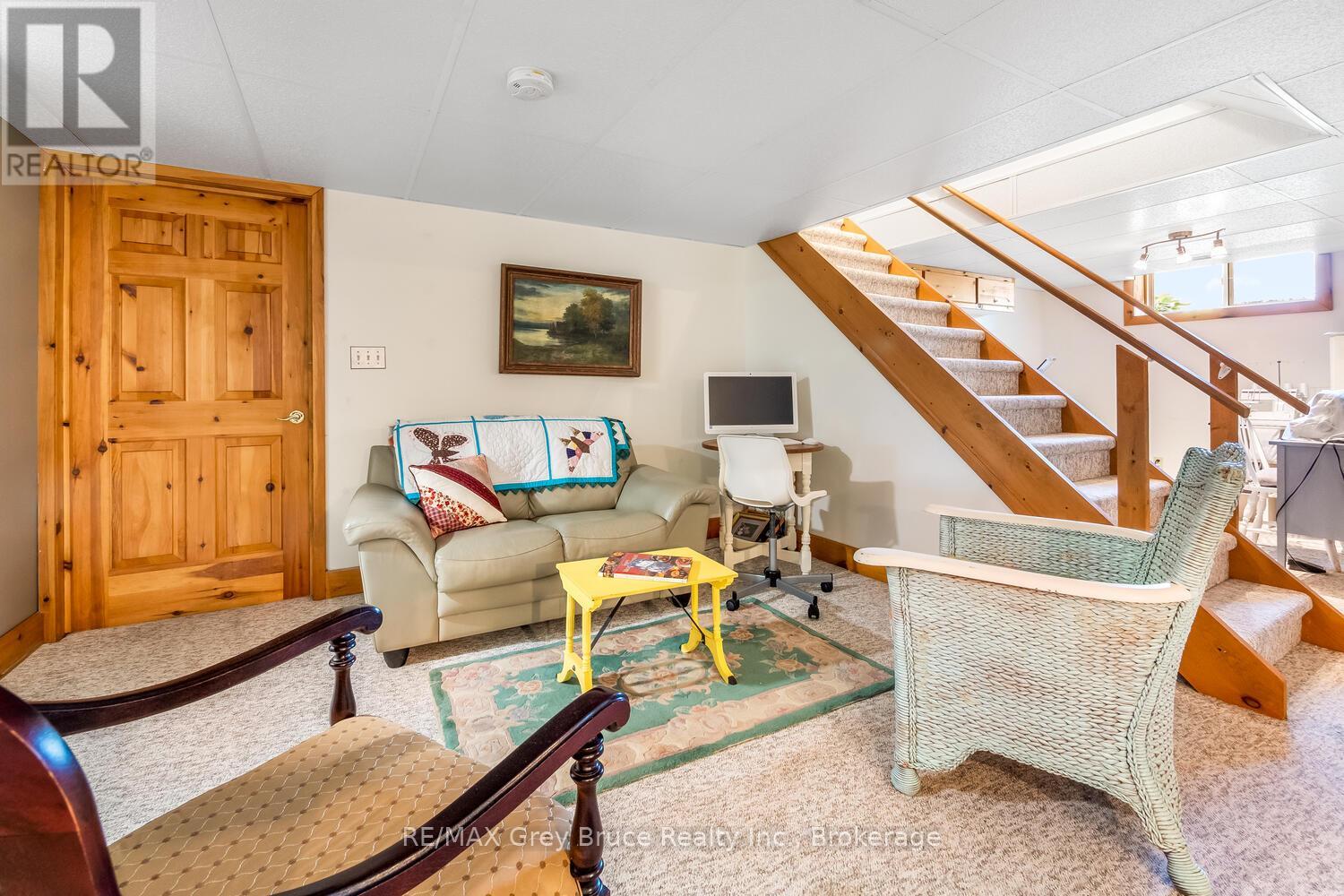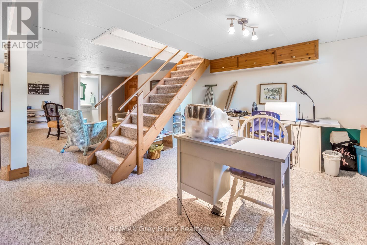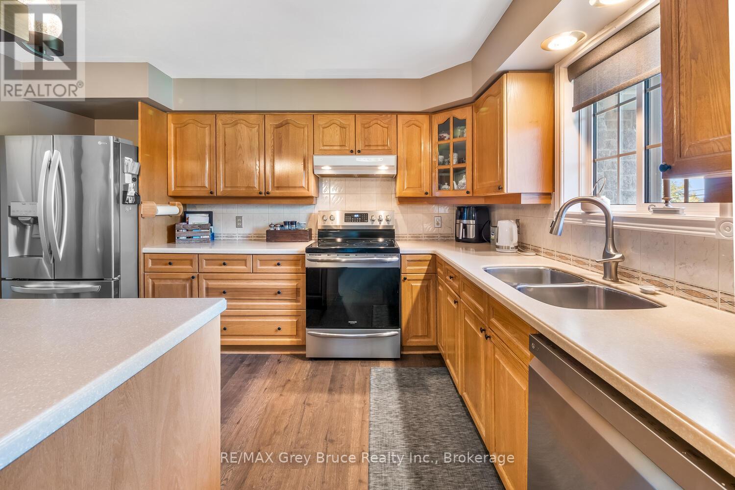 Welcome to this spacious and beautifully maintained 3-bedroom, 4-bathroom bungalow set on nearly an acre along sought-after Grey Road 1, just moments from public water access to stunning Georgian Bay. Offering over 2,400 sq ft of living space, this property delivers the perfect combination of comfort, privacy, and location - in an area people are proud to call home. Inside, you'll find a bright open-concept layout designed for both everyday living and entertaining. The large kitchen with island anchors the home, while updated flooring, natural gas heating, and central air provide modern efficiency and year-round comfort. The partially finished full basement offers flexibility for a rec room, home gym, media space, or additional living area - ideal for growing families or hosting guests. Step outside to a generous back deck surrounded by mature trees, where you can unwind, entertain, or simply enjoy the peaceful setting. With comfortable privacy and even a partial view of Georgian Bay, you'll appreciate the sense of space and connection to nature that defines this location. Living here means embracing a four-season lifestyle. Just a short stroll brings you to the shores of Georgian Bay for swimming, kayaking, paddleboarding, fishing, or simply taking in world-class sunsets. You're centrally located between Owen Sound and Wiarton, giving you convenient access to shopping, dining, schools, healthcare, and everyday amenities - while still enjoying the tranquility of country living. Nearby trails, boating, snowmobiling routes, and scenic drives make this an outdoor enthusiast's dream. This is more than just a home - it's an opportunity to enjoy space, fresh air, community, and the natural beauty that makes this stretch of Georgian Bay so desirable. A rare blend of comfort, lifestyle, and location - this one is not to be missed. (id:64974)
