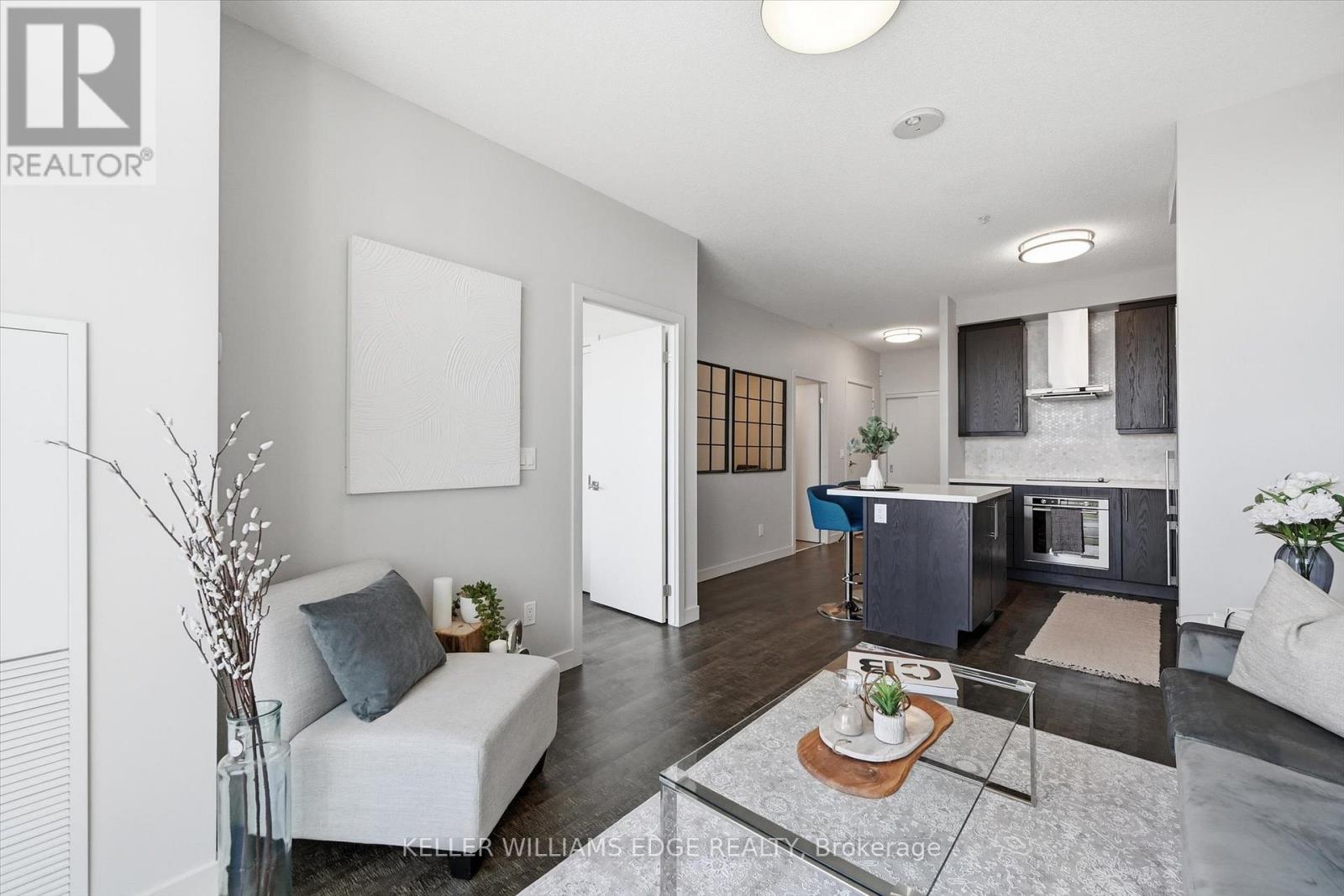 This beautiful 1 Bedroom + 1 Den suite is a true gem, just steps away from Clarkson GO Station. With its move-in ready condition and impressive features, including 9' ceilings, hardwood floors, and floor-to-ceiling windows, its designed for comfort and style. The open concept kitchen, complete with a breakfast bar, overlooks the spacious living room area.The primary bedroom with double closet and ample natural light. The ensuite bathroom offers a separate shower and bathtub for your relaxation. The Den is a perfect space for a home office. This suite provides a modern, welcoming atmosphere. Amenities in this luxurious building, including a 24-hour concierge, fitness room, pool, sauna, party room, theatre, games room, guest suite, car wash, pet grooming services, and more offering a truly grand living experience. (id:64974)