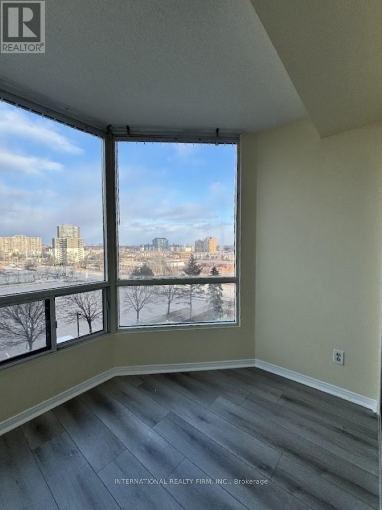Newly renovated condo featuring unobstructed, breathtaking easterly views of the Toronto skyline and Lake Ontario. The entire home is freshly painted and upgraded with premium vinyl flooring throughout. Enjoy a modern kitchen with new lower cabinets and counters, complemented by updated appliances. The bathroom has been fully refreshed with a new vanity, new toilet, and new tub & enclosure. Convenient ensuite of high-end washer and dryer (3 year new). Offering approximately 900 sq. ft. of living space, this home includes 2 bedrooms plus a versatile sunroom/den. Steps to Cooksville GO Station and the upcoming Hazel McCallion LRT. Close to major Highway 403 & QEW. Situated in a well-maintained building with a safe & friendly community of young families and professionals. This property delivers exceptional value for size and lifestyle near Square One Shopping Centre and other City Centre amenities and attractions. (id:64974)