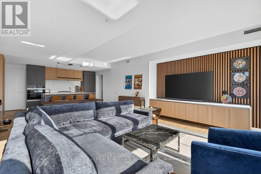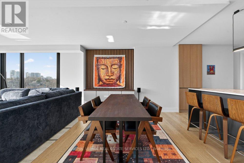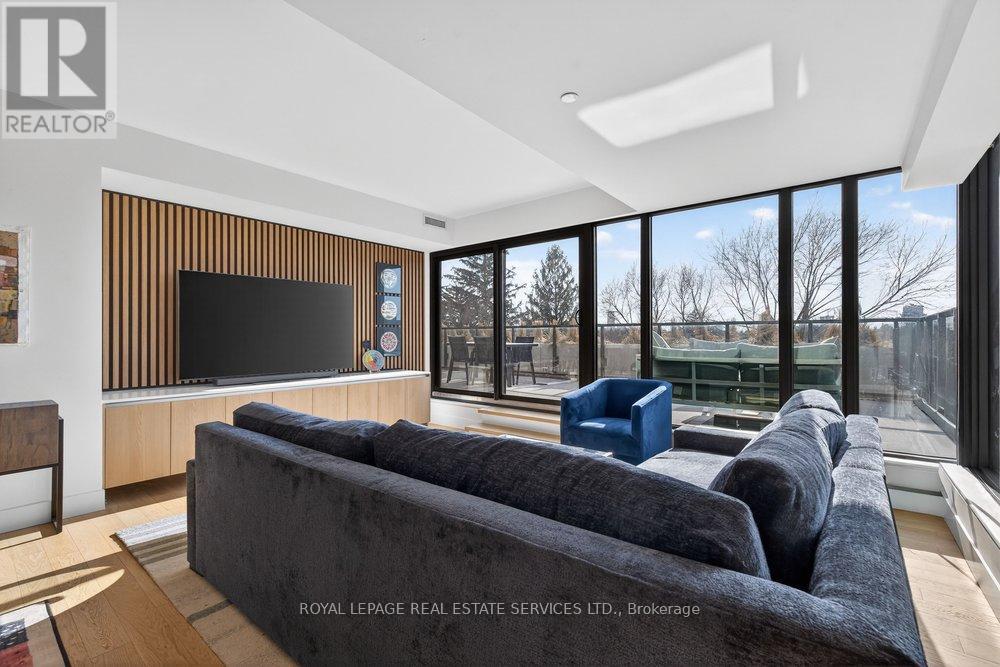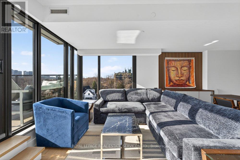 An exceptional opportunity to reside in a refined boutique condominium, this elegantly appointed corner suite offers 2 bedrooms plus a den and 2 full bathrooms. Beautifully furnished with curated pieces, the residence showcases floor-to-ceiling windows that bathe the interiors in natural light, complemented by high-end finishes and premium appliances throughout. A rare highlight, the expansive 456 sq ft southwest-facing terrace provides a seamless extension of the living space-ideal for sophisticated entertaining or tranquil outdoor retreat. Perfectly positioned between South Leaside and Davisville Village, just moments from Midtown's finest shops, artisanal bakeries, and acclaimed restaurants. Effortless access to public transit and includes parking. (id:64974)