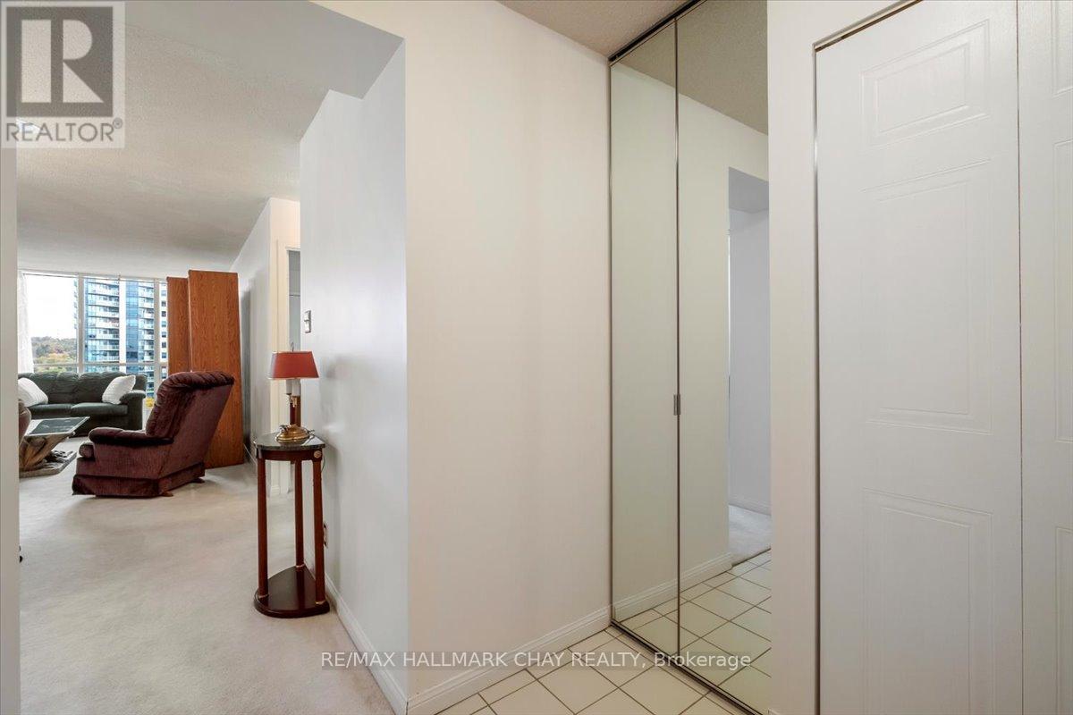 Welcome to waterfront living at its finest in the sought-after Marina Bay community in Barrie. This spacious 1-bedroom suite offers breathtaking views over Kempenfelt Bay and is a rare opportunity that includes a large private storage locker - perfect for seasonal items, sports gear, or extra belongings. Floor-to-ceiling windows fill the open-concept living and dining area with natural light while showcasing panoramic water views. The generous layout offers flexibility for entertaining or relaxing, with a seamless walk-out to your private balcony where you can enjoy morning sunrises, park scenery, and the tranquil waterfront setting. The kitchen features abundant cabinetry and counter space, ideal for everyday living or hosting guests. The spacious primary bedroom includes a large walk-in closet, providing both comfort and functionality. Additional highlights include underground parking and access to exceptional building amenities such as an indoor pool, sauna, hot tub, fitness room, party room, and games room. Step outside and you're moments from waterfront walking trails, parks, and vibrant local attractions - truly a lifestyle location. This pet-friendly building also offers a welcoming community atmosphere with plenty of social activities to enjoy. Whether you're a first-time buyer, downsizer, or investor, this is a rare opportunity to own a waterfront suite with incredible views, valuable storage, and resort-style amenities in one of Barrie's most desirable locations. Steps to the Go Train, public transit, shopping, and minutes to Hwy 400. (id:64974)