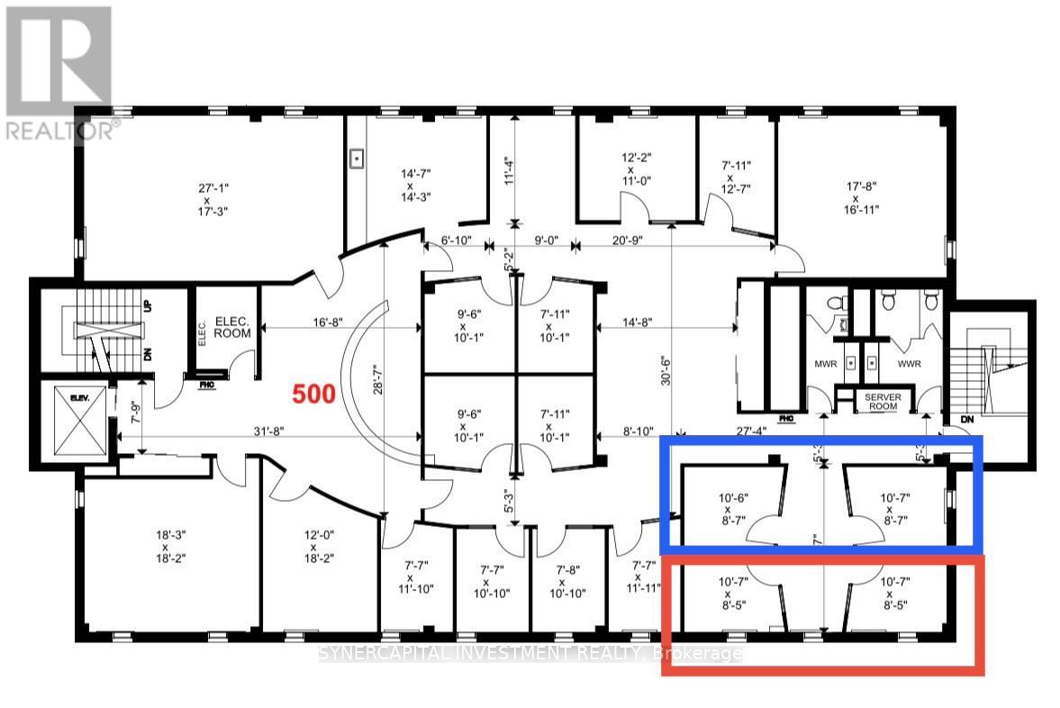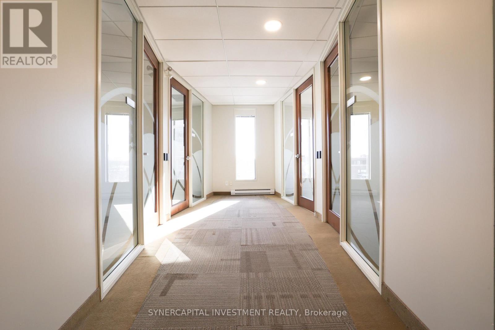 Rarely available opportunity to rent a pair of 2 corner, top floor, executive-quality, generous sized, furnished offices in beautifully-appointed space. Offices are located in a private corner of a large, top-floor office home to only one other business (the landlord, which is a property management and real estate brokerage with small and friendly staff). Office space is fully secure via FOB entry (both the general office and also each of the 4 individual offices for rent). Full-time receptionist to greet your clients / accept mail, and access to amenities such as top-floor Seminar Room (seats 30 comfortably), Board Room (seats 10 comfortably), more intimate Signing Room (seats 6 comfortably) as well as staff kitchenette. If you are looking for reception-serviced office space with access to amenities, but prefer upscale professional finishes, secure offices you can make your own, better amenities shared between fewer tenants, and more convincingly dedicated reception services, then the 5th floor of 1376 Bank is an excellent opportunity for your business. Rent listed is for 2/4 available offices. The two North offices (outlined in Blue on the floor plan in listing images) are $1700 (total, all-incl, for both) and the two South offices (outlined in Red on the floor plan in listing images) are $1800. Excellent location close to 417, Riverside Drive,Bank Street, and Billings Bridge shopping plaza. Building is home to professional tenants such as law offices, mental wellness practitioners, not-for-profit, technology, etc. One underground parking available for $165/mo + HST; 3x visitors spaces in surface lot w 60-min time limit. (id:64974)