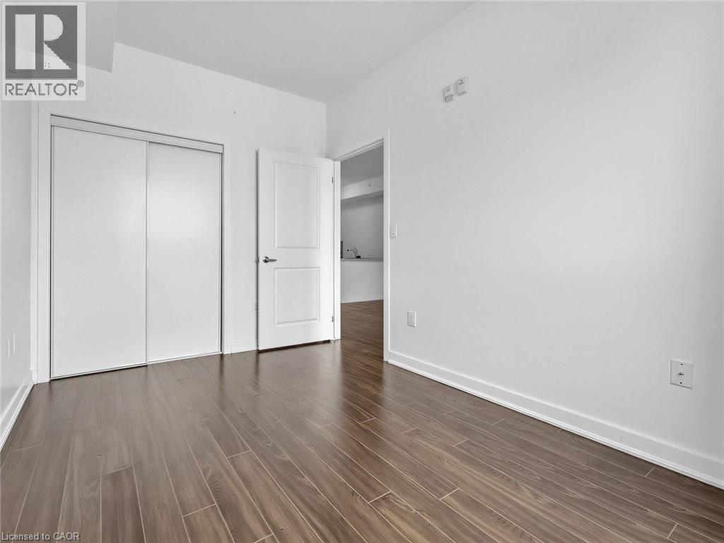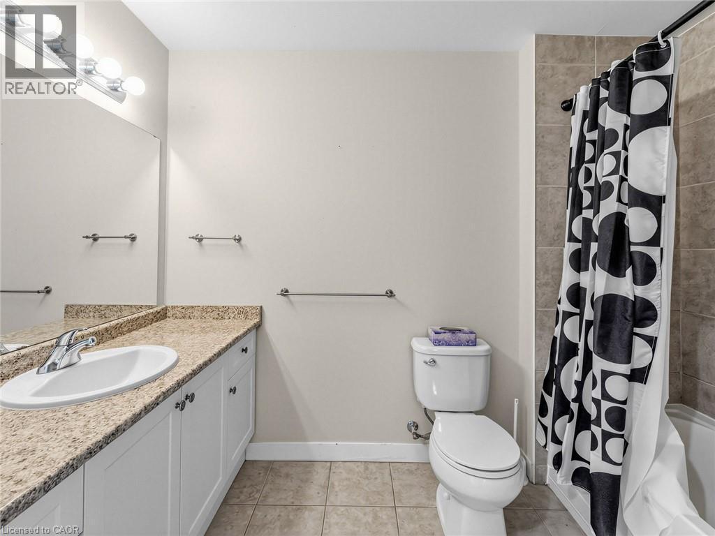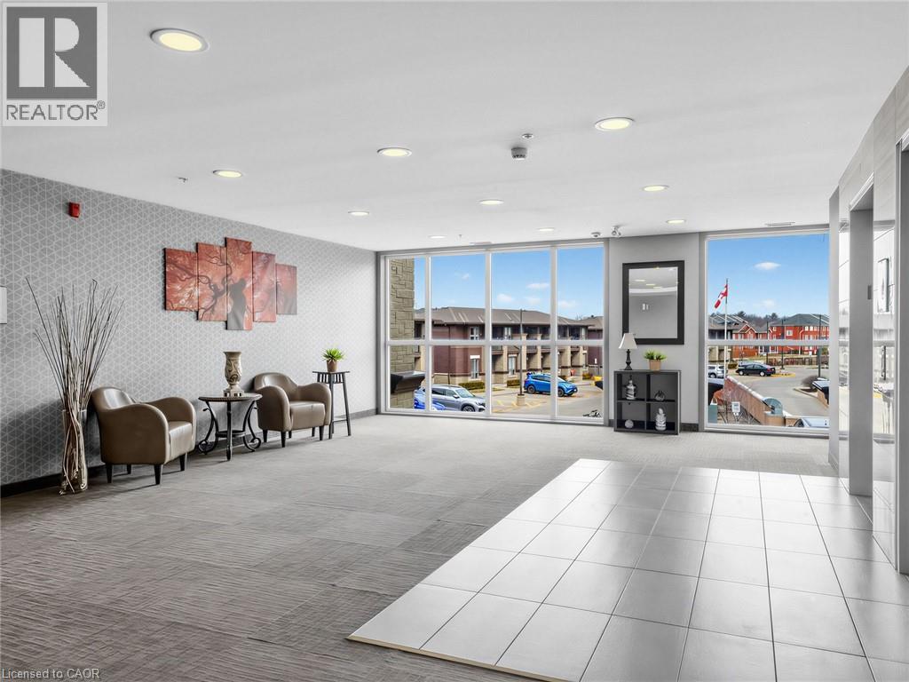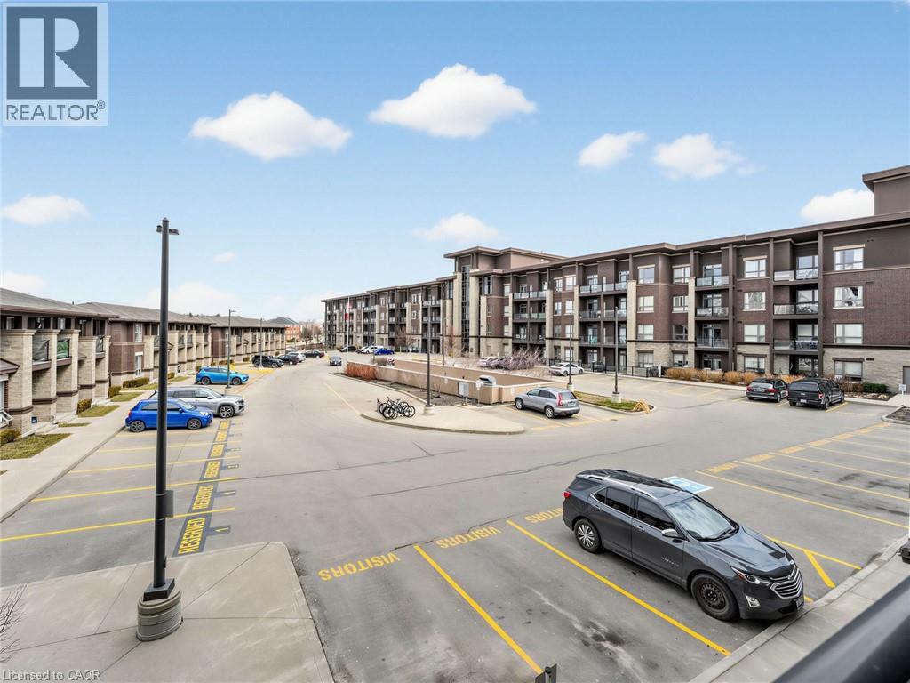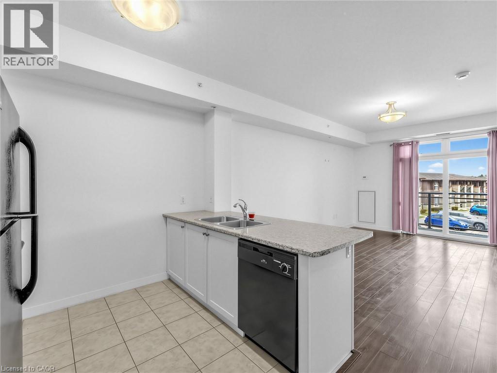 Sun-filled 1-bedroom, 1-bathroom suite at Vibe Condominium, ideally located at the desirable intersection of Appleby Line and Corporate Drive in Burlington. This bright east-facing unit offers an open-concept layout with 9-foot ceilings and engineered hardwood flooring throughout. The modern kitchen overlooks the combined living and dining area, which extends to a spacious balcony-perfect for relaxing or entertaining. The suite features a generously sized 4-piece bathroom and convenient in-suite stacked washer and dryer. Included are one oversized parking space located close to the elevator and one locker. Situated in a prime Burlington location close to shops, restaurants, schools, and all essential amenities, with easy access to the QEW, 403, 407, and major routes-ideal for comfortable living and easy commuting. Enjoy premium building amenities including a rooftop patio with BBQs, fully equipped fitness centre, party room, and visitor parking. (id:64974)