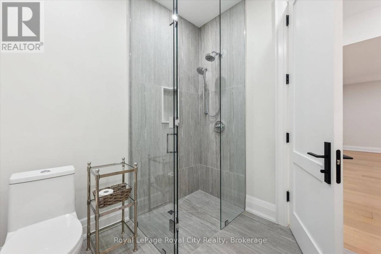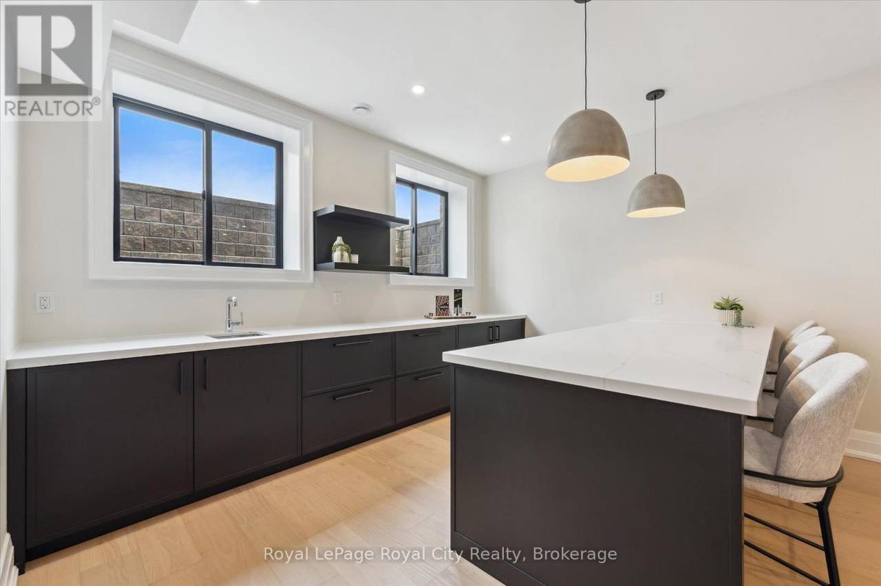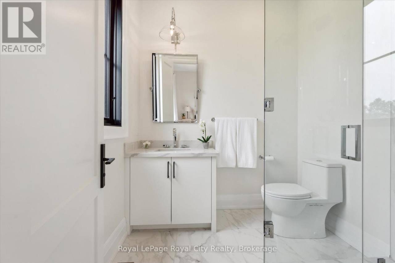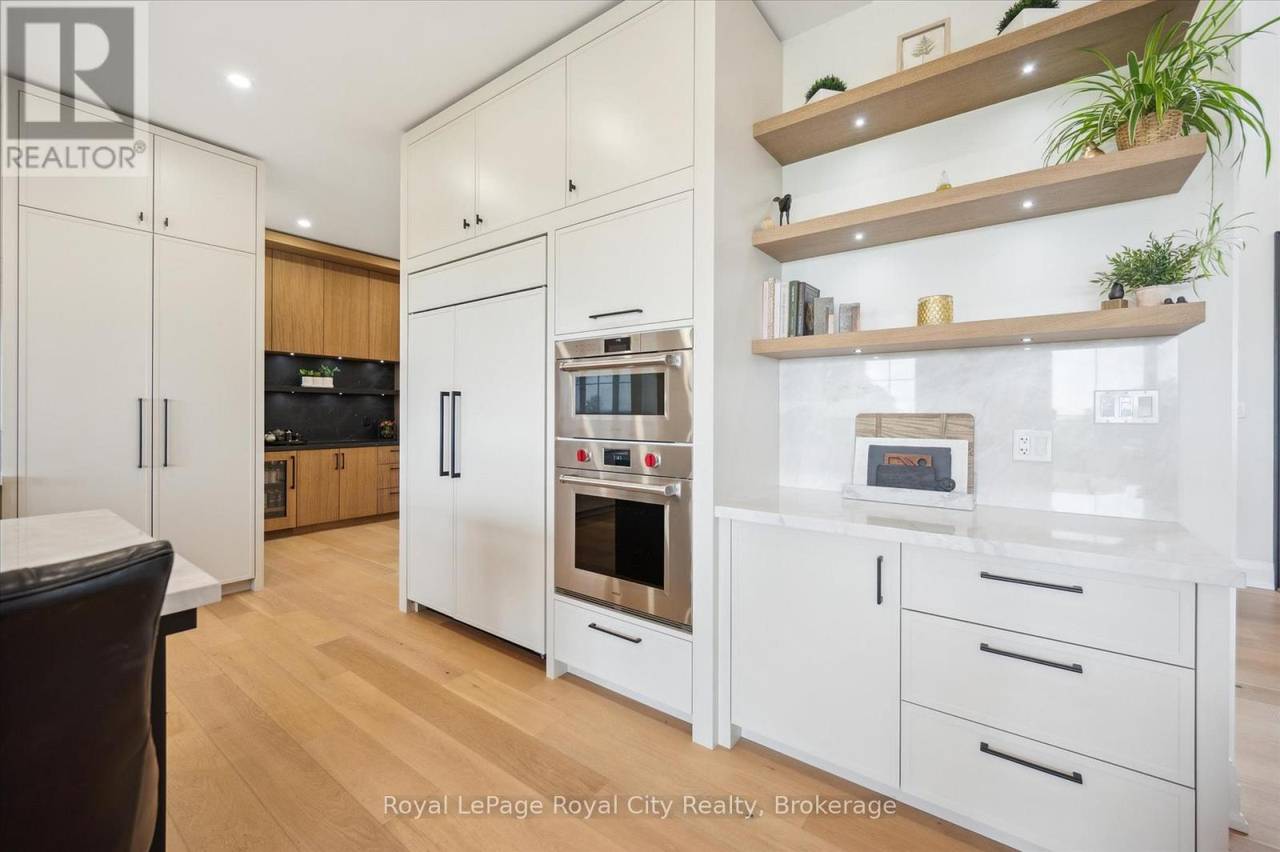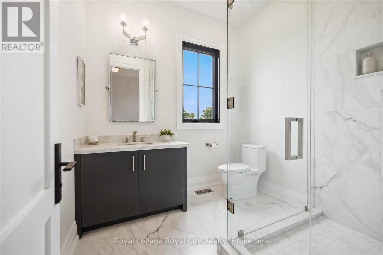 Custom-Built Luxury Bungalow on 2.4 Private Acres with Escarpment Views. Welcome to this one-of-a-kind custom-built bungalow offering 3,400 sq. ft. of refined main floor living space, perfectly nestled on 2.4 acres of serene countryside. With panoramic views of the escarpment and set well back from the road, this residence offers exceptional privacy while being just 20 minutes from the 401. Designed with luxury and functionality in mind, the home boasts soaring ceilings and oversized windows, creating an expansive, airy ambiance throughout allowing the natural landscape in and flooding the home with light. The main level features a seamless open-concept layout anchored by a great room and primary bedroom with oversized sliding doors opening to an extended outdoor living space with a two sided fire place, hot tub, and an abundance of entertaining space. The heart of the home is a chefs dream kitchen outfitted with top-tier Wolf, SubZero, and Cove appliances, complemented by a stylish servery just off the formal dining room. Retreat to the spacious primary suite, a true sanctuary offering an oversized spa-inspired ensuite complete with heated floors, a large walk-in shower, water closet, luxurious soaker tub, dual sinks with an extended vanity, and a generously sized walk-in closet. Two additional bedrooms on the main floor each enjoy their own private ensuites. Downstairs, the wow factor continues. The 10-foot ceilings and expansive windows make the finished basement feel anything but below grade. Designed for versatility, the lower level includes a full gym, sauna, and a private entry from the oversized 3-car garage making it perfect for an in-law suite. This separate living space features a bedroom, full bath, and kitchenette with a fridge, sink, and microwave. Every detail has been thoughtfully considered. Truly, this is a rare opportunity to own a stunning estate home where luxury, privacy, and convenience converge. (id:64974)