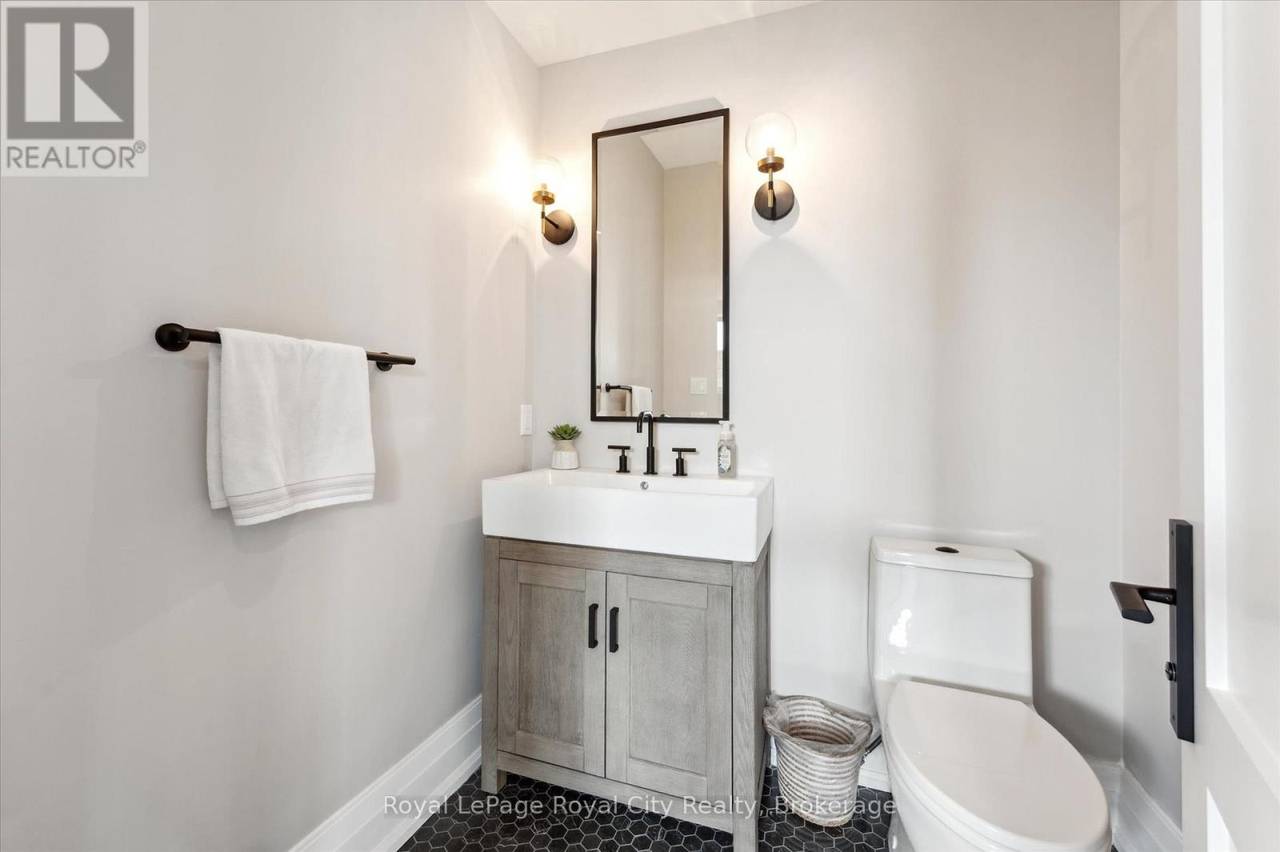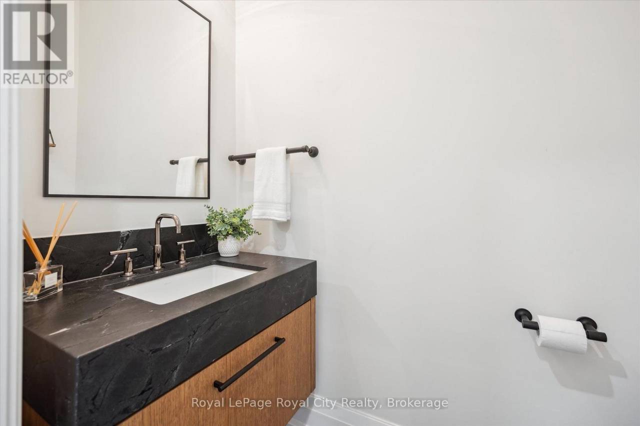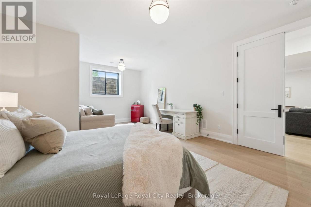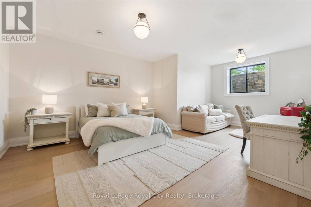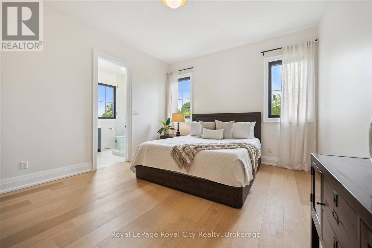 Custom-Built Luxury Bungalow on 2.4 Private Acres with Escarpment Views. Welcome to this one-of-a-kind custom-built bungalow offering 3,400 sq. ft. of refined main floor living space, perfectly nestled on 2.4 acres of serene countryside. With panoramic views of the escarpment and set well back from the road, this residence offers exceptional privacy while being just 20 minutes from the 401. Designed with luxury and functionality in mind, the home boasts soaring ceilings and oversized windows, creating an expansive, airy ambiance throughout allowing the natural landscape in and flooding the home with light. The main level features a seamless open-concept layout anchored by a great room and primary bedroom with oversized sliding doors opening to an extended outdoor living space with a two sided fire place, hot tub, and an abundance of entertaining space. The heart of the home is a chefs dream kitchen outfitted with top-tier Wolf, SubZero, and Cove appliances, complemented by a stylish servery just off the formal dining room. Retreat to the spacious primary suite, a true sanctuary offering an oversized spa-inspired ensuite complete with heated floors, a large walk-in shower, water closet, luxurious soaker tub, dual sinks with an extended vanity, and a generously sized walk-in closet. Two additional bedrooms on the main floor each enjoy their own private ensuites. Downstairs, the wow factor continues. The 10-foot ceilings and expansive windows make the finished basement feel anything but below grade. Designed for versatility, the lower level includes a full gym, sauna, and a private entry from the oversized 3-car garage making it perfect for an in-law suite. This separate living space features a bedroom, full bath, and kitchenette with a fridge, sink, and microwave. Every detail has been thoughtfully considered. Truly, this is a rare opportunity to own a stunning estate home where luxury, privacy, and convenience converge. (id:64974)