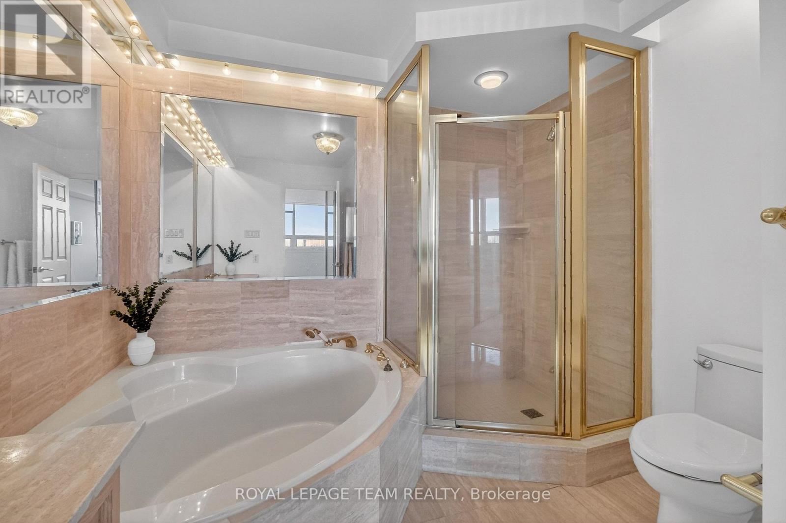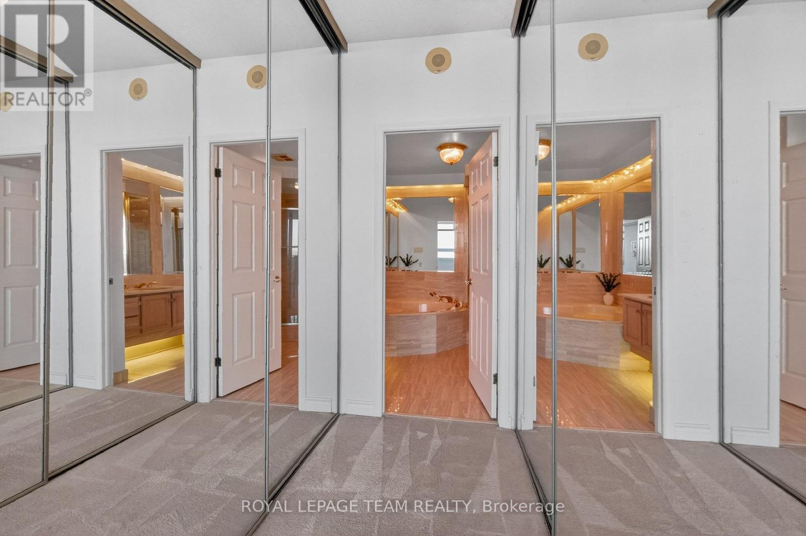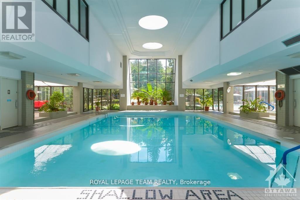 Welcome to this bright and well-maintained 2-bedroom, 2-bathroom condo offering comfortable and convenient living. The thoughtfully designed layout provides excellent separation between bedrooms, ideal for privacy or guests. Wall-to-wall carpeting throughout has been freshly cleaned, creating a warm and inviting atmosphere. The spacious primary bedroom features a full ensuite bathroom, while the second bedroom is perfectly suited for a home office, guest room, or additional living space. Enjoy low-maintenance condo living with generous living and dining areas, perfect for relaxing or entertaining. The Riviera is Ottawa's most coveted Country Club Condo offering 24/7 concierge security. The exquisite Riviera complex features indoor/outdoor pools, 4 tennis, 2 exercise rooms, squash & badminton courts, yoga, stretch & aqua fitness classes, games room, renovated Nordic-like spa & elegant reception rooms. Steps to LRT, Train Yards shopping & Transit. Prestigious living so close to the city! (id:64974)