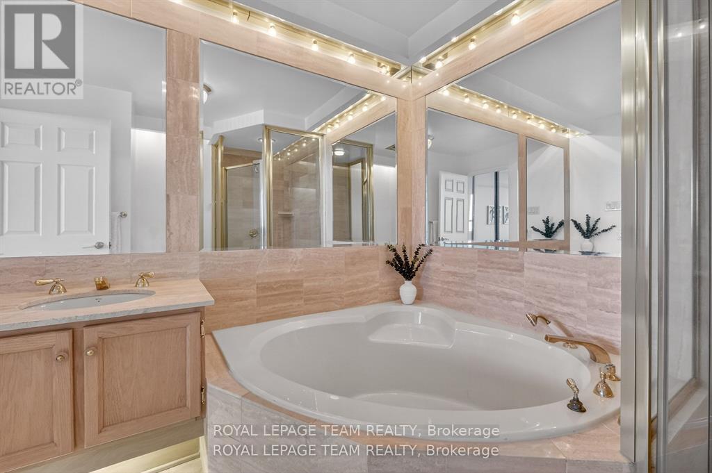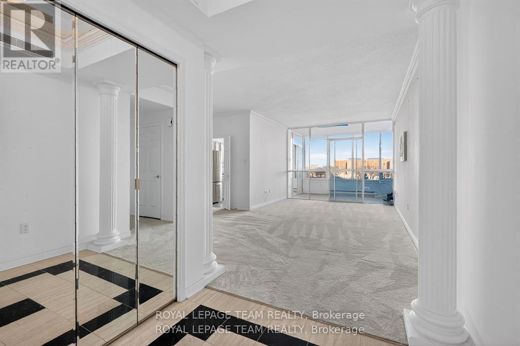 Welcome to this bright and well-maintained 2-bedroom, 2-bathroom condo offering comfortable and convenient living. The thoughtfully designed layout provides excellent separation between bedrooms, ideal for privacy or guests. Wall-to-wall carpeting throughout has been freshly cleaned, creating a warm and inviting atmosphere. The spacious primary bedroom features a full ensuite bathroom, while the second bedroom is perfectly suited for a home office, guest room, or additional living space. Enjoy low-maintenance condo living with generous living and dining areas, perfect for relaxing or entertaining. The Riviera is Ottawa's most coveted Country Club Condo offering 24/7 concierge security. The exquisite Riviera complex features indoor/outdoor pools, 4 tennis, 2 exercise rooms, squash & badminton courts, yoga, stretch & aqua fitness classes, games room, renovated Nordic-like spa & elegant reception rooms. Steps to LRT, Train Yards shopping & Transit. Prestigious living so close to the city! (id:64974)